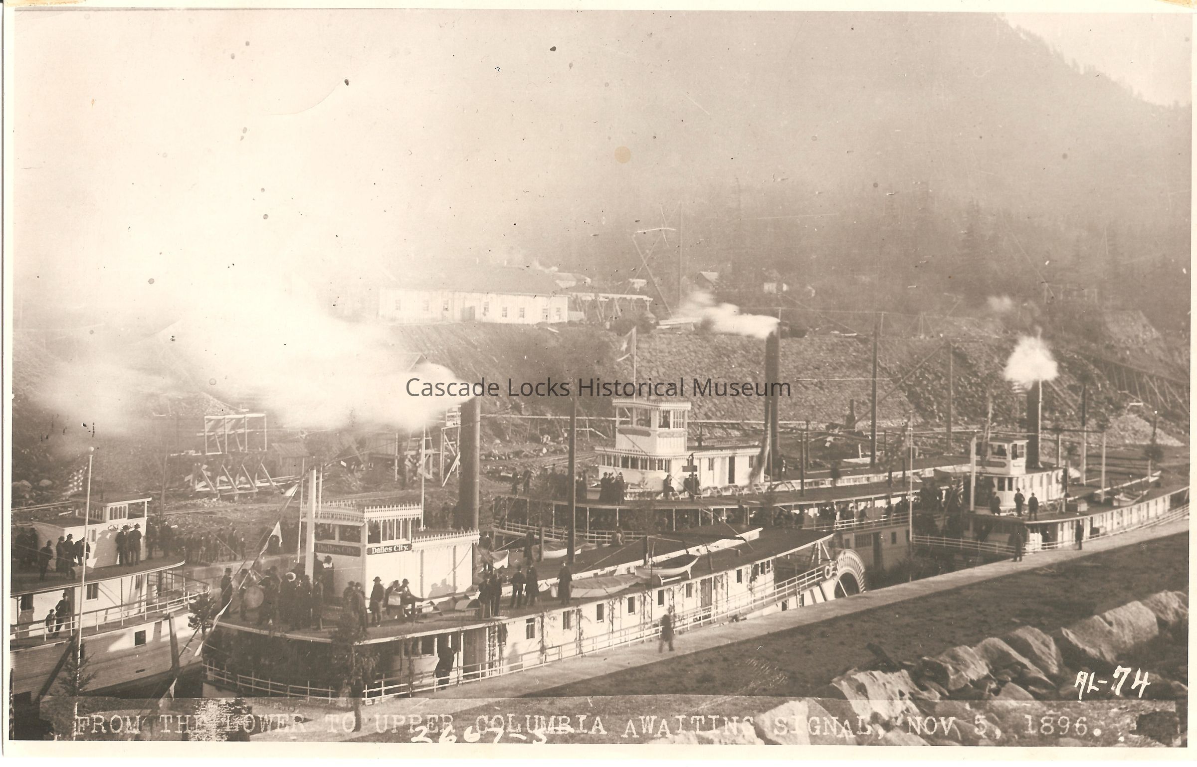 Stated on the base of the image is printed; "From the lower to upper Columbia awaiting signal, Nov 5, 1896. AL-74"