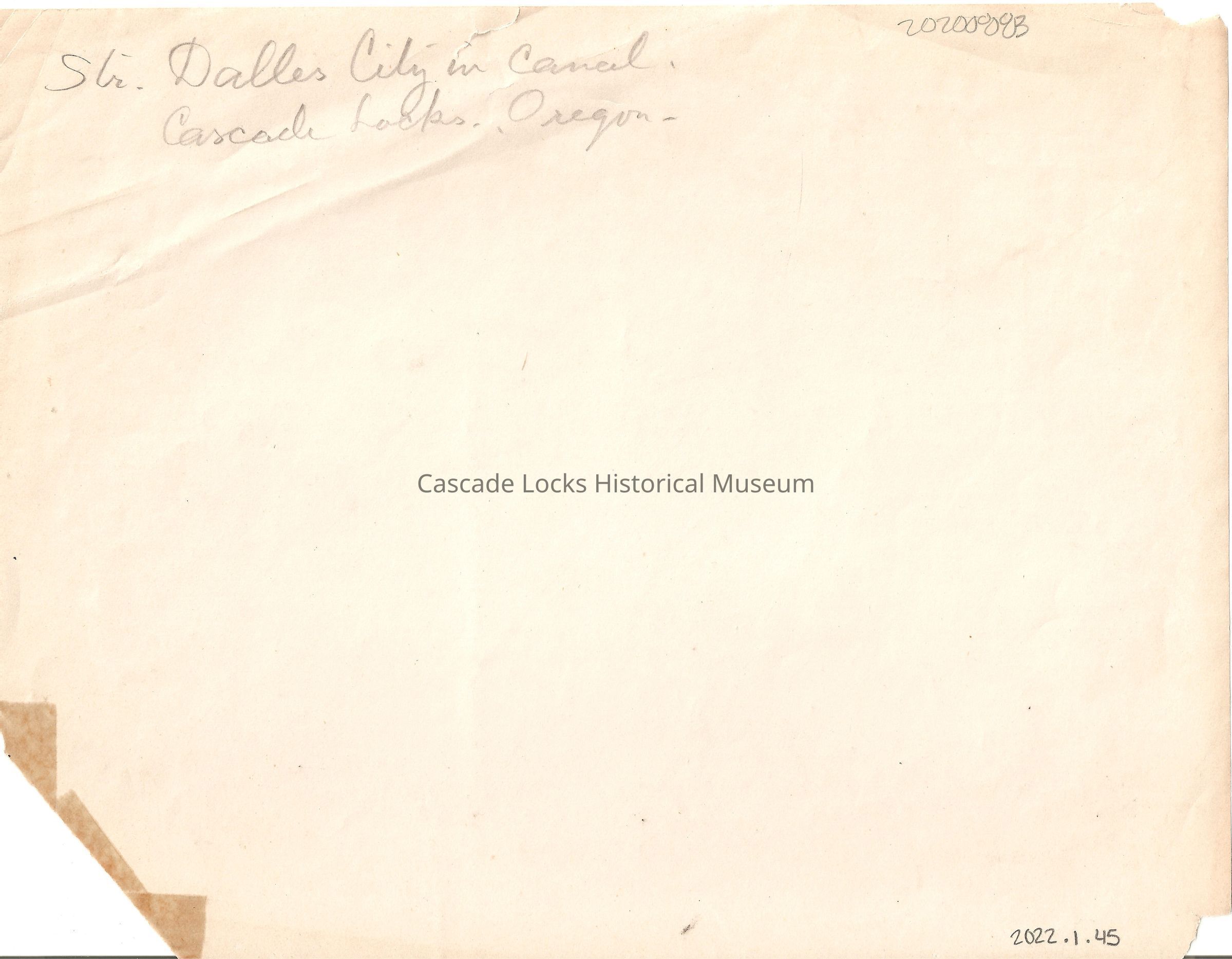 Back of image reads; "Str. Dalles City in Canal. Cascade Locks, Oregon."