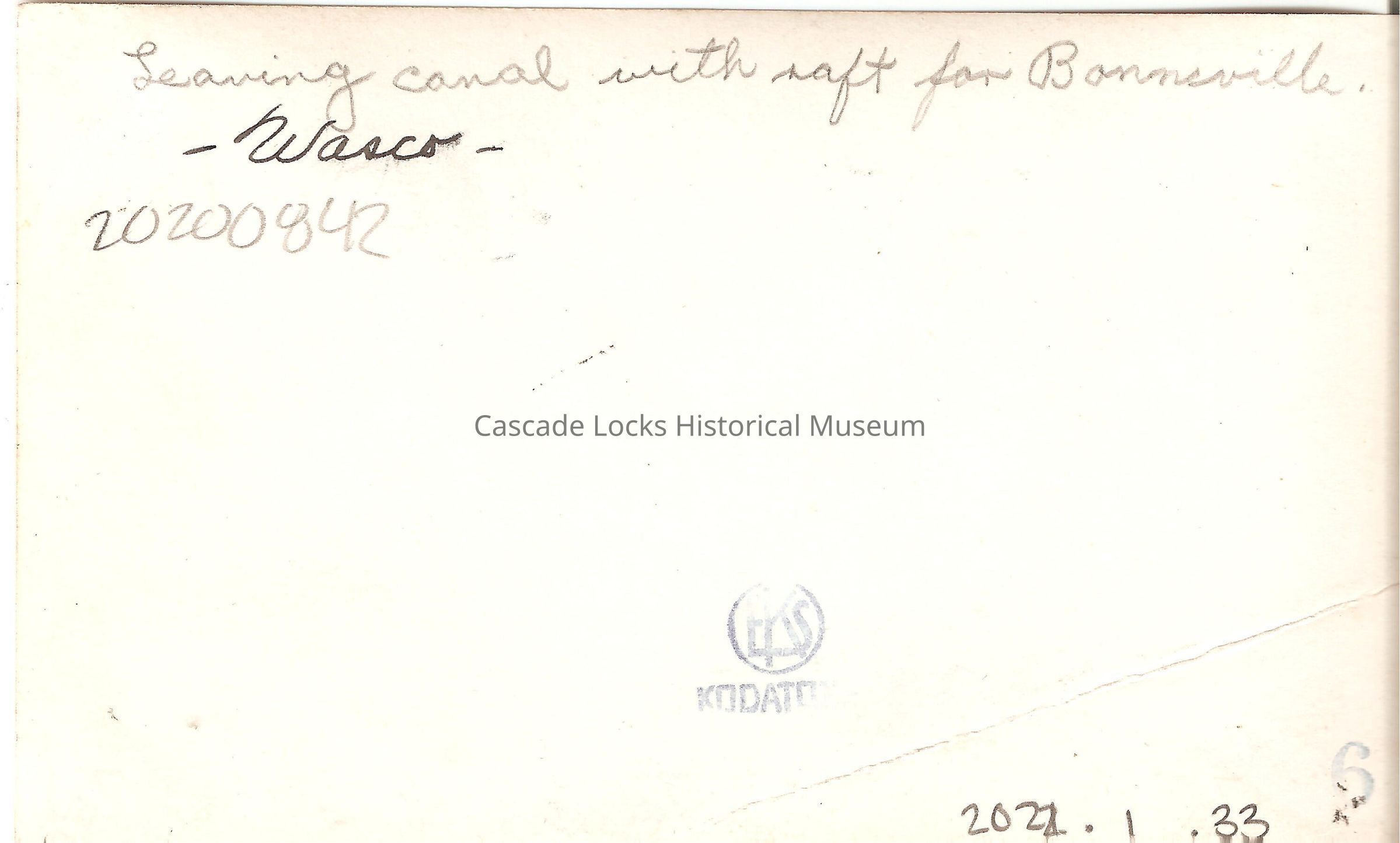 Back of image reads; "Leaving canal with raft for Bonneville. -Warco-. Kodatone. 6"Language