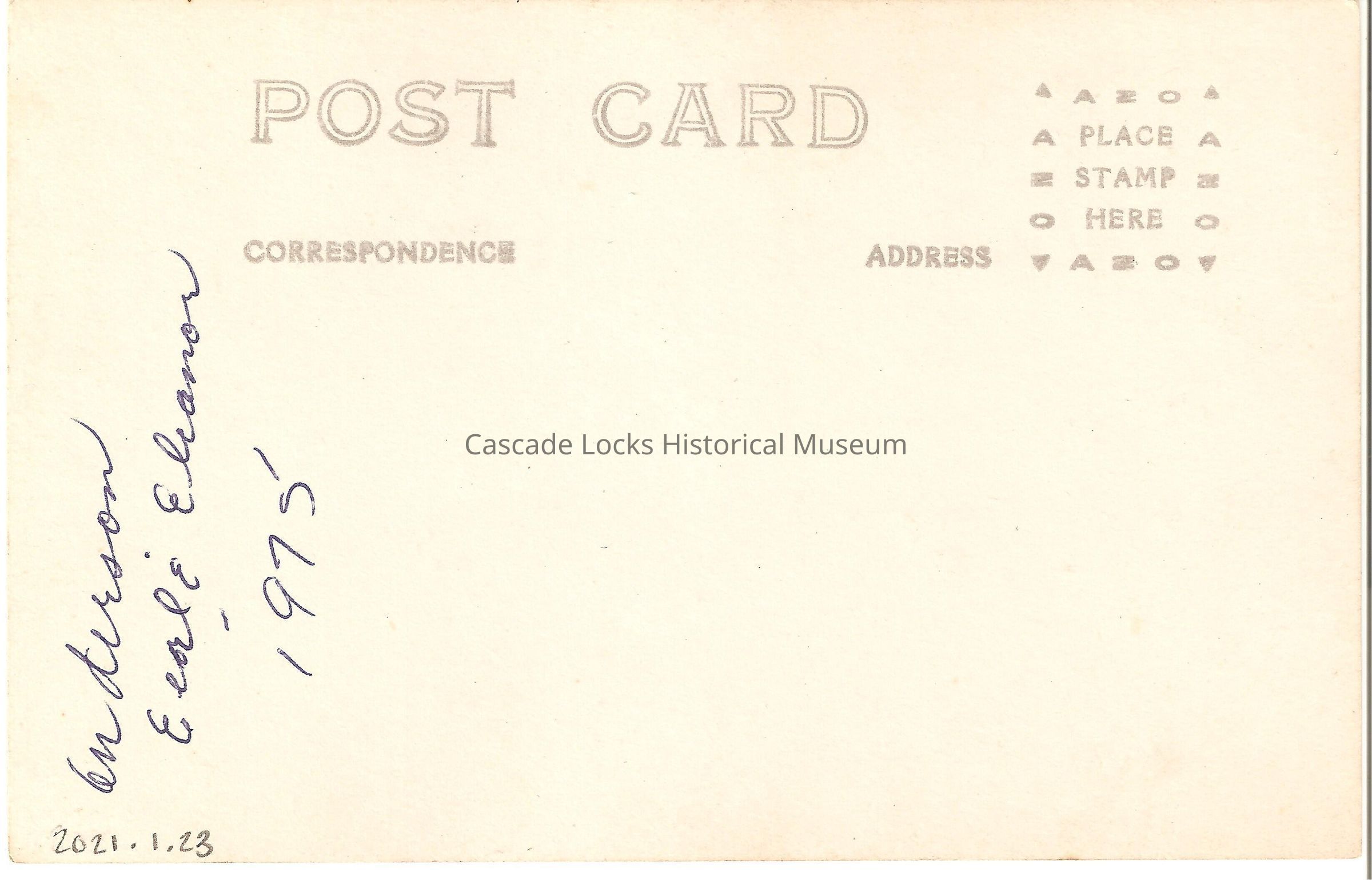 Back of image reads, "Post Card. Correspondence. Address. Place Stamp Here, AZO. Anderson, Earl & Eleanor, 1975."Lexicon