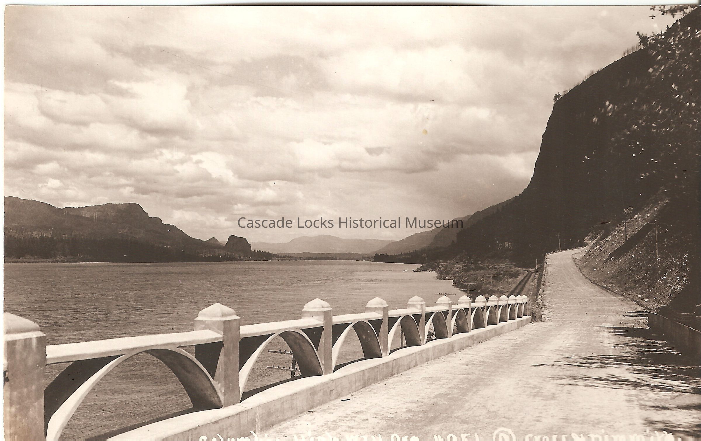 Postcard, image of the Columbia River Highway with Beacon Rock visible in the background. Card reads, "Columbia Highway, Ore. #251. Cross & Dimmitt."