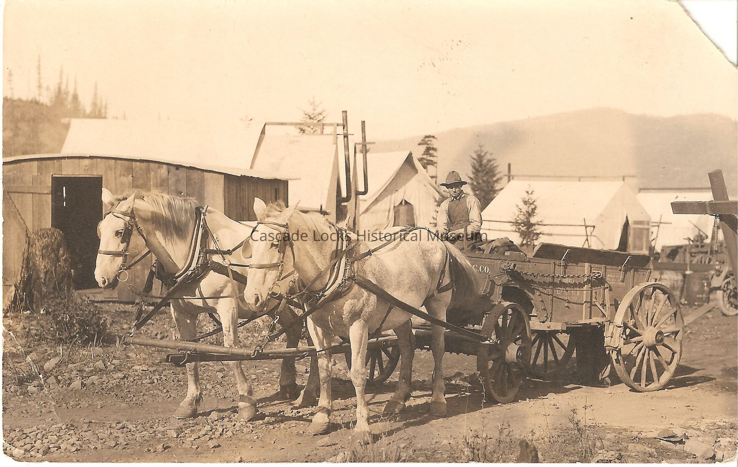 Postcard, image of a man on a horse drawn wagon. There is a company name on the side of the card but its too small to make out the wording.