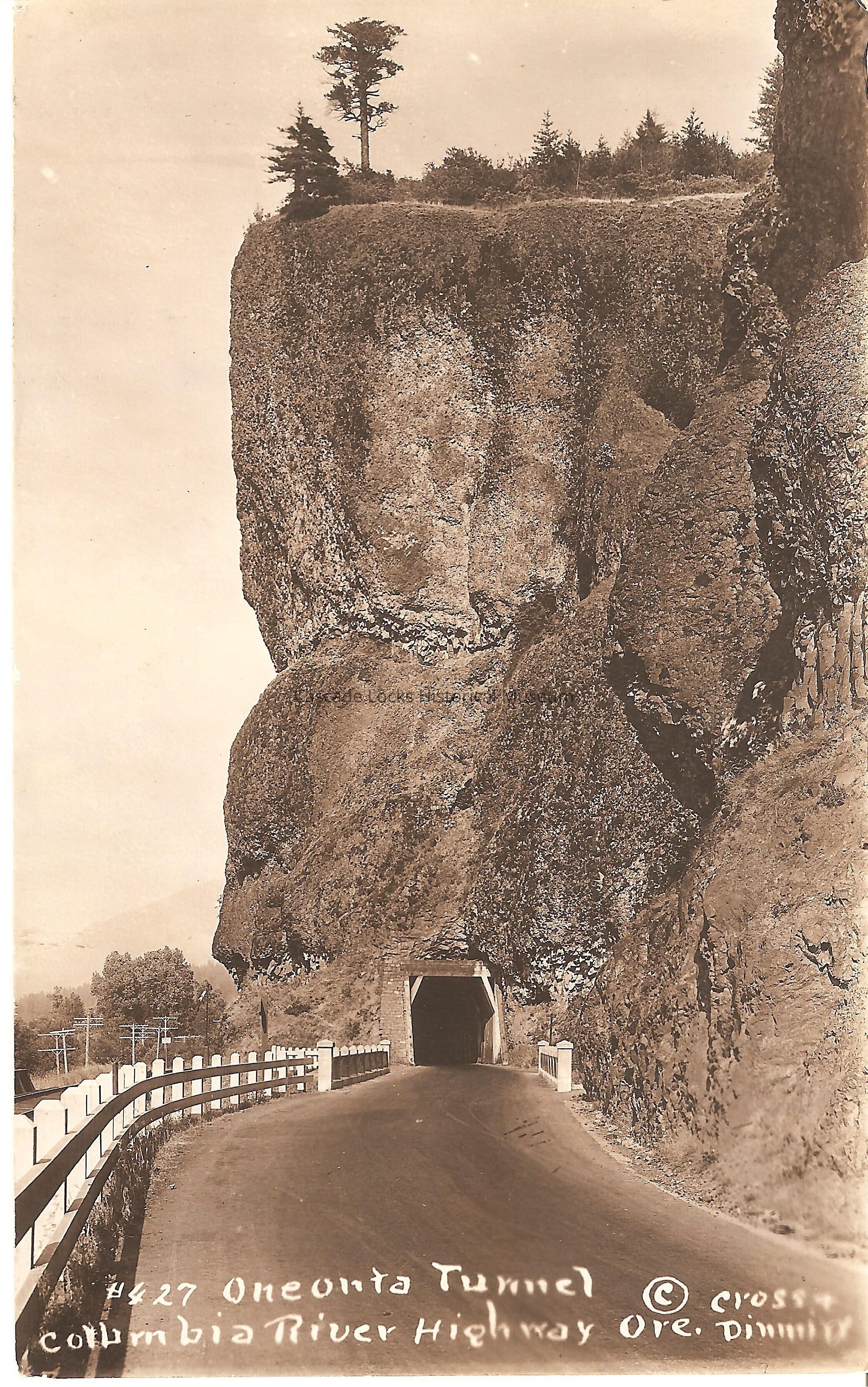 Postcard, image of the Oneonta Tunnel on the Columbia River Highway. Card reads, "#91, Oneonta Tunnel, Col. Highway, Ore. Cross & Dimmitt."