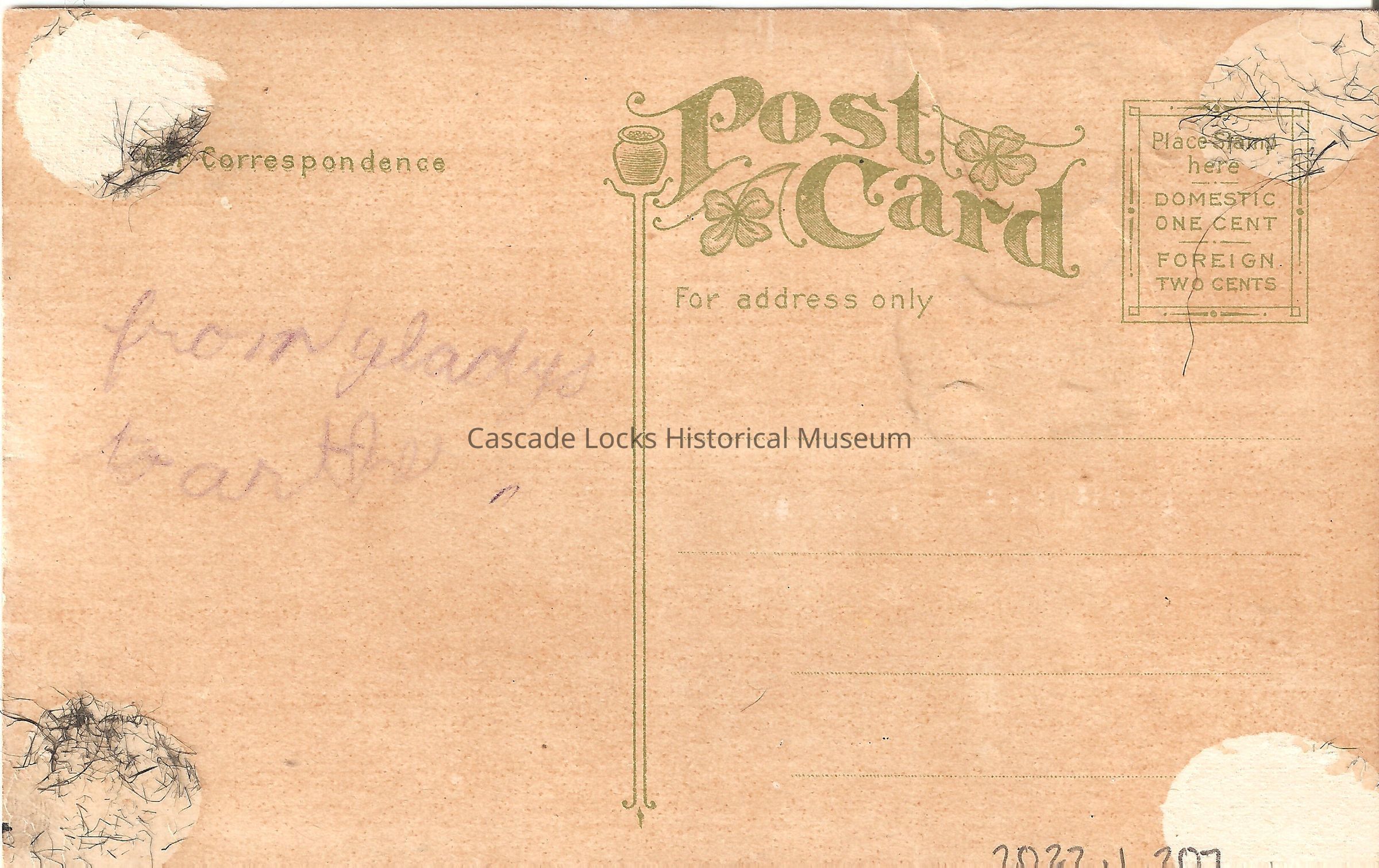Back of image reads, "Post Card- For Correspondence- From Glady to Arthur. For address only. Place Stamp Here, Domestic One Cent, Foreign Two Cents"Lexicon