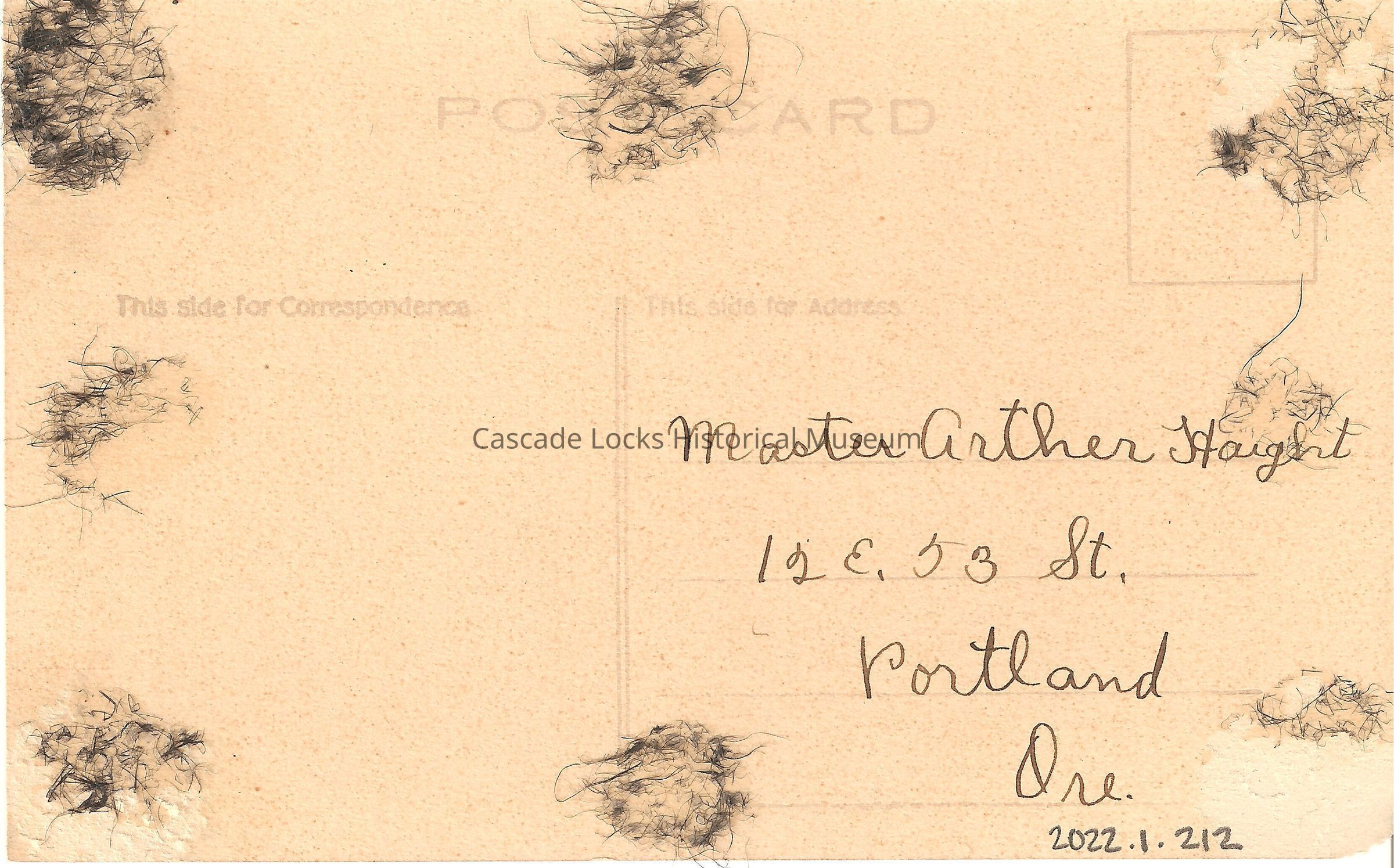 Back of image reads, "Post Card- This side for Correspondence. This side for Address- Master Arthur Haight, 12 E. 53 St. Portland. Ore."Lexicon