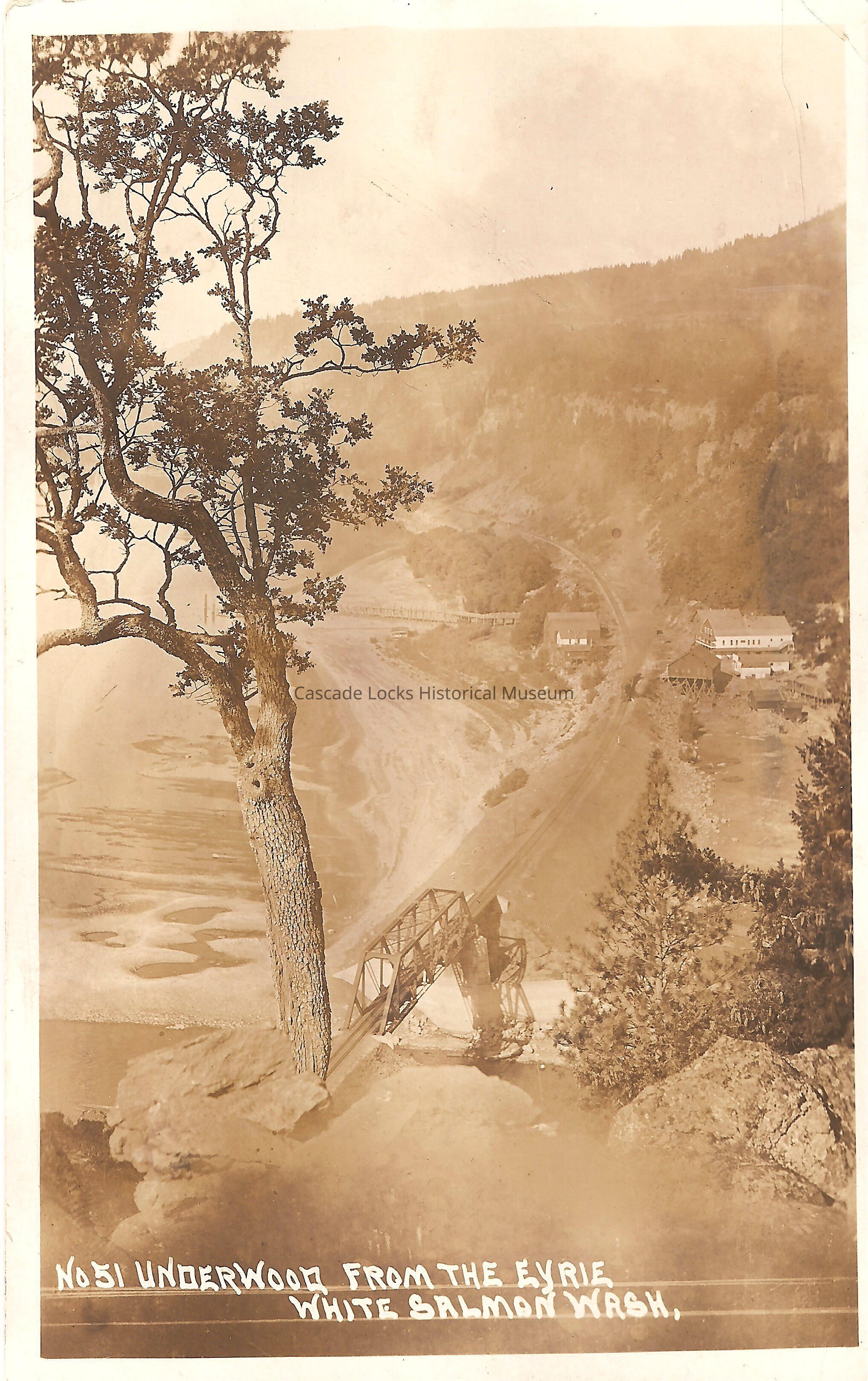 Postcard, image of Underwood Washington taken from a high elevation. Card reads, "No. 51 Underwood from the Eyrie. White Salmon Wash."