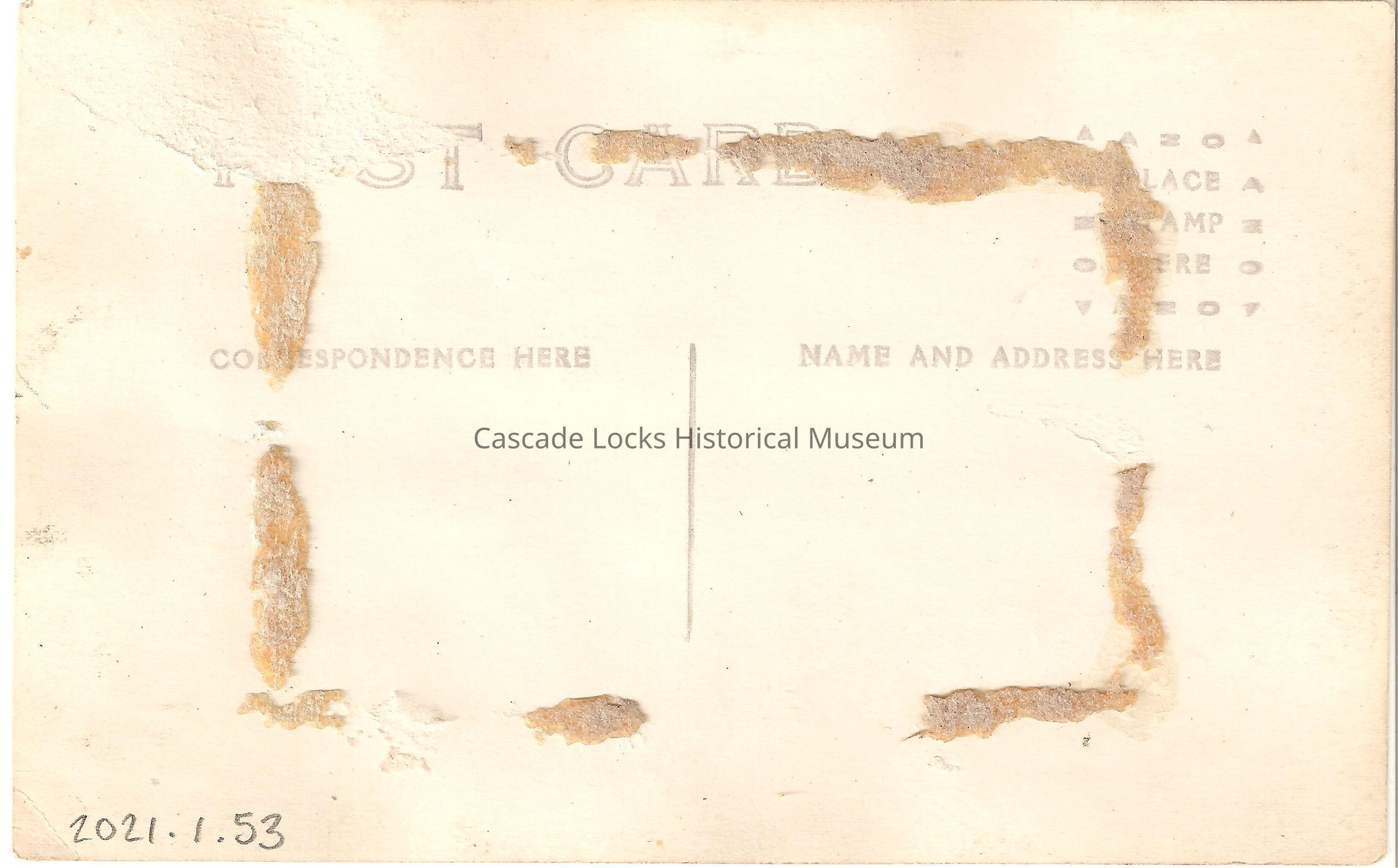 Back of image reads, "Post Card. Correspondence. Address. Place Stamp Here, AZO."Lexicon