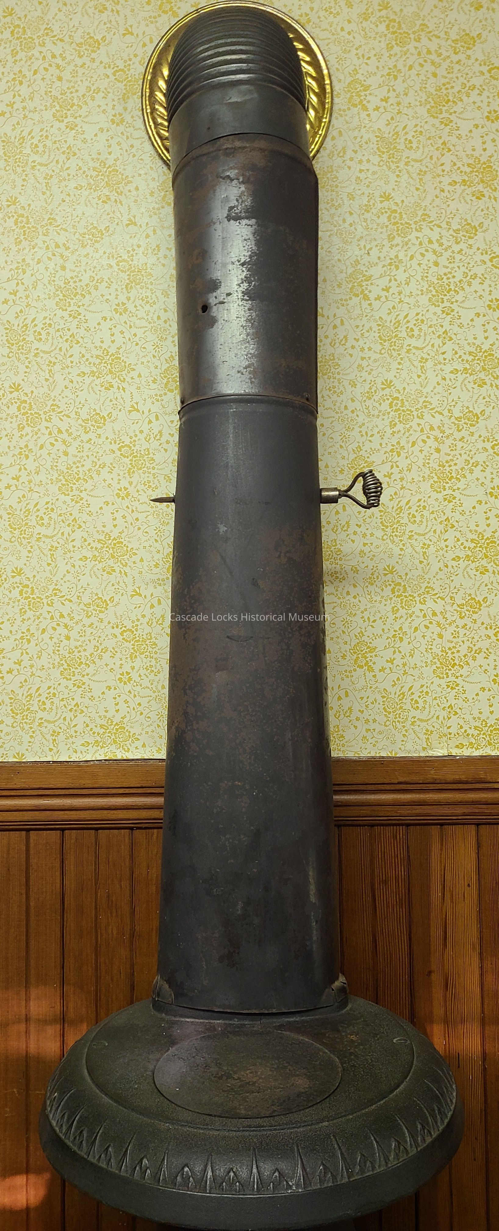 Stove made of solid iron metal with thin metal pipe.