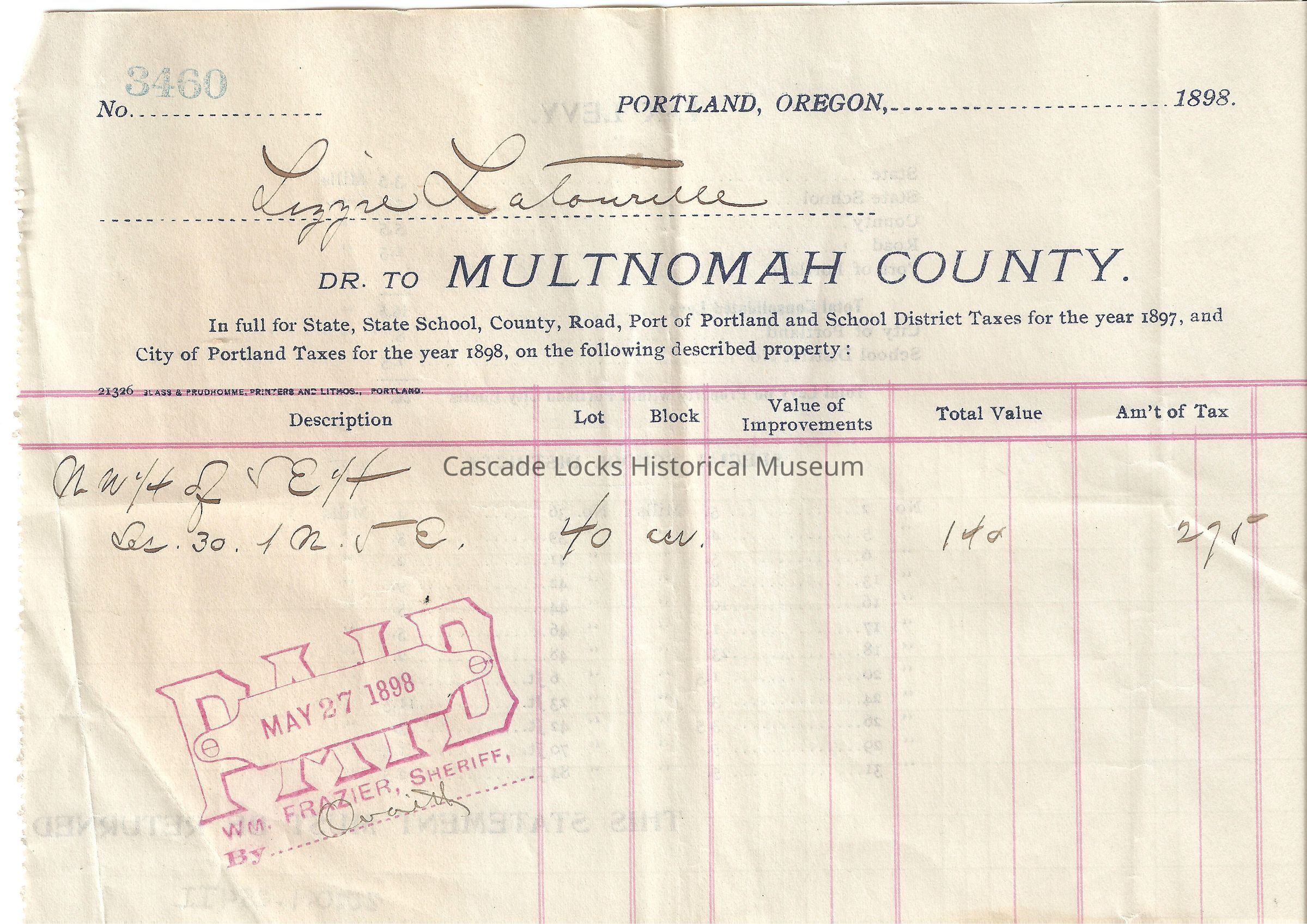 Taxes, 1898, LatourellEntry/Object ID