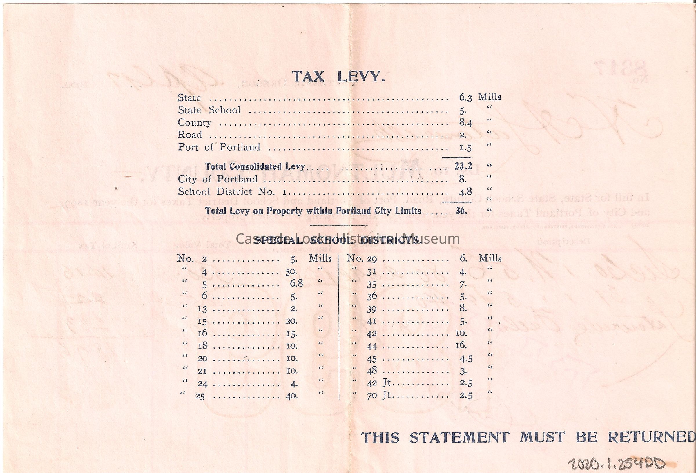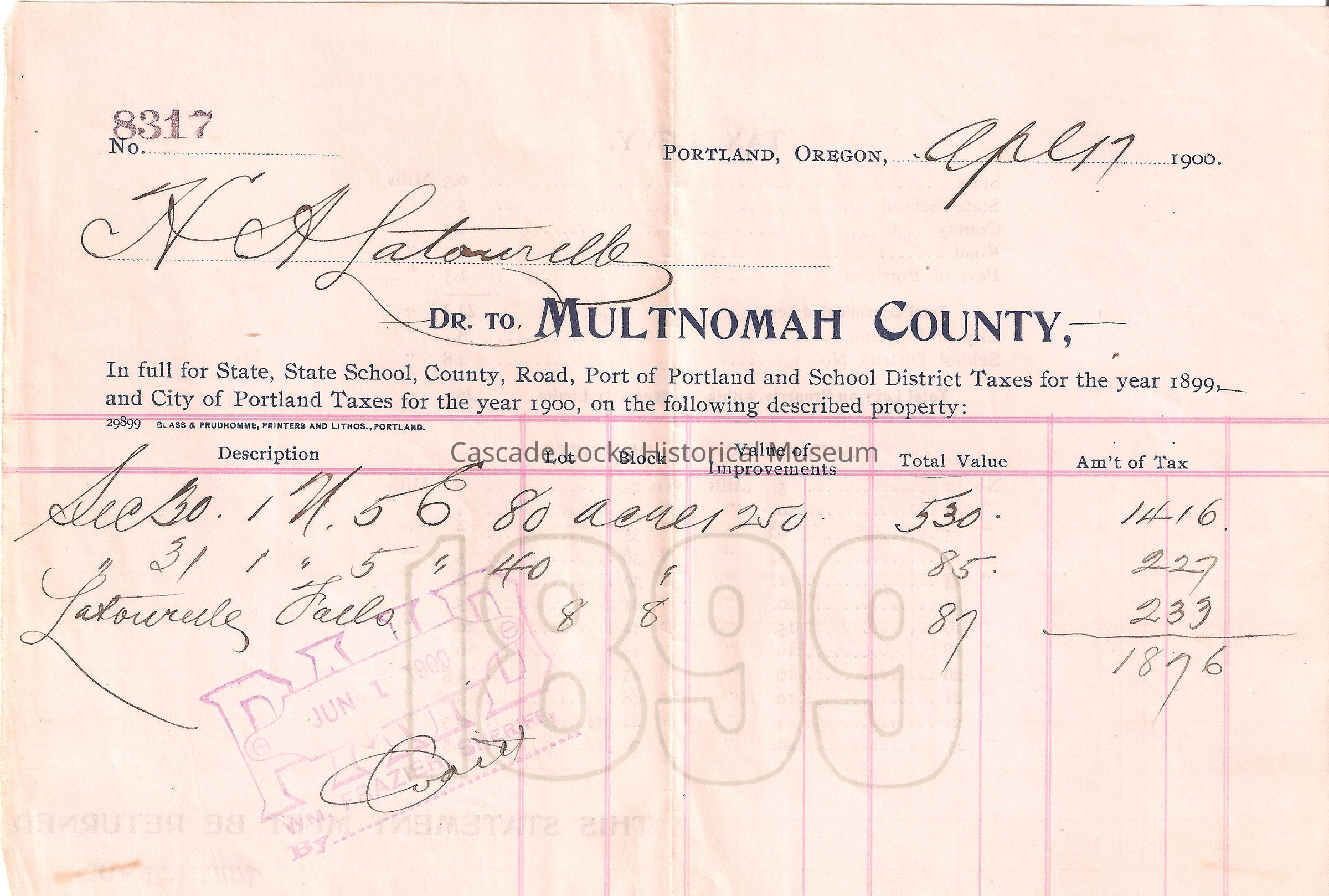 When Taxes are Paid, Portland Oregon, 1900. 1899 Tax.