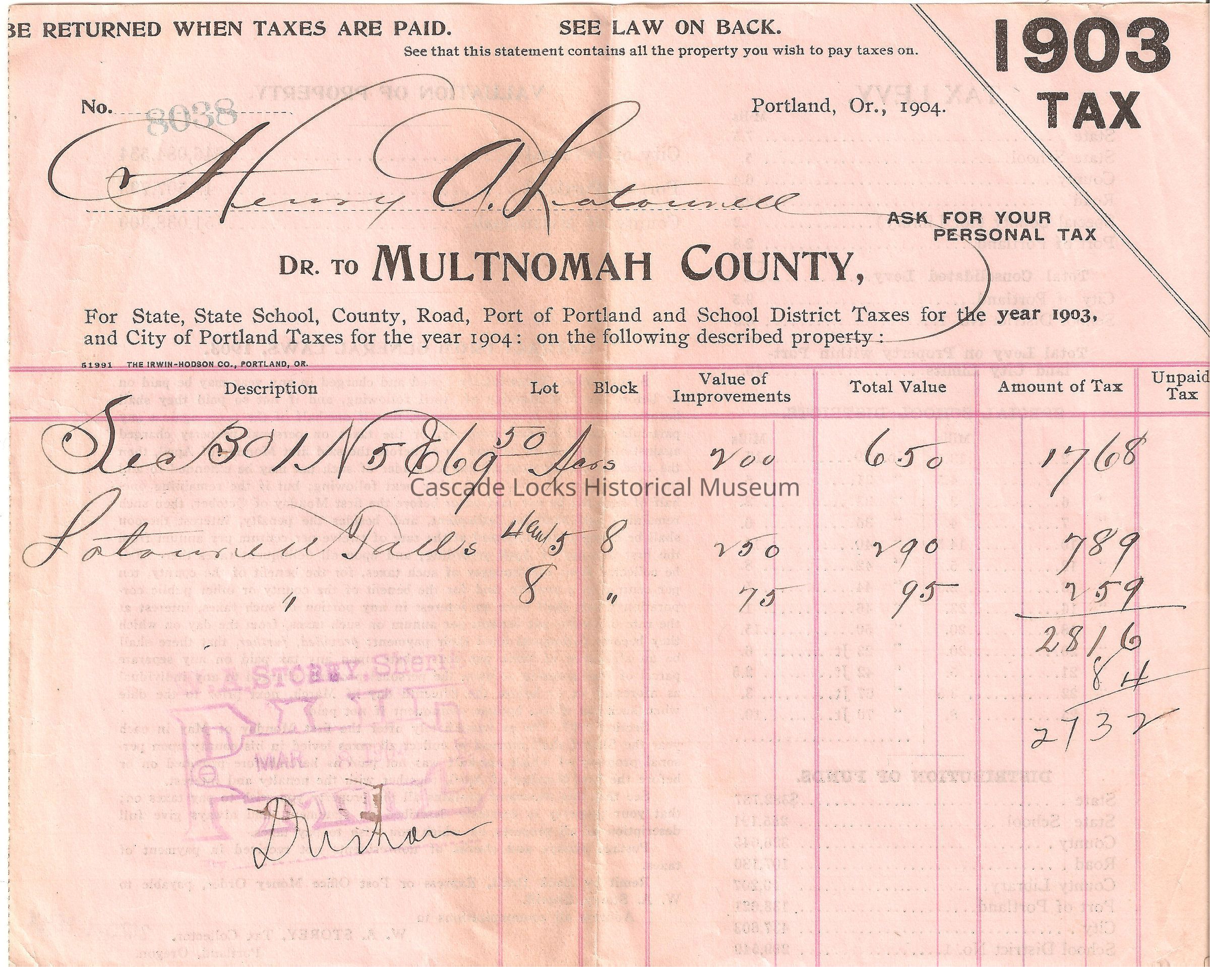 When Taxes are Paid, Portland Oregon, 1904. 1903 Tax