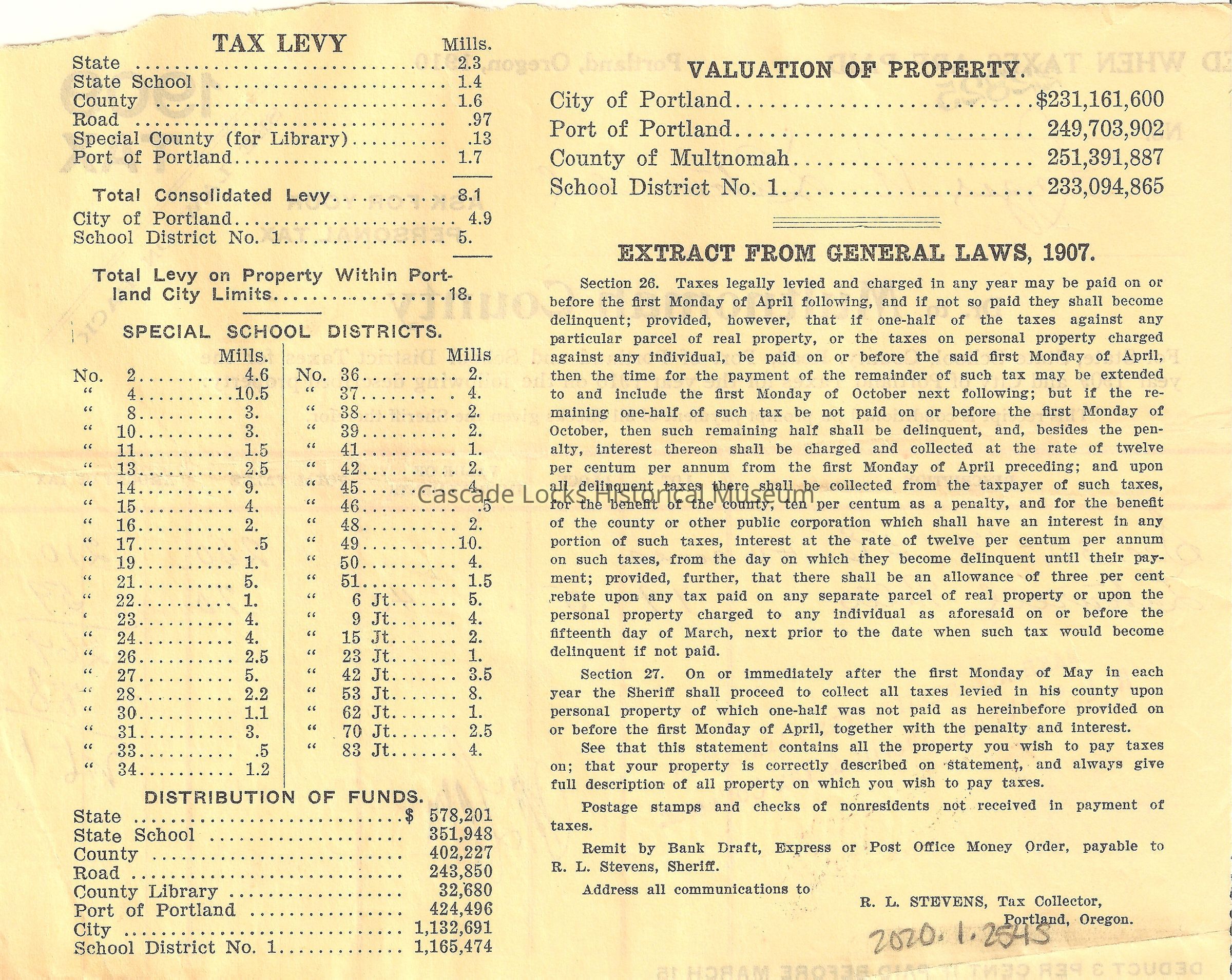 When Taxes are Paid, Portland Oregon, 1910. 1909 Tax