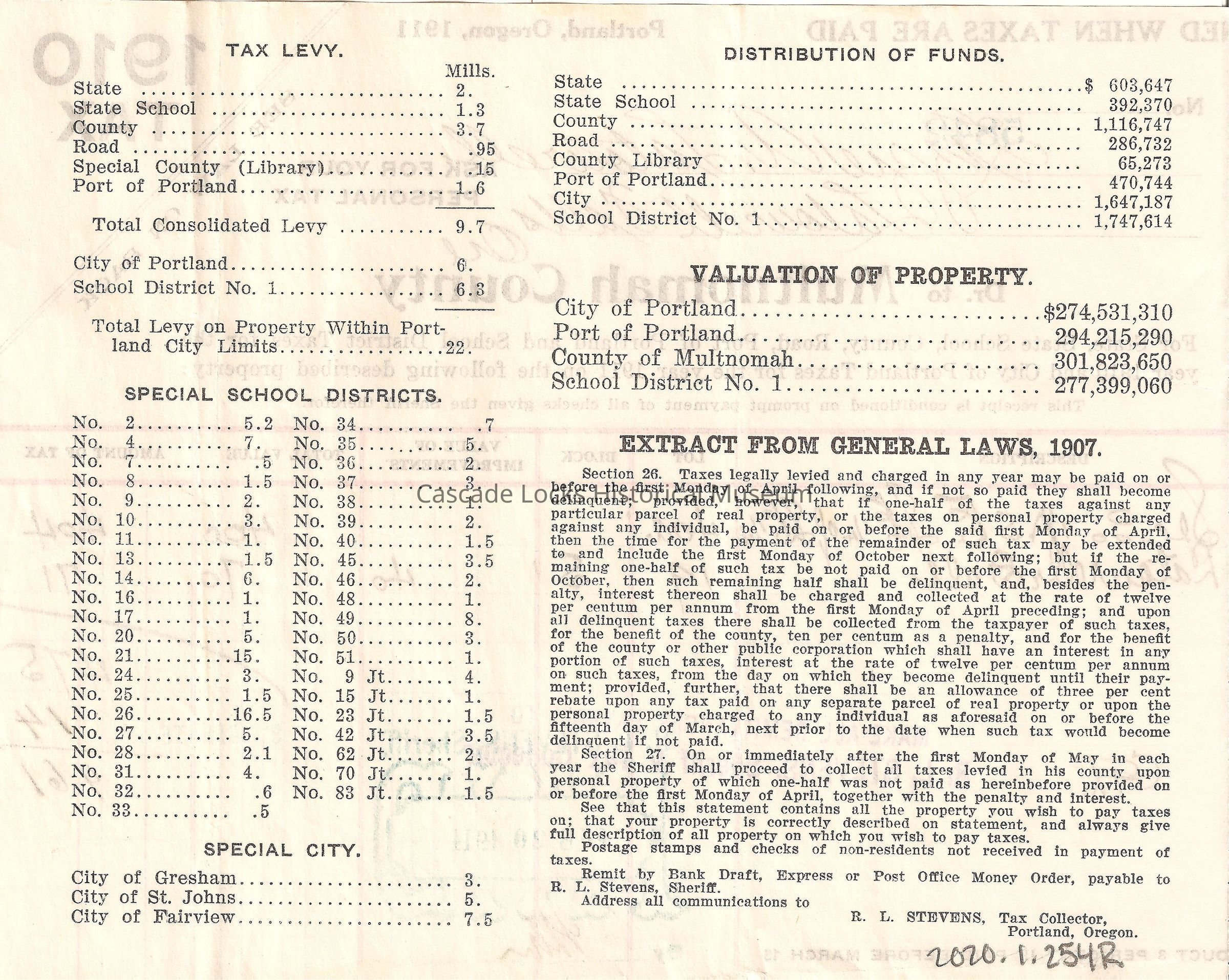 When Taxes are Paid, Portland Oregon, 1911. 1910 Tax