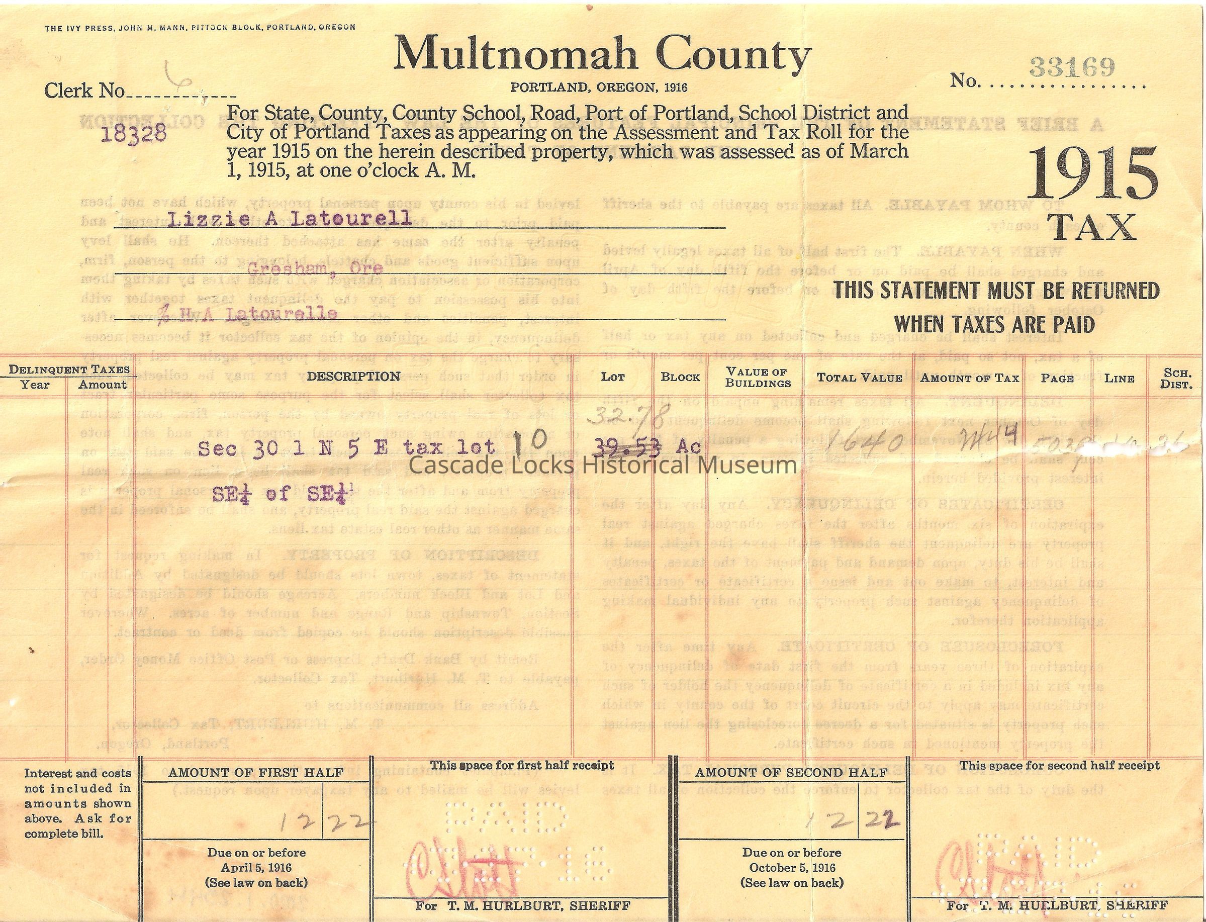 1915 Taxes for Elizabeth A. Latourell and Henry A. Latourell.
