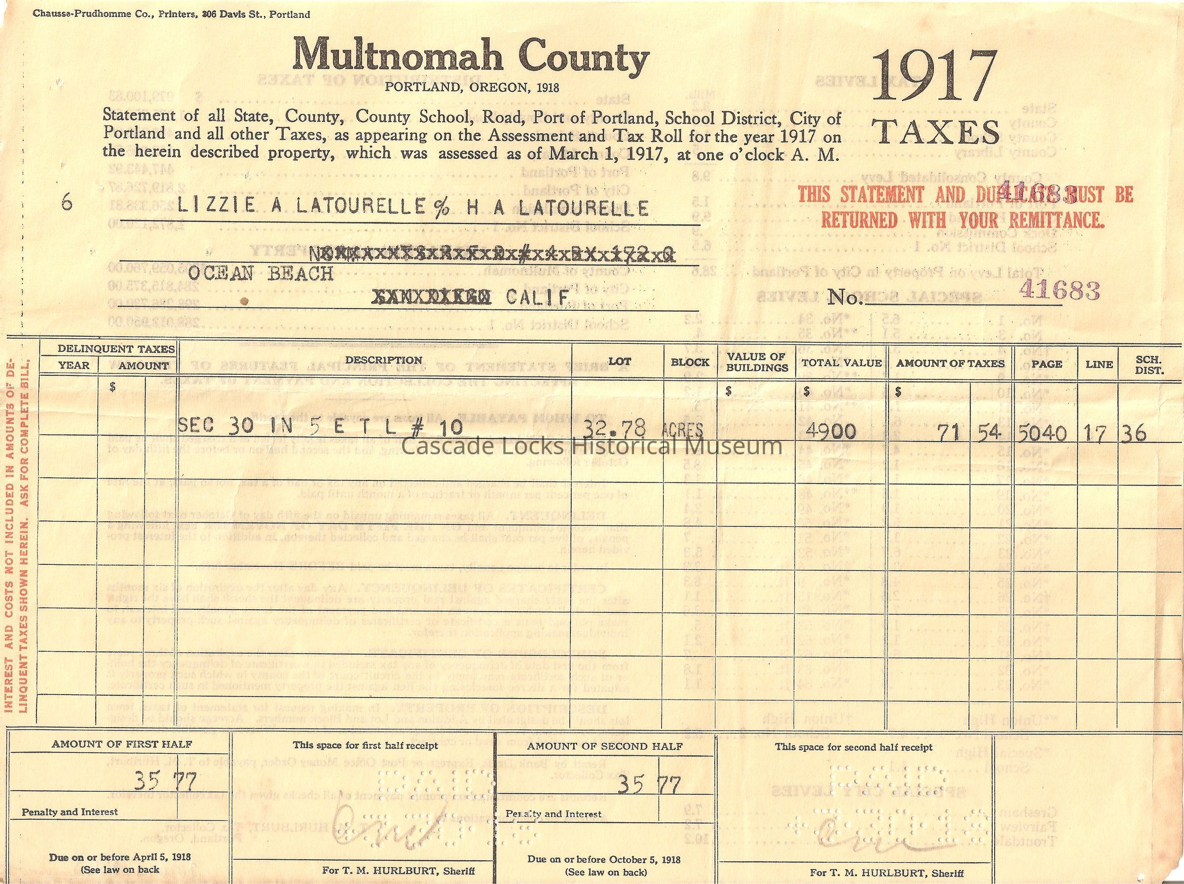 1917 Taxes for Elizabeth A. Latourell and Henry A. Latourell.