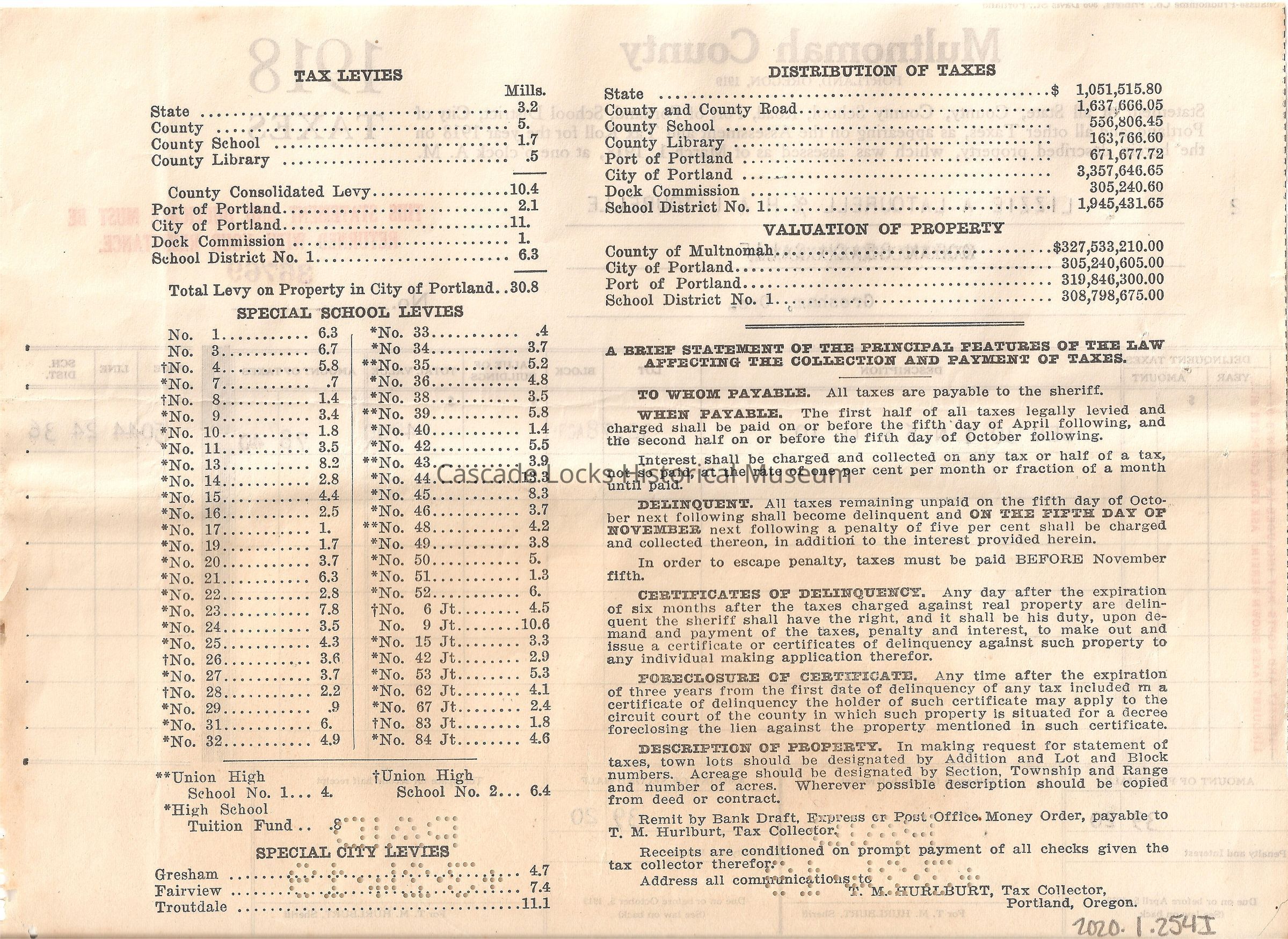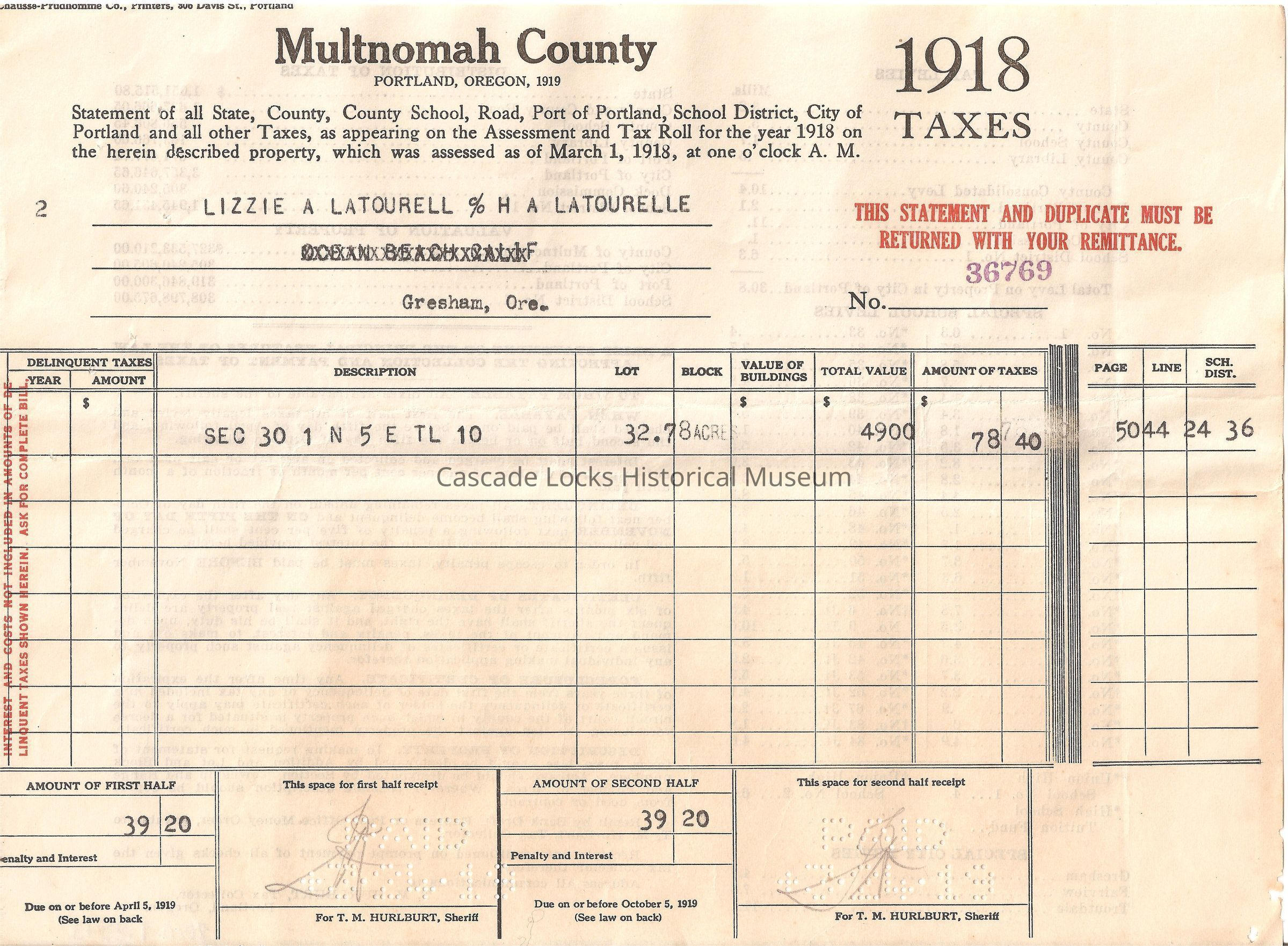 Taxes, 1918, LatourellEntry/Object ID
