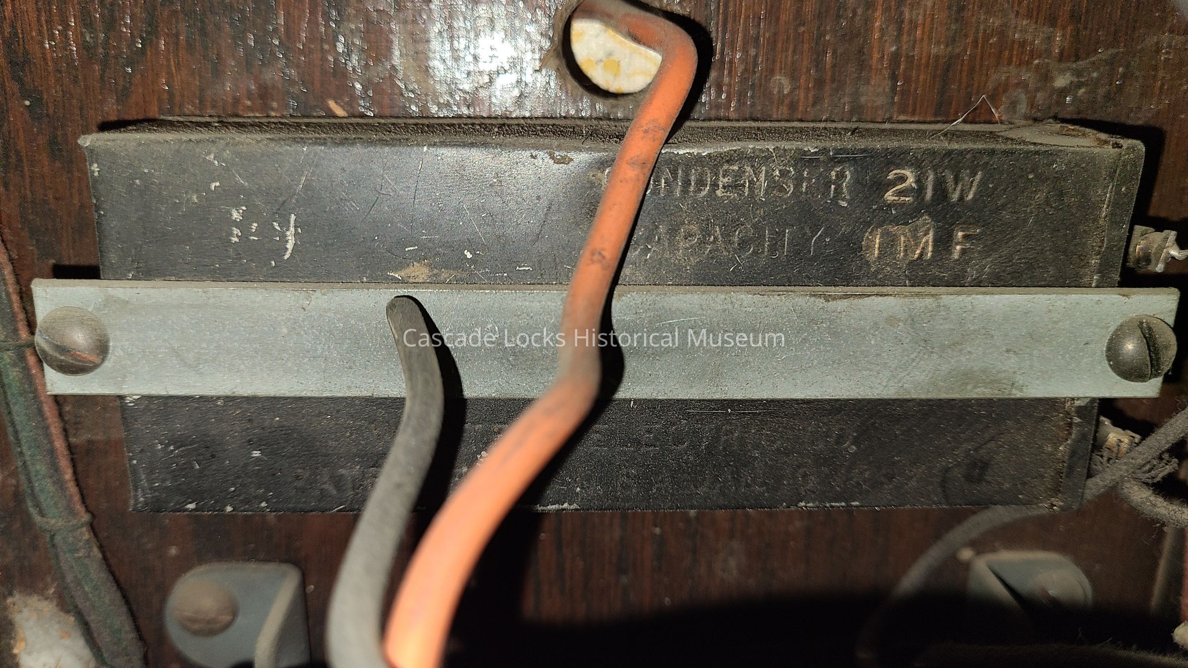 7) On the condenser, Condensor 21W Capacity 1MF. Western Electric Co. PAT (?).