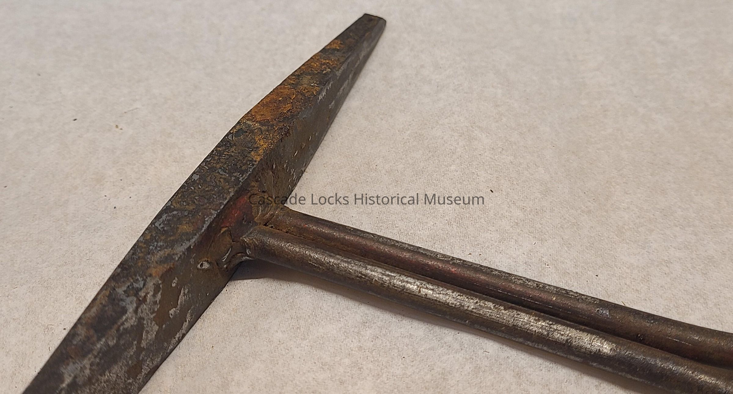 Chipping hammer is made of solid metal. Metal handle has been welded onto the metal head.