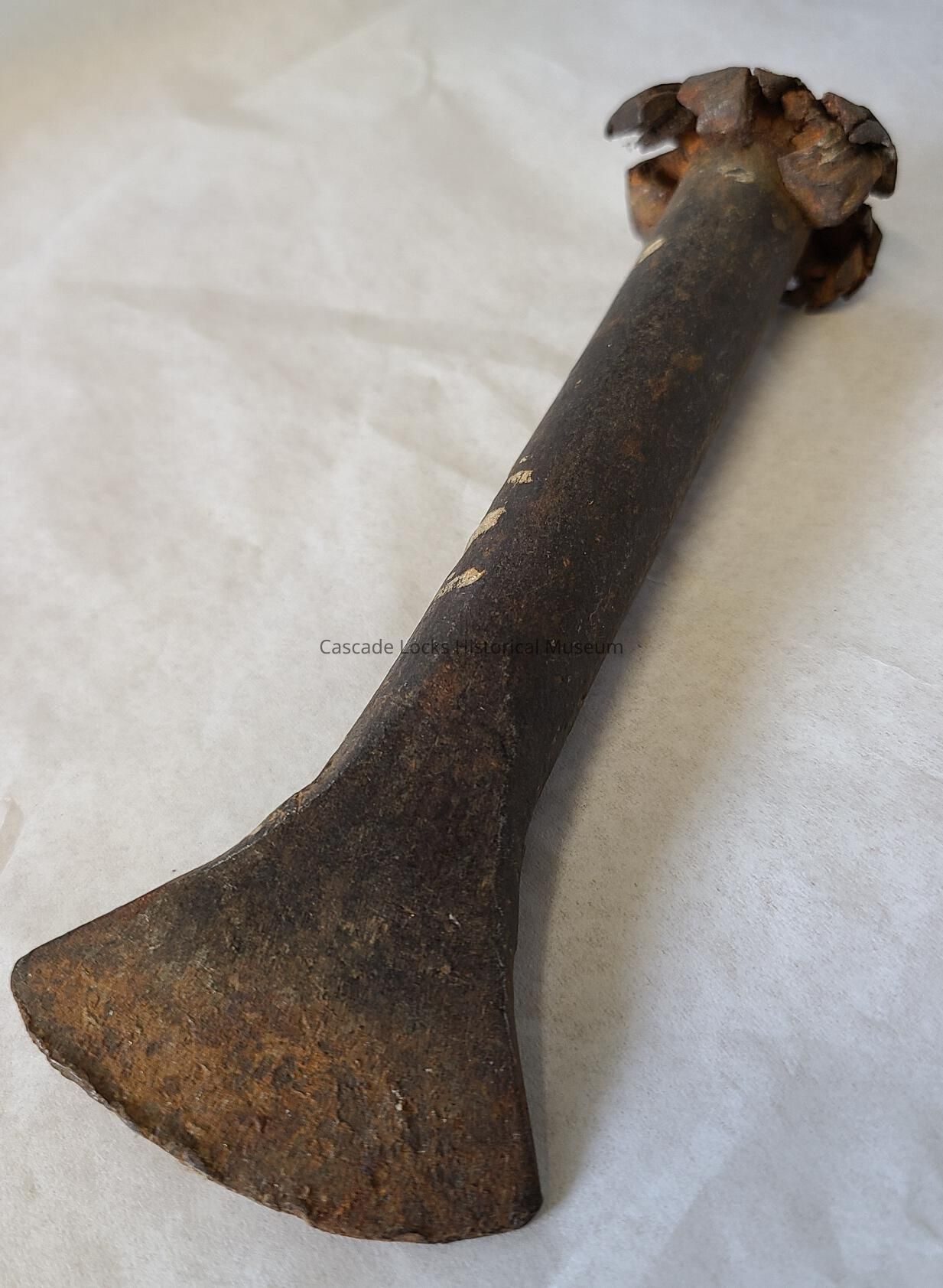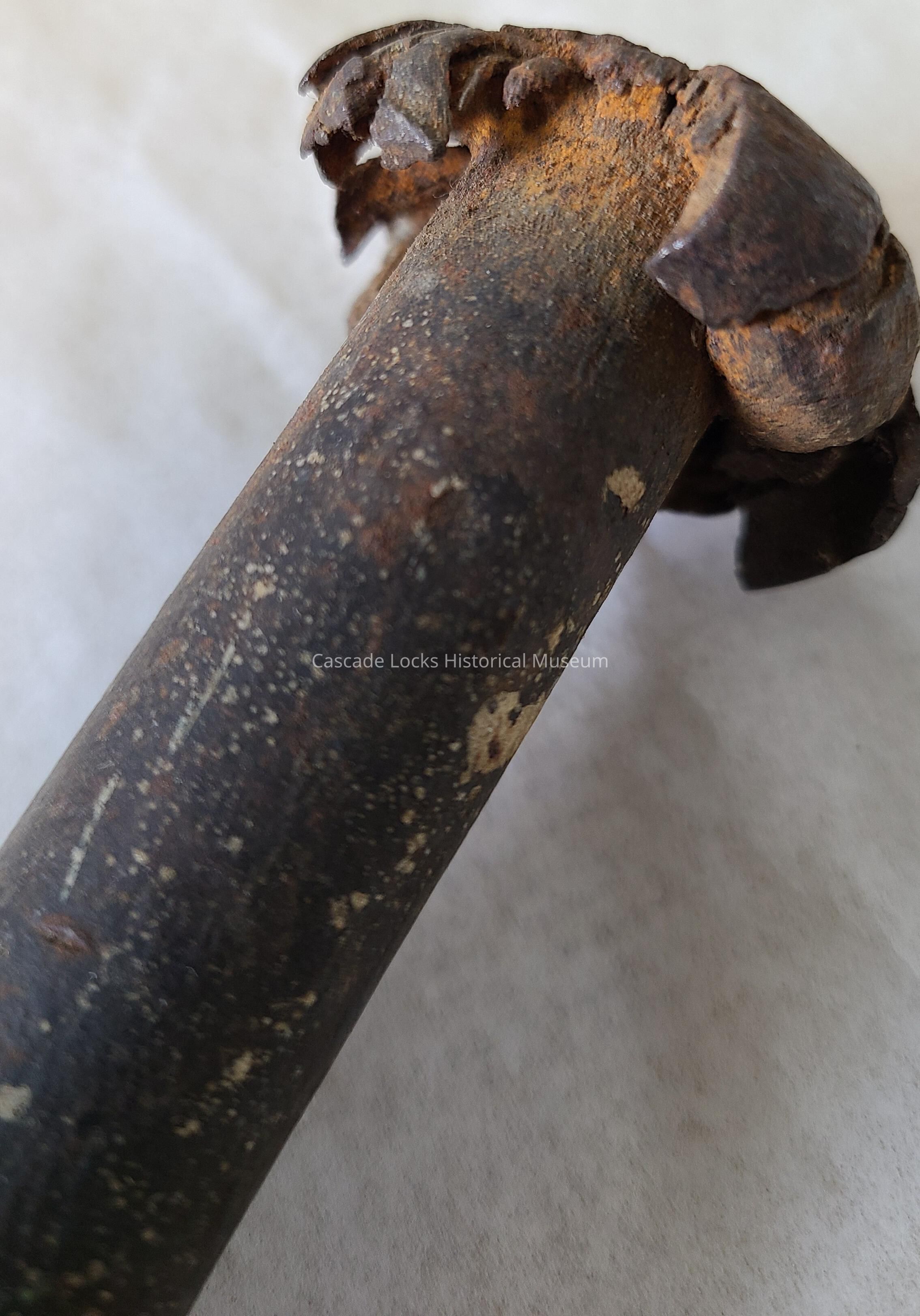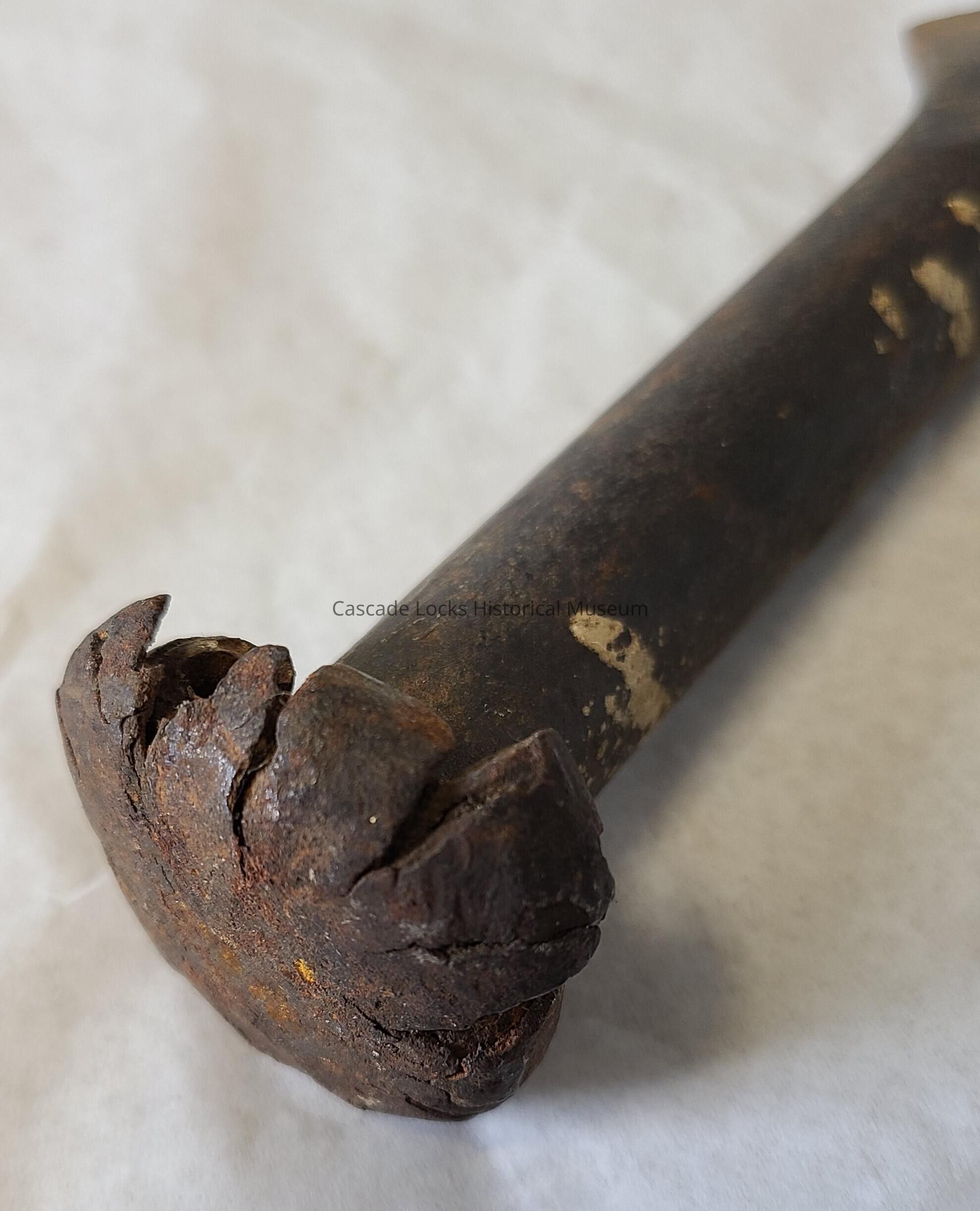 Stonemason chisel/bloster. Cast iron chisel with splintered end from force of impact.