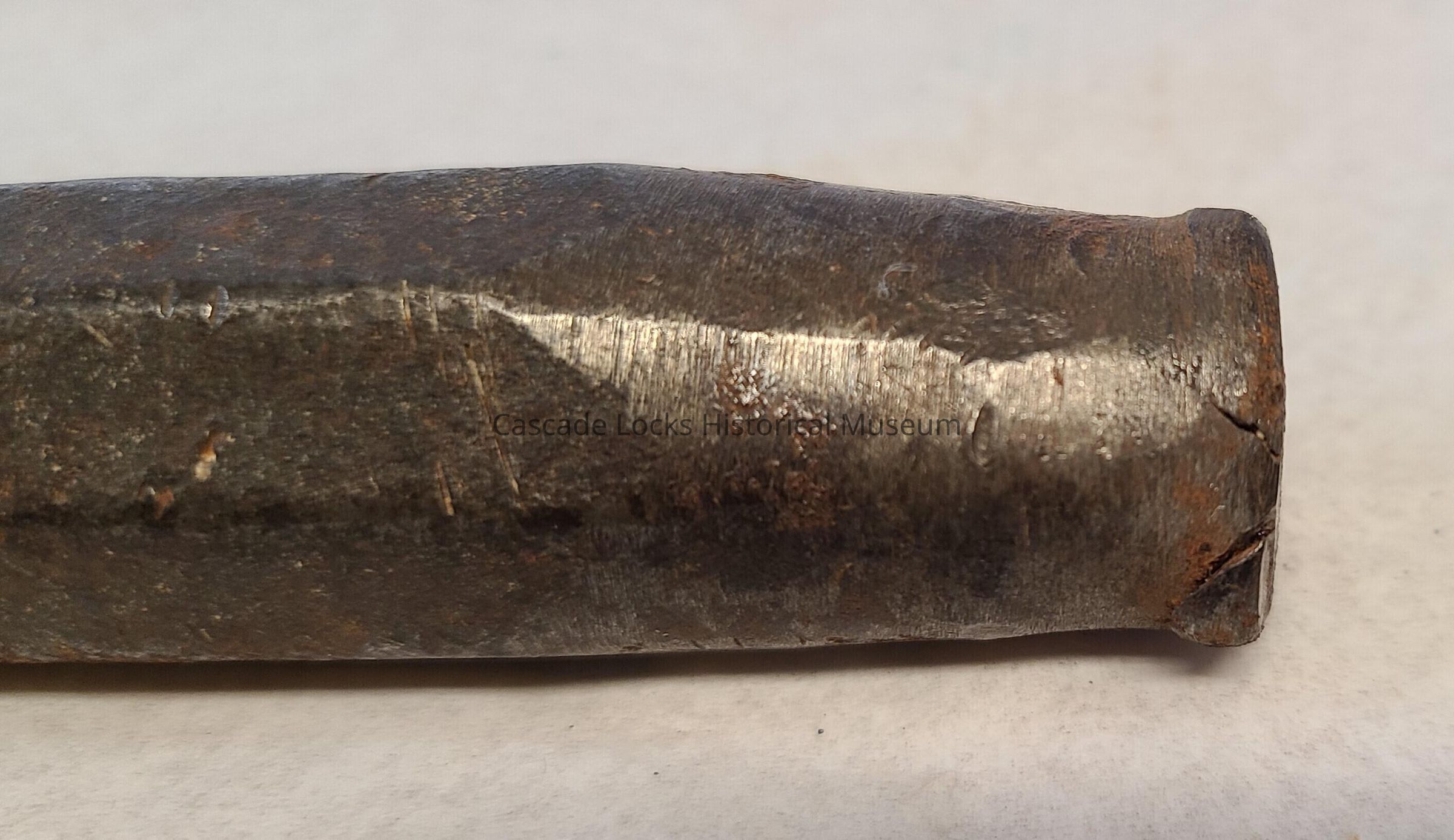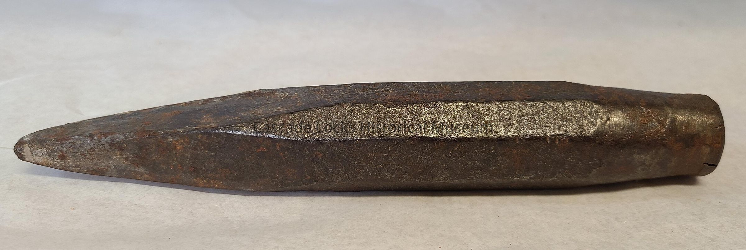 Stonemason chisel/bloster. Cast iron chisel with eight sides and a splintered end from force of impact.