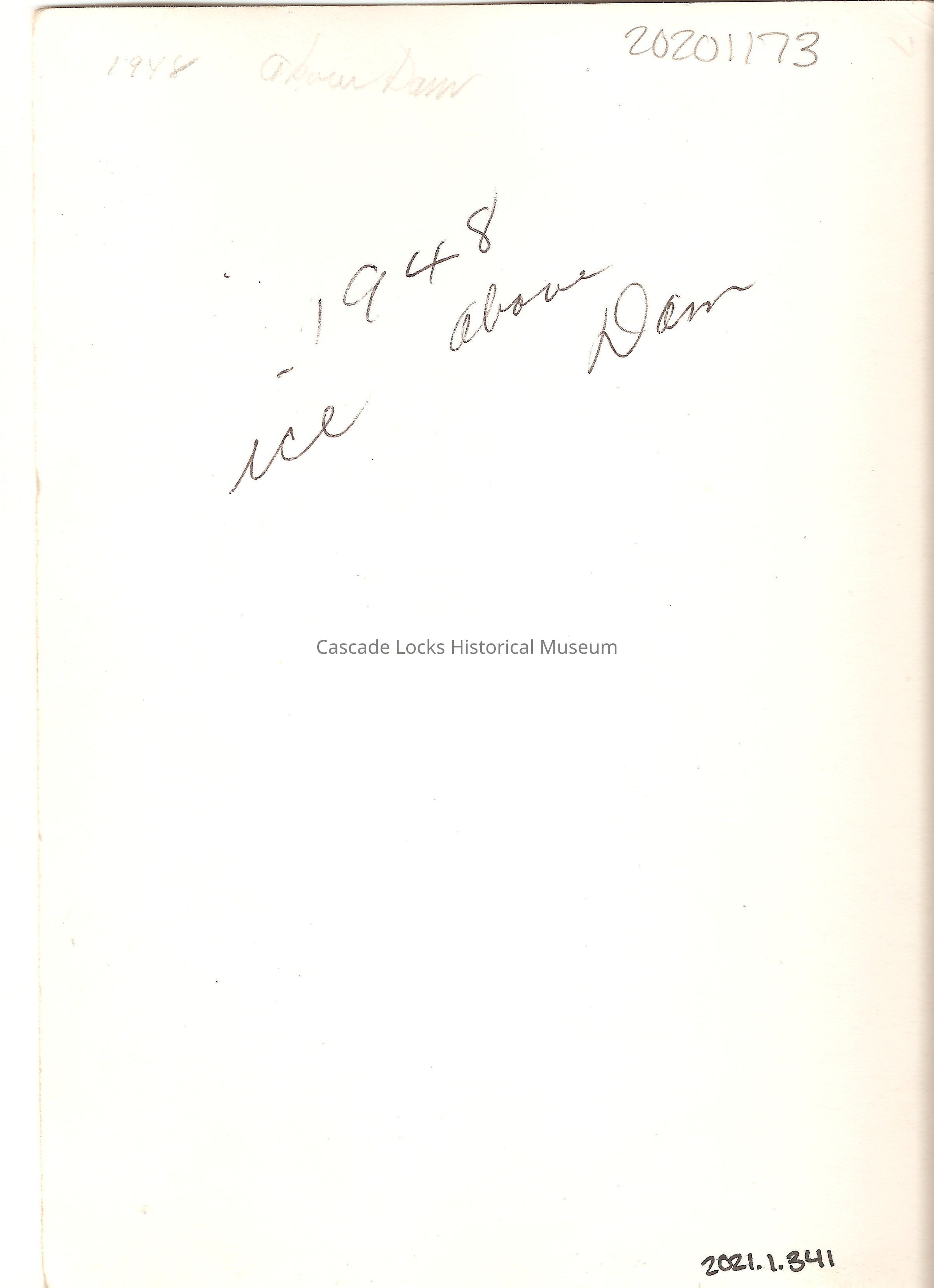 Back of image reads; 1948 above Dam, 1948 Ice above Dam