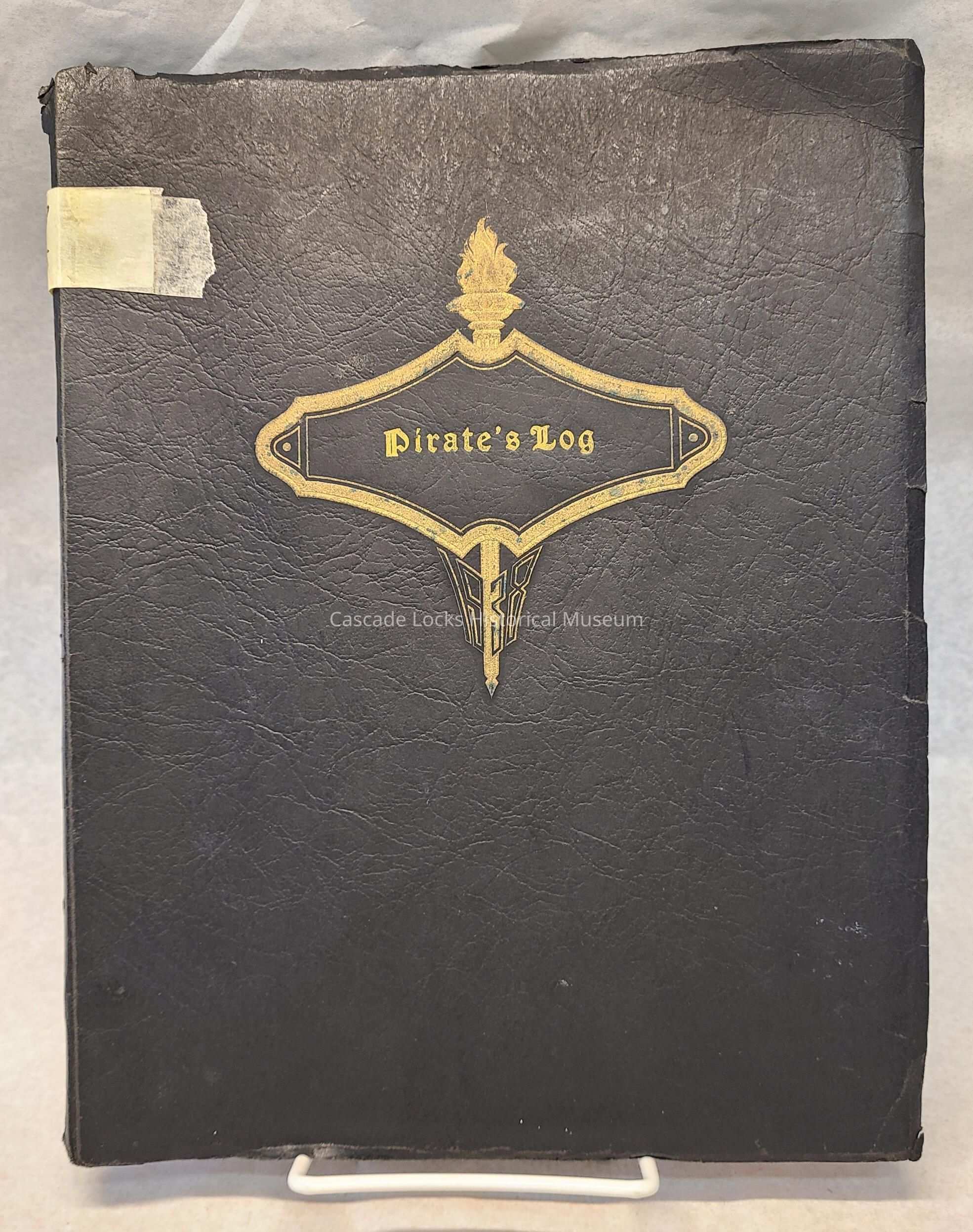 Yearbook, Cascade Locks High School 1937-1938. Front cover is black with gold design and font.