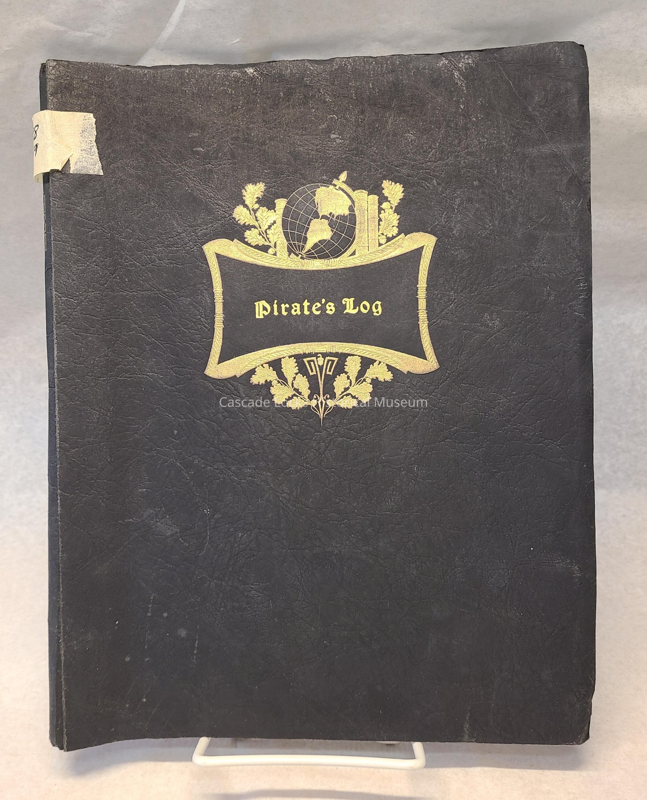 Yearbook, Cascade Locks High School 1938-1939. Front cover is black with gold design and gold font.
