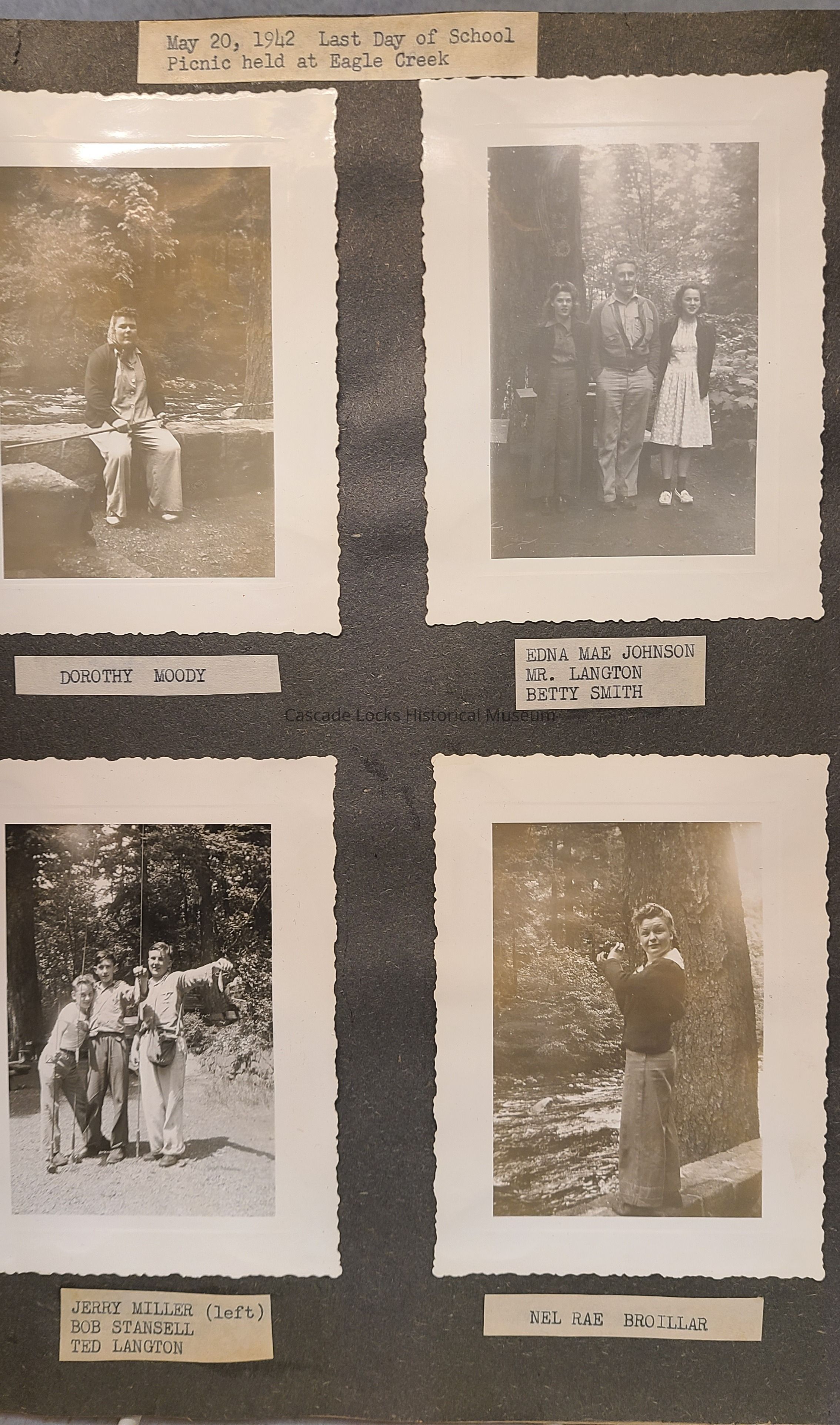 Inserted loose into the yearbook is one letter 4 pages long, picture sister Mary, picture of young woman, news paper clipping, Oregon State teachers certificate, teachers health certificate, marriage program, teachers contact, picture of student Ted Laughton, picture of student Dorothy Moody, and image of the Vista House from a magazine.Lexicon