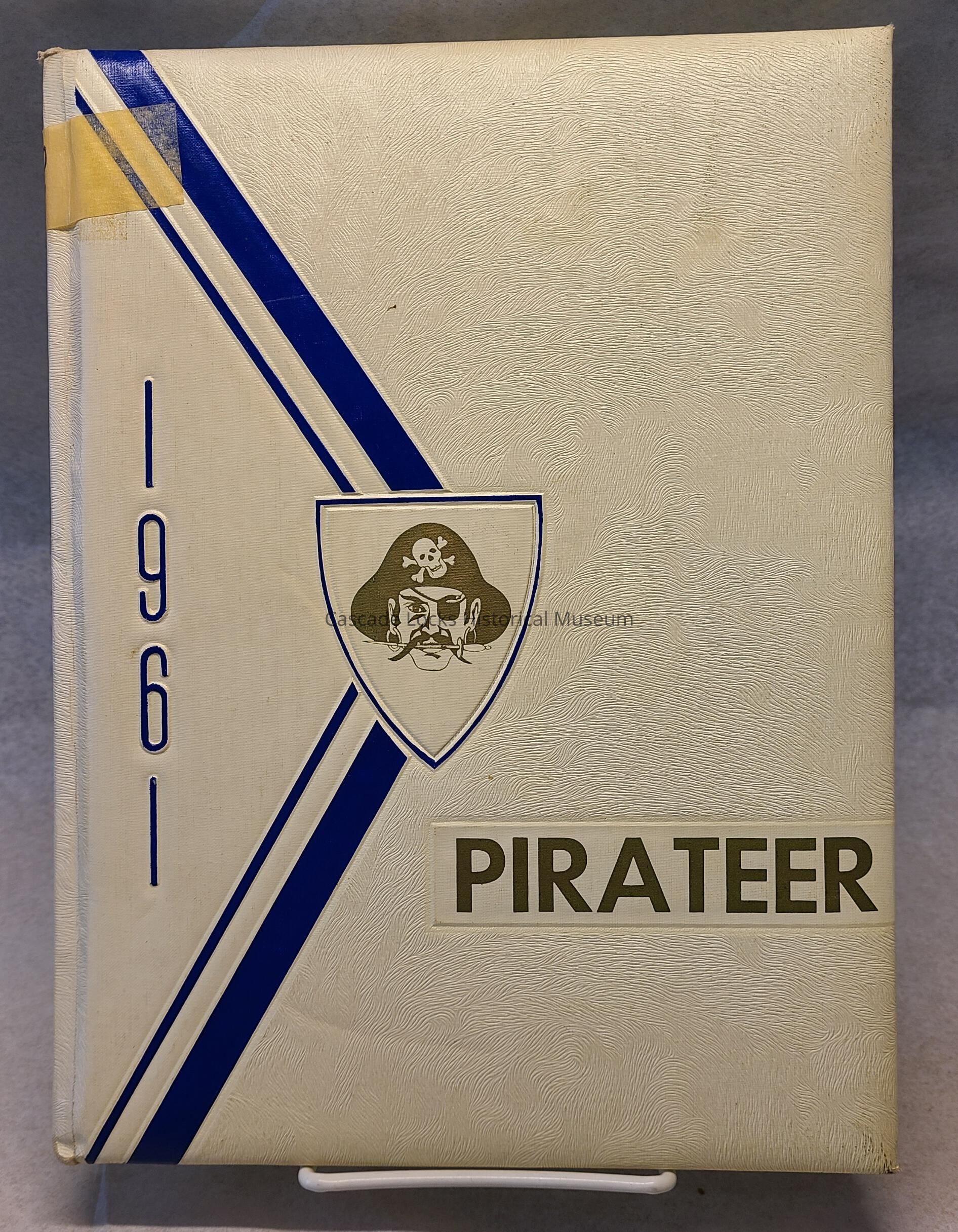 Yearbook, Cascade Locks High School 1960-1961. Front cover is off-white with gold and blue details and font.