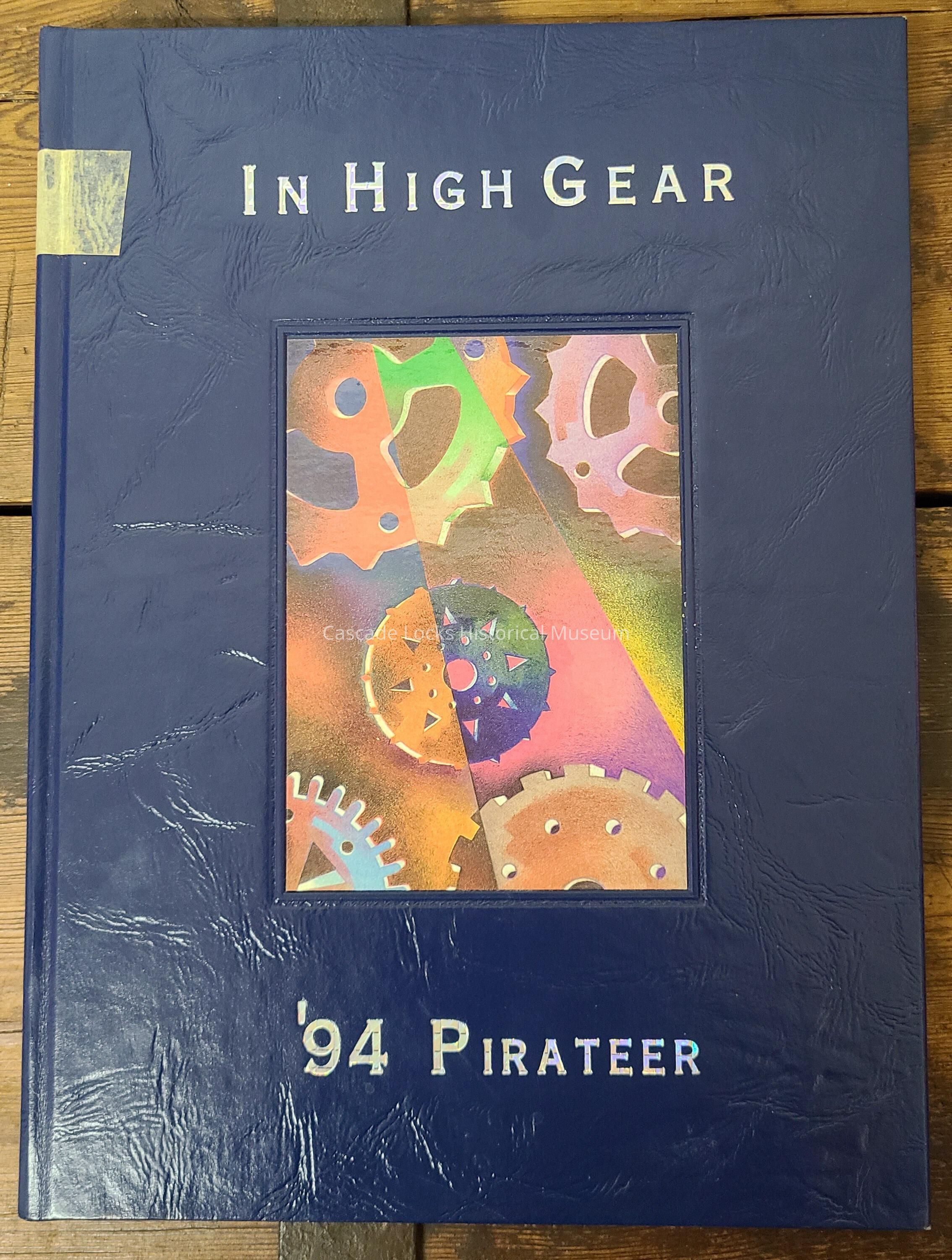 Yearbook, Cascade Locks High School 1994. Blue with multicolored image of gears.