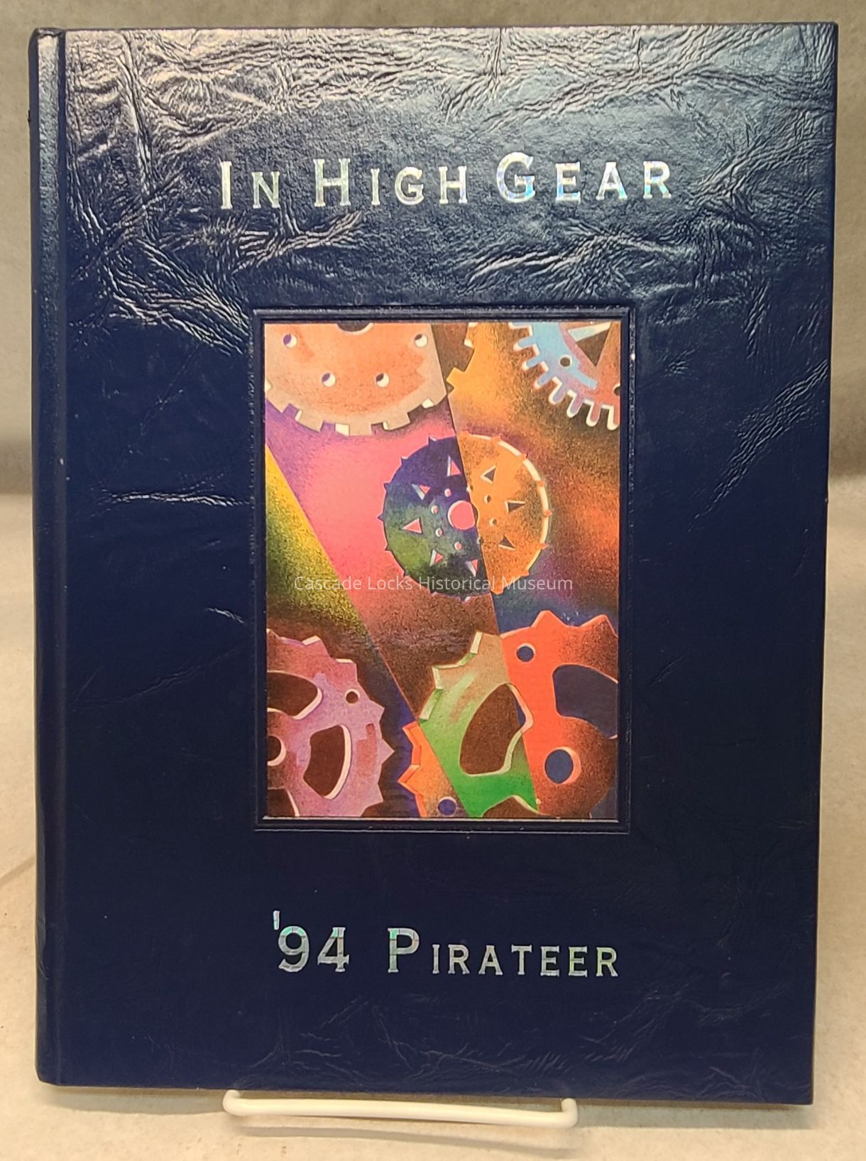 Yearbook, Cascade Locks High School 1994. Blue with multicolored image of gears.
