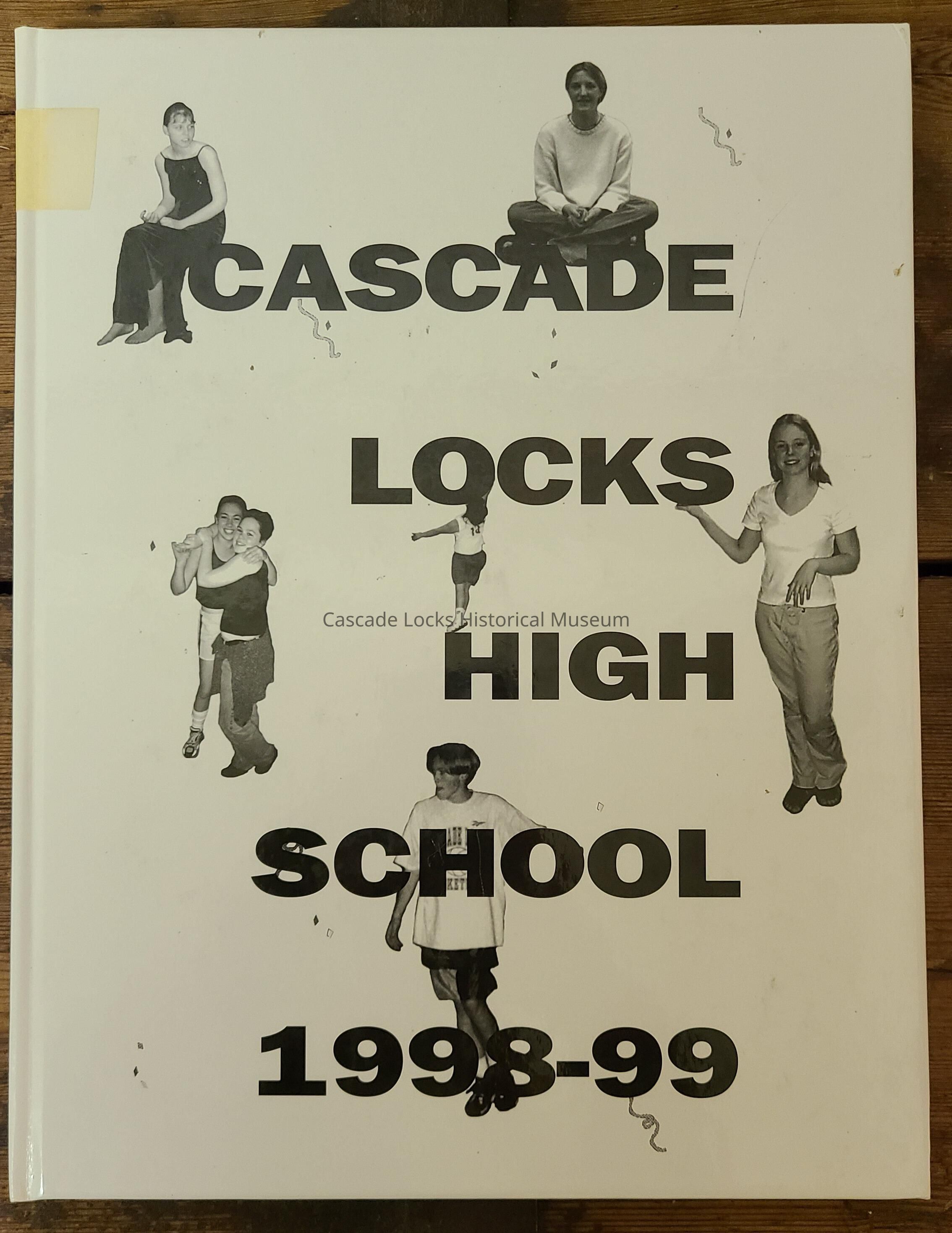 Yearbook, Cascade Locks High School 1999. Front cover is white with gray scale images of students (18).