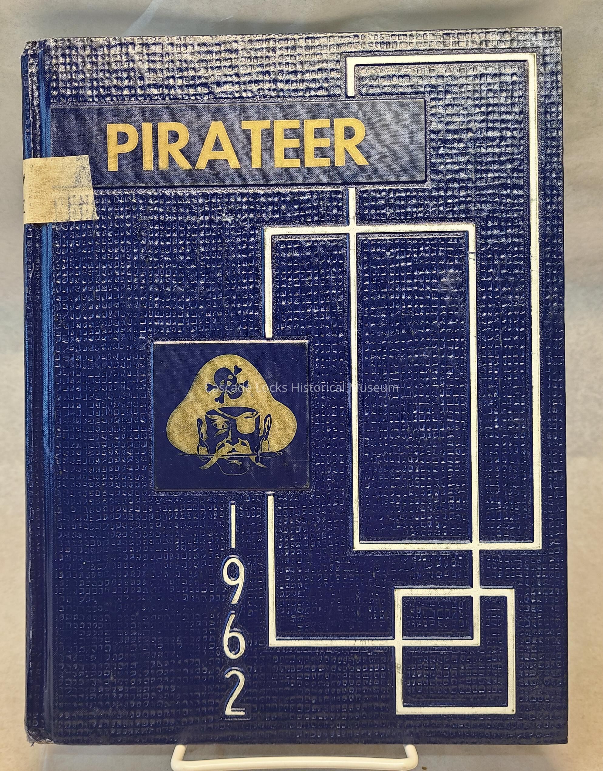 Yearbook, Cascade Locks High School 1961-1962. Front cover is navy blue with gold and white font and details.