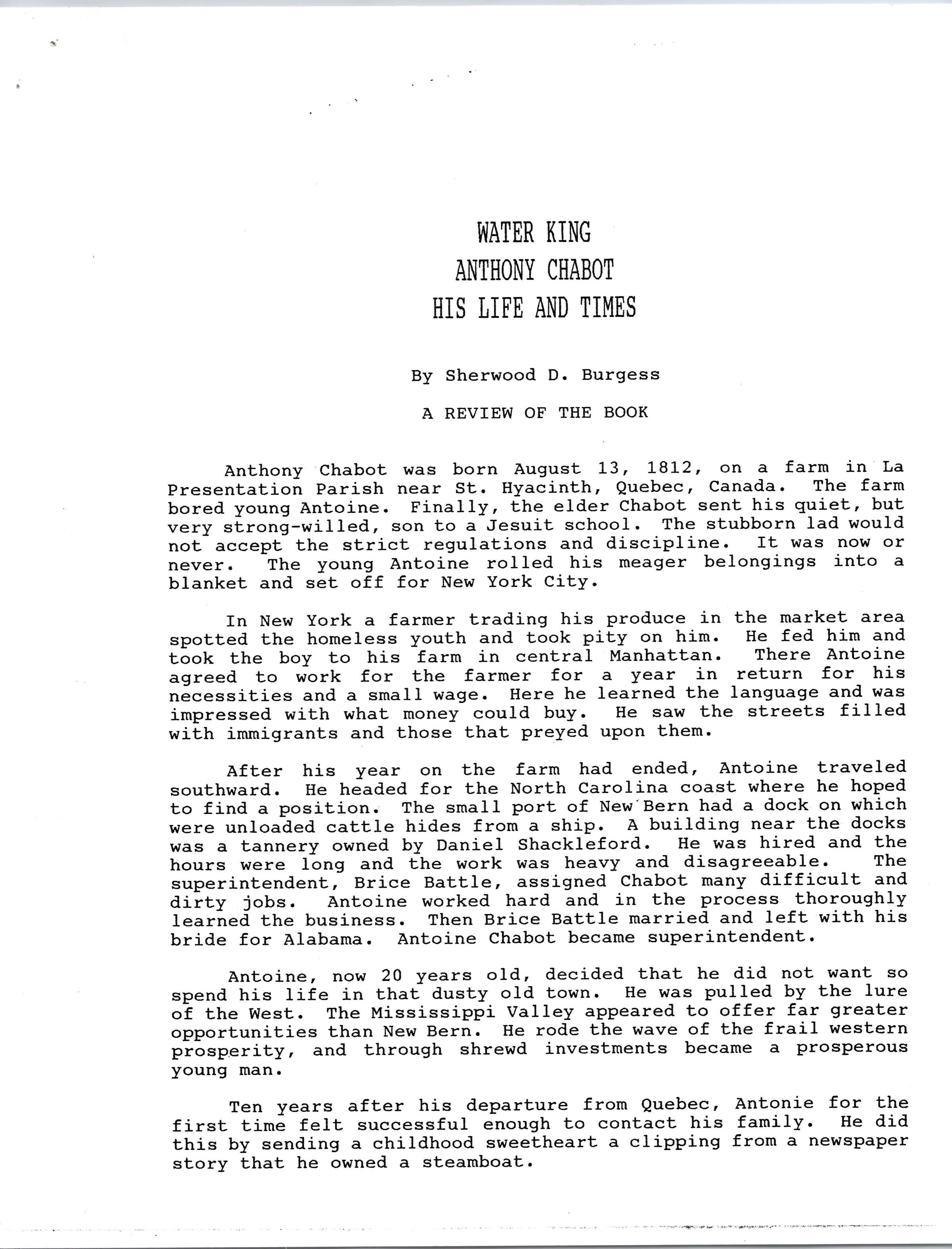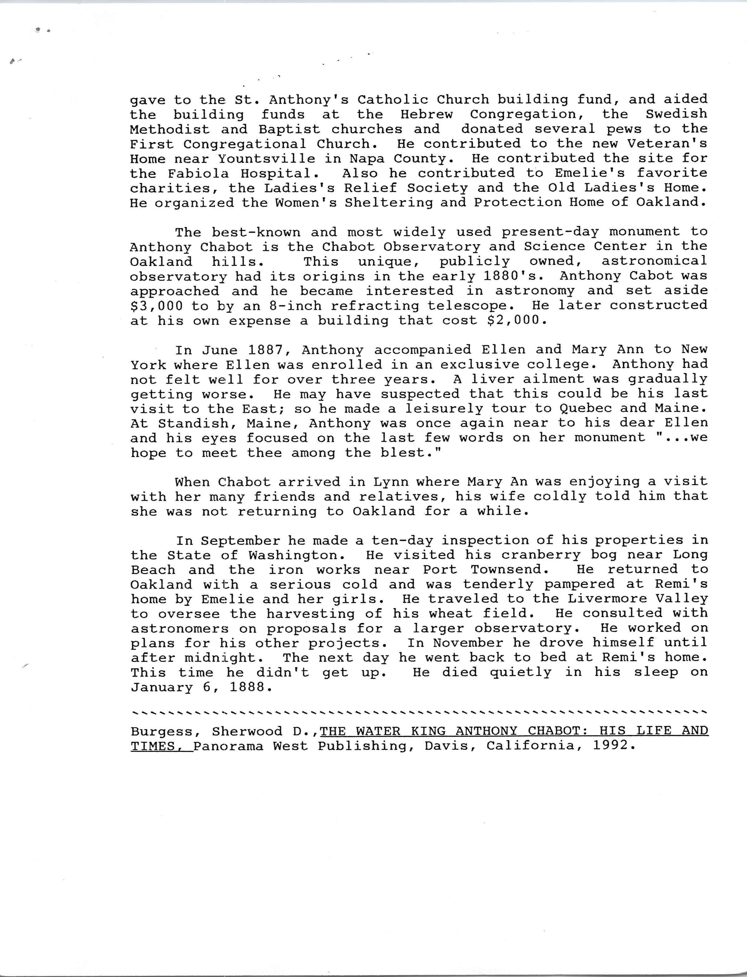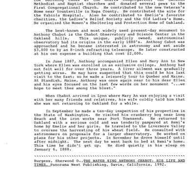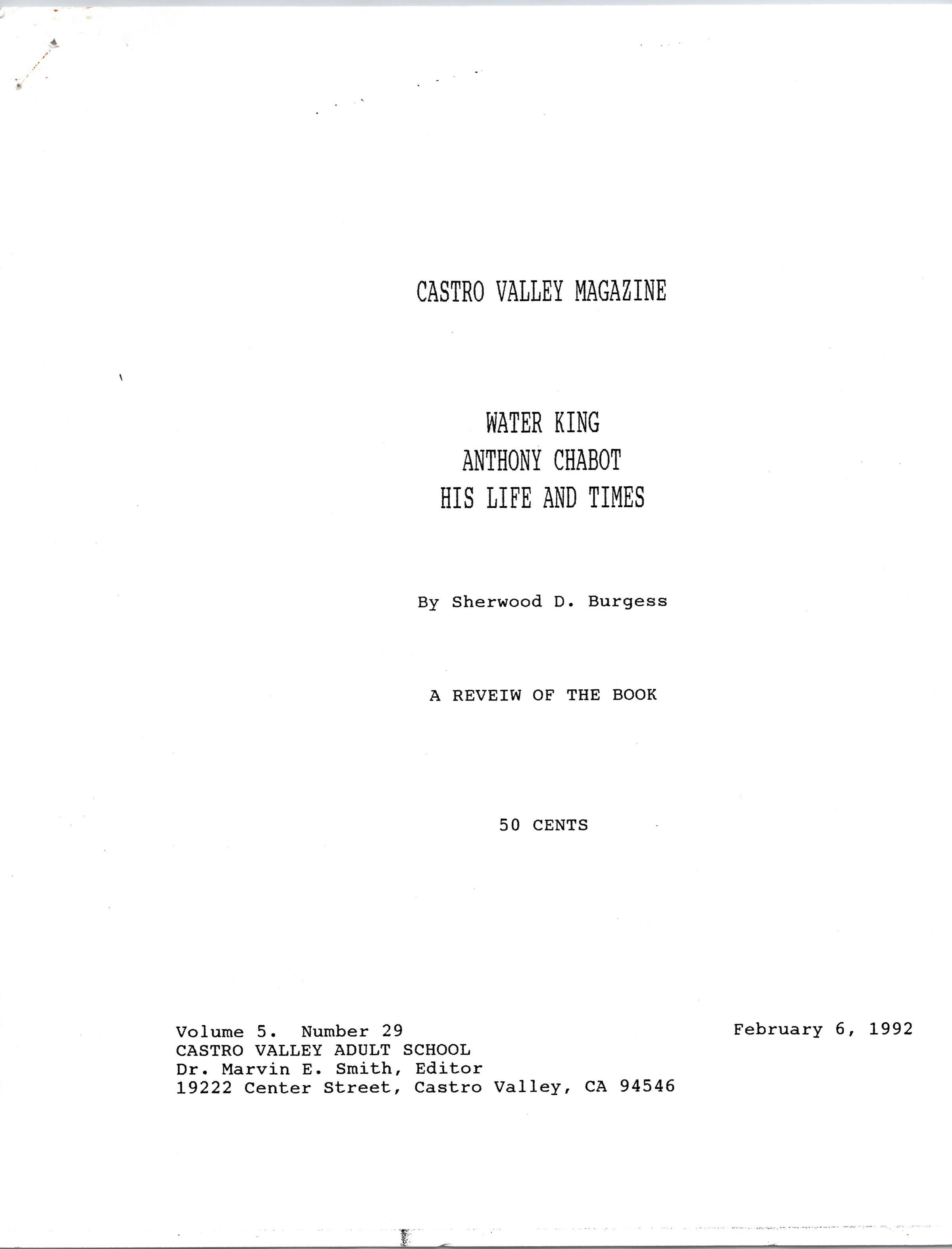 Volume 5 number 29 of Castro Valley Magazine edited by Dr. Marvin E. Smith. Review of Walter King's book on Anthony Chabot by Sherwood D. Burgess.Collection