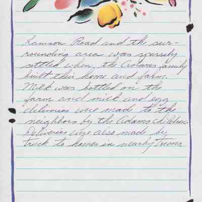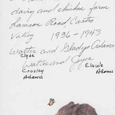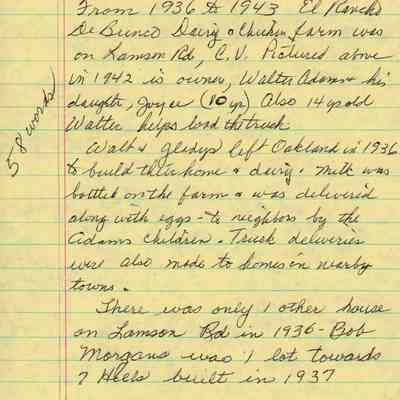 Photographs and handwritten notes related to the Adams family dairy on Lamson Road, also known as El Rancho deBunco. Descriptions of Walter and Gladys Adams, son Walter Jr and daughter Joyce.Collection