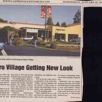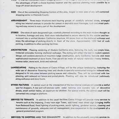 Several Castro Valley Forum articles and an advertisement, and a flyer describing the benefits of Castro Village to businesses. Includes a photo of a groundbreaking ceremony.Collection