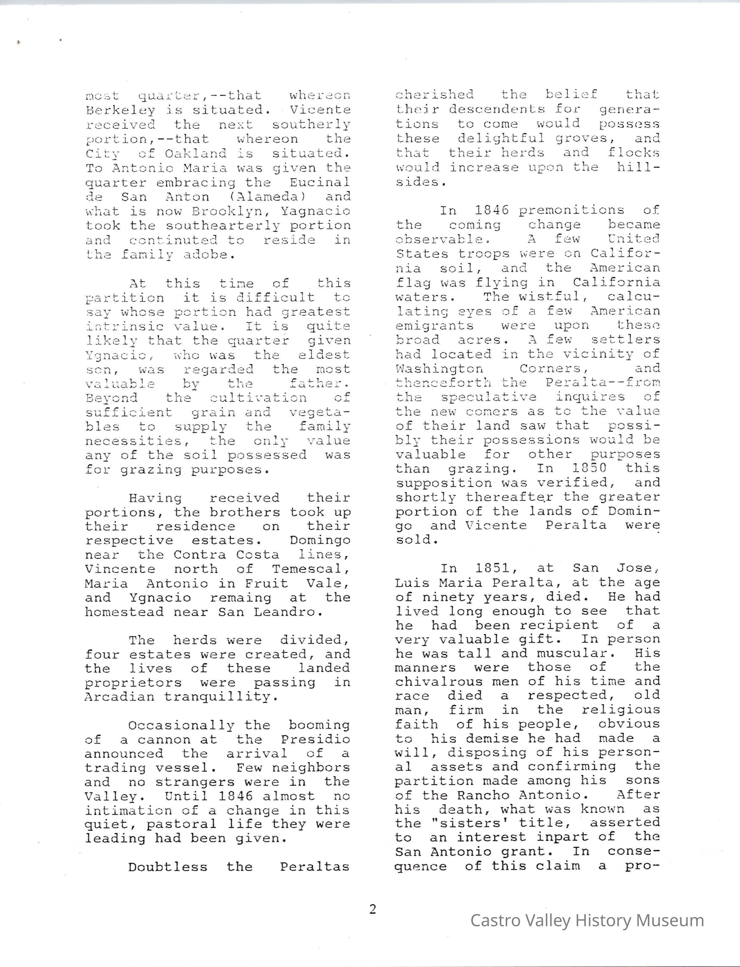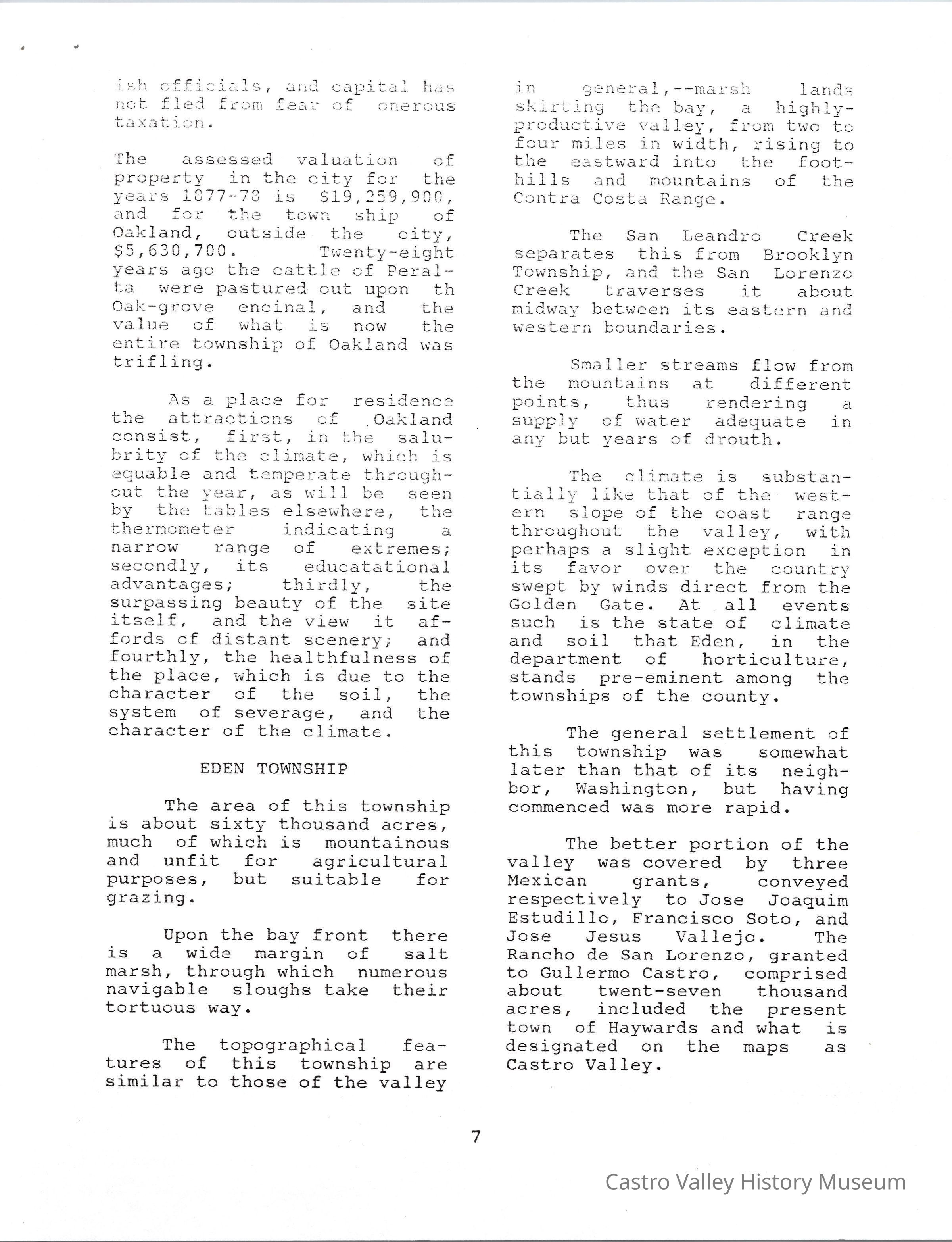 Volume 2 No. 15 of Castro Valley Magazine edited by Dr. Marvin E. Smith. Excerpts from Thompson & West Atlas of Alameda County, 1878. Subjects include Luis Maria Peralta Land Grant, The Beginning of Oakland, Eden Township, The Estudillo Land Grant, San Leandro, and Haywards.Collection