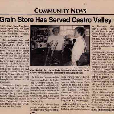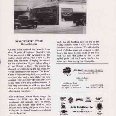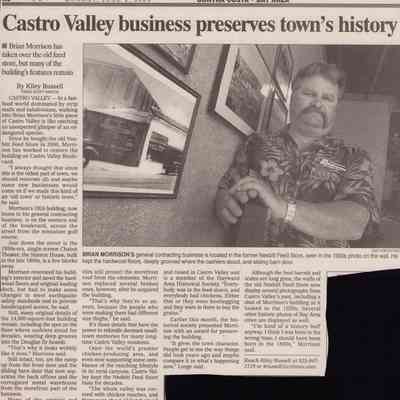 Photos and articles on B. A. Morrison, General Contractor's building. The site was formerly the location of Orin Crowe Feed Store followed by Nesbitt's Feed Store. Includes an article by Lucille Lorge on the history of the location as well as articles from the Castro Valley Forum and the Contra Costa Times.Collection