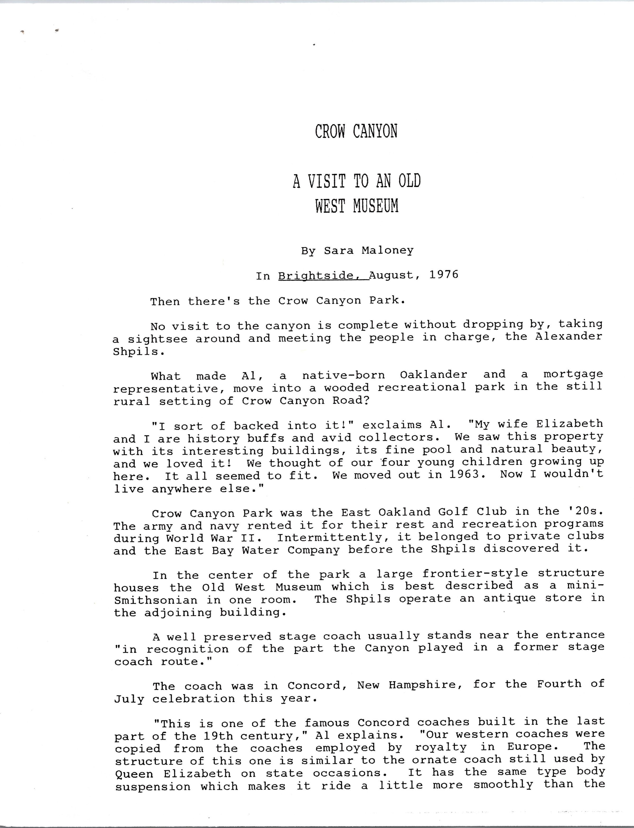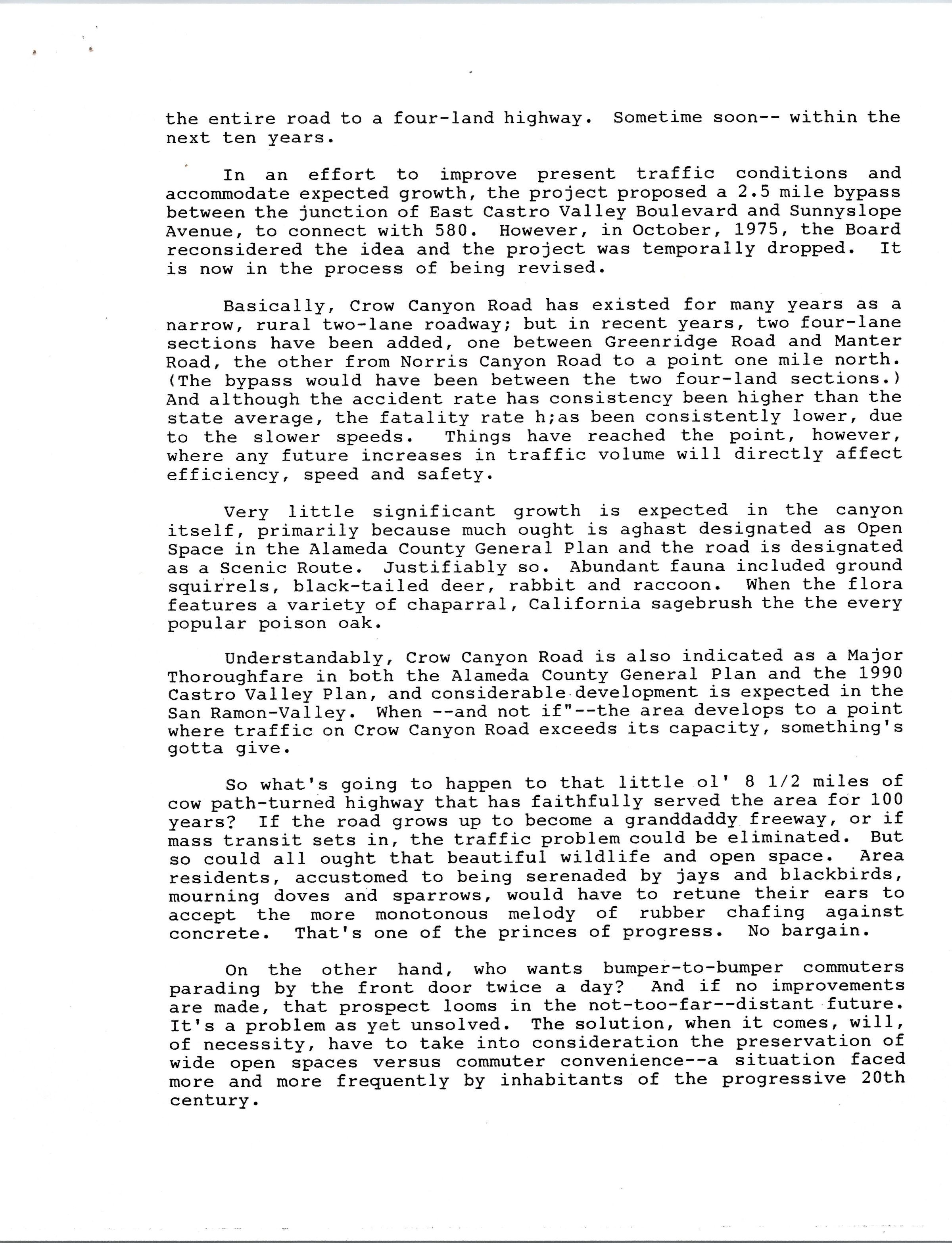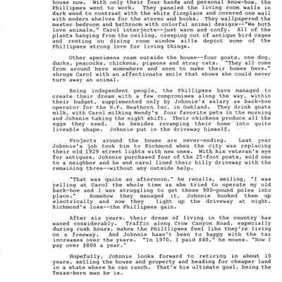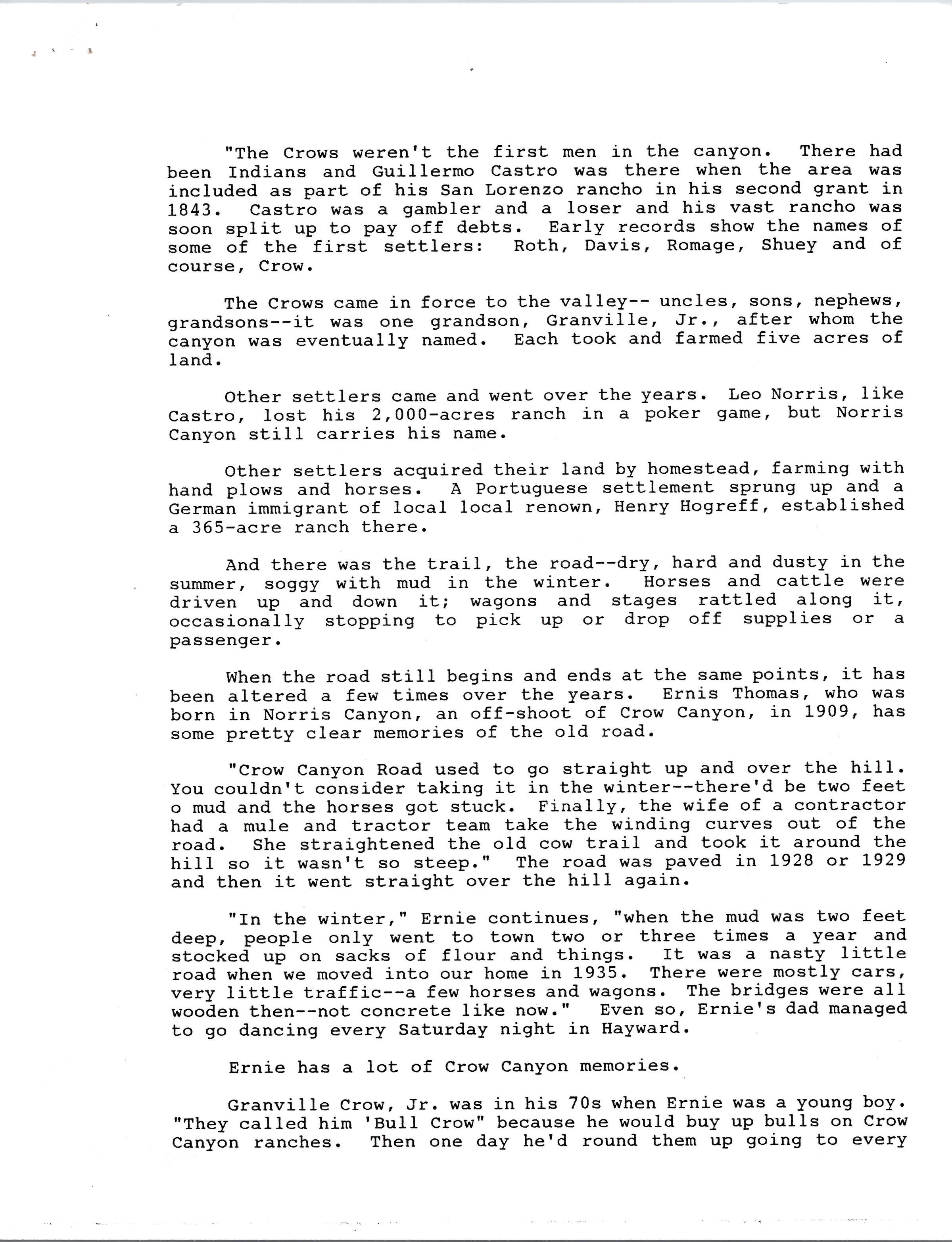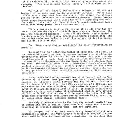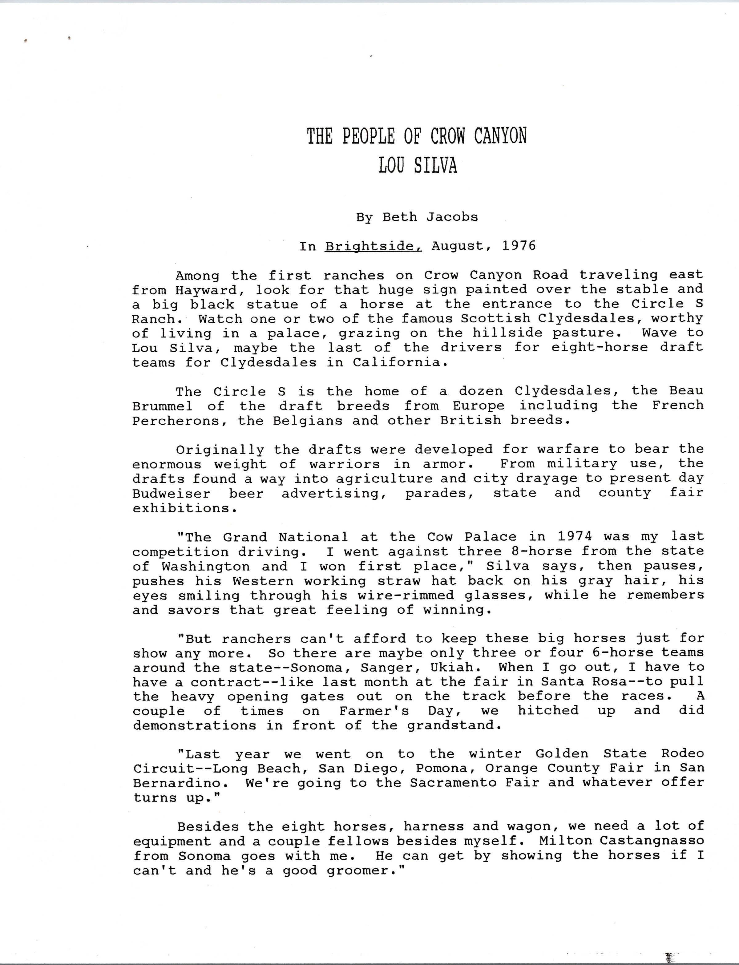Volume 5 number 32 of Castro Valley Magazine edited by Dr. Marvin E. Smith. Articles on Crow Canyon including Lous Silva, the Phillipses, the Millens, and the Thomases. Written by Jerry Archer, Beth Jacobs, Carolyn Hobbs, Minta Braasch, and Sara Maloney.Collection