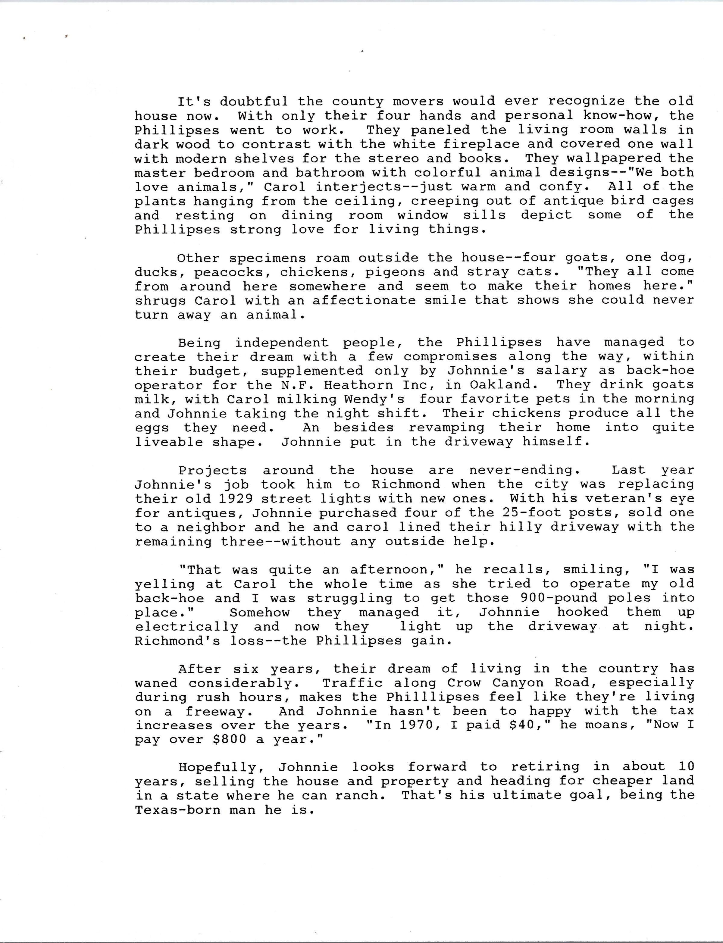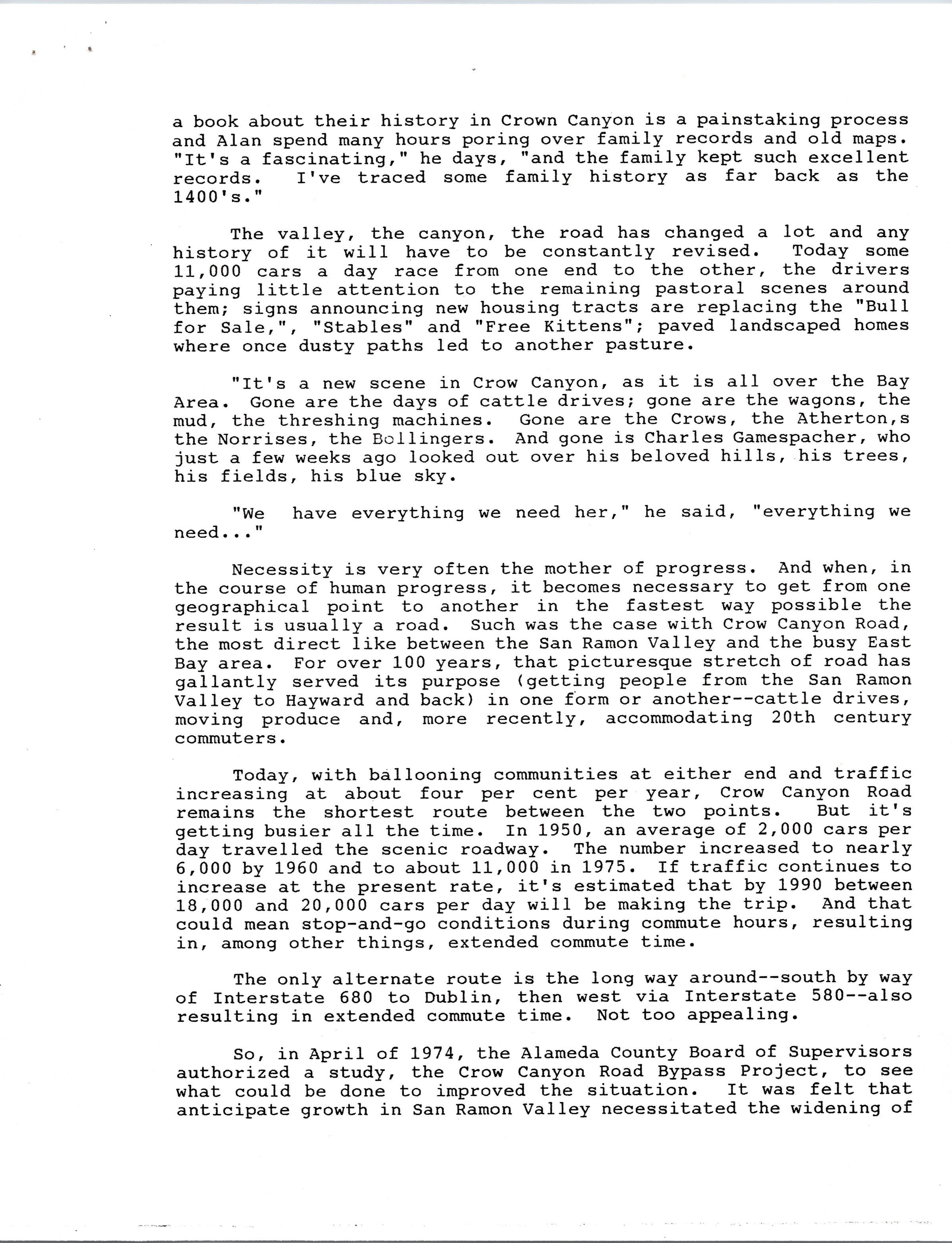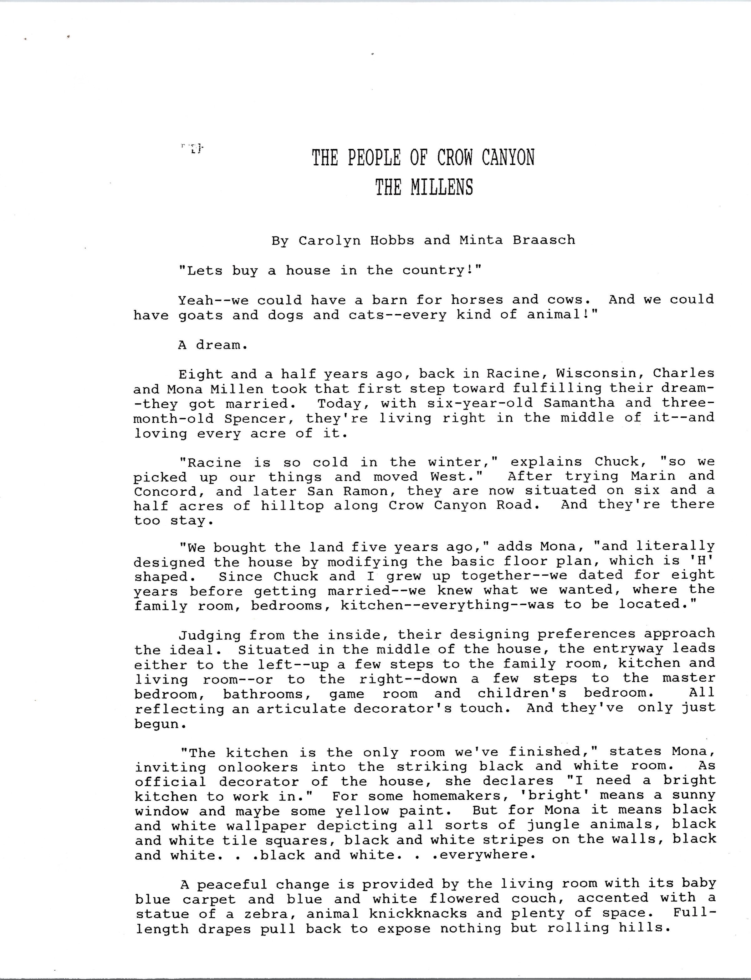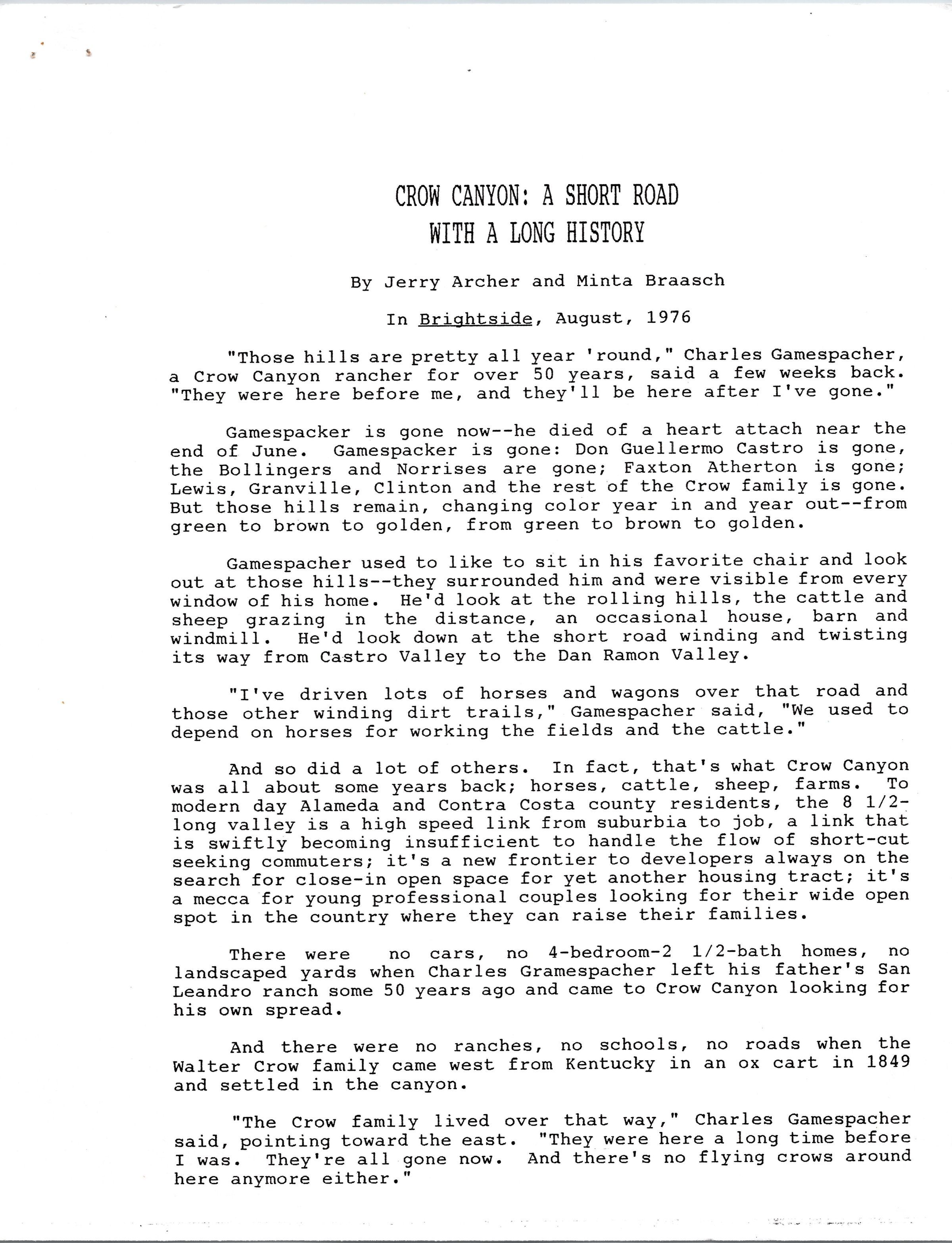 Volume 5 number 32 of Castro Valley Magazine edited by Dr. Marvin E. Smith. Articles on Crow Canyon including Lous Silva, the Phillipses, the Millens, and the Thomases. Written by Jerry Archer, Beth Jacobs, Carolyn Hobbs, Minta Braasch, and Sara Maloney.Collection