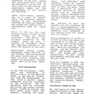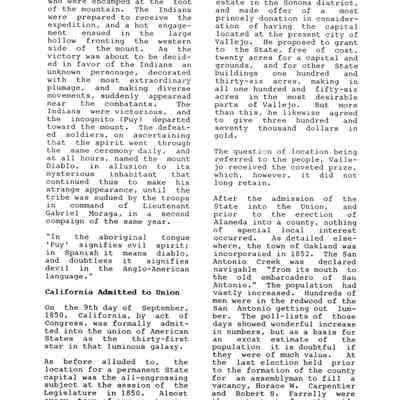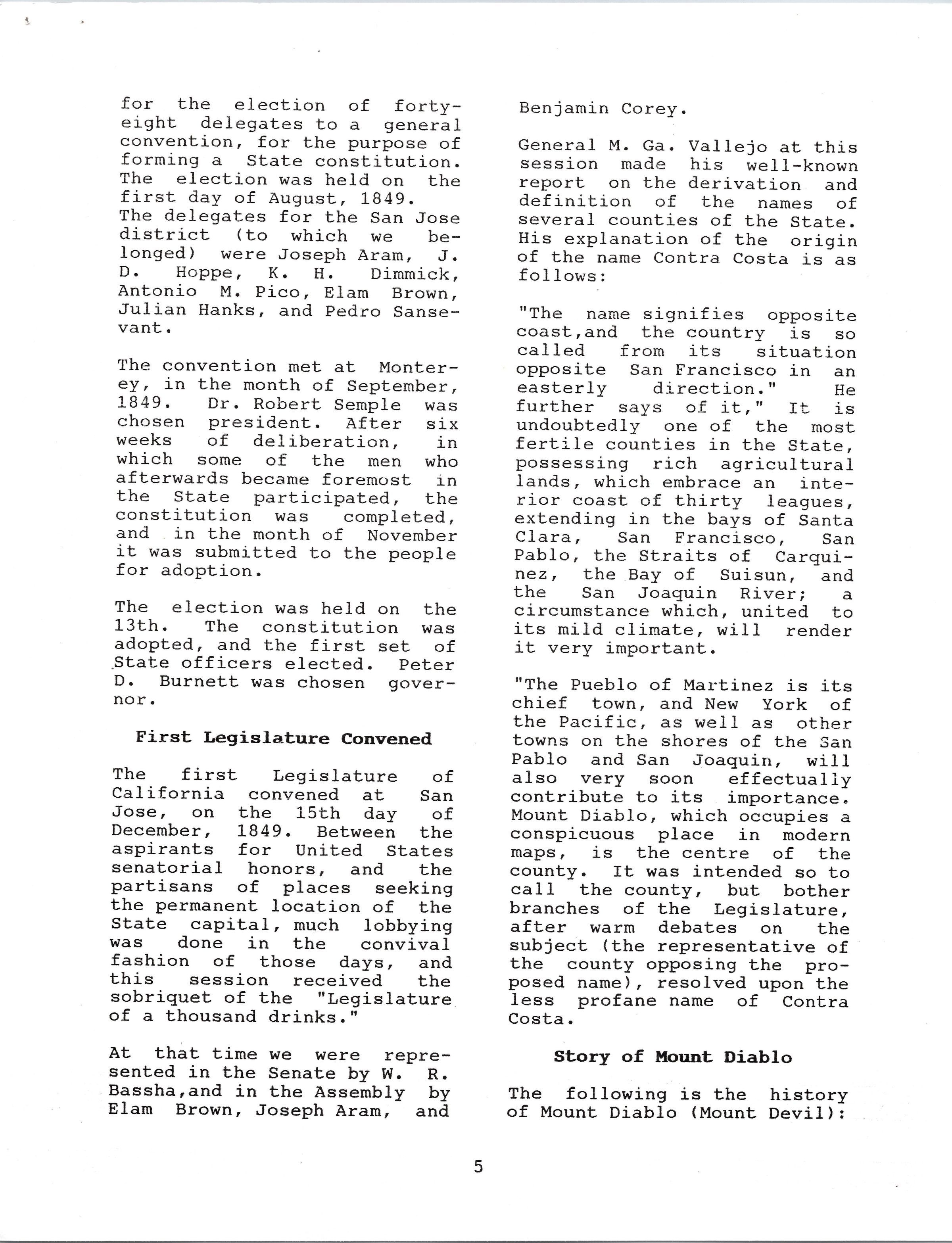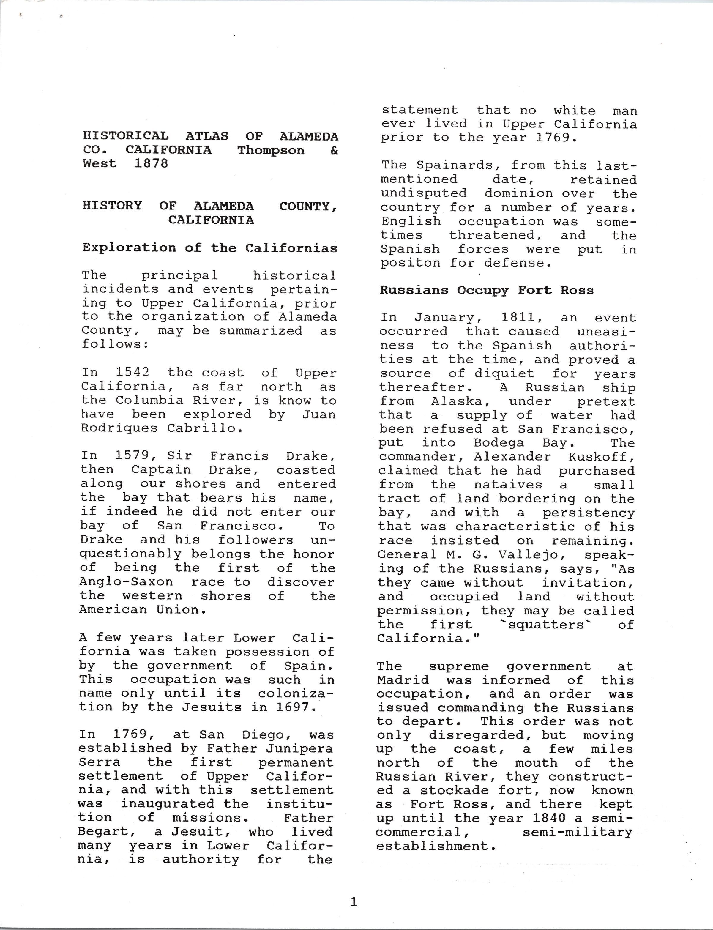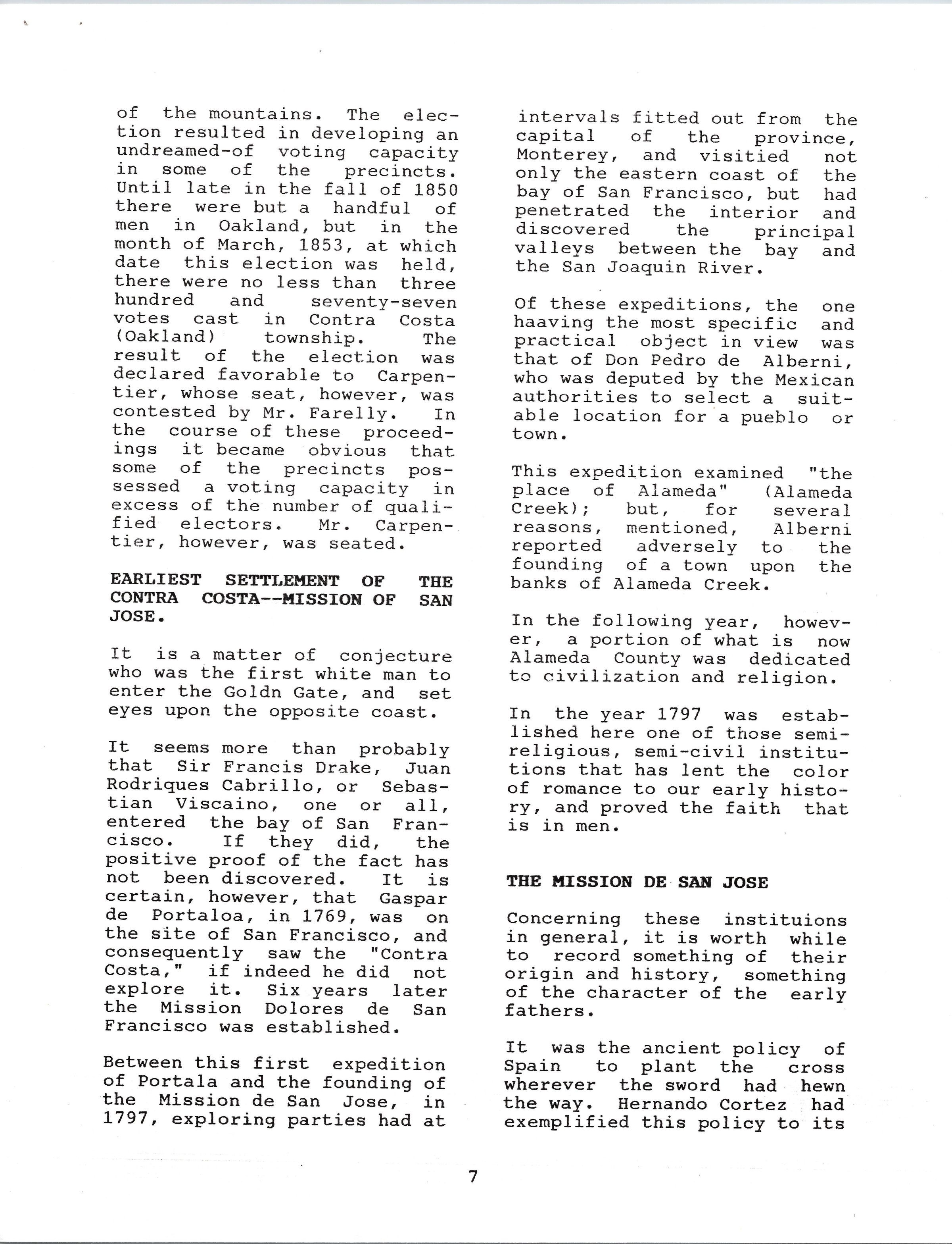 Volume 2 No. 17 of Castro Valley Magazine edited by Dr. Marvin E, Smith. Includes excerpts from Historical Atlas of Alameda County California, Thompson & West 1878. Segments include history of Alameda County, Exploration of California, Spanish and Mexican Rule, Yankee Invasion, Gold Discovery, Story of Mount Diablo, Mission San Jose, and Aborigines.Collection