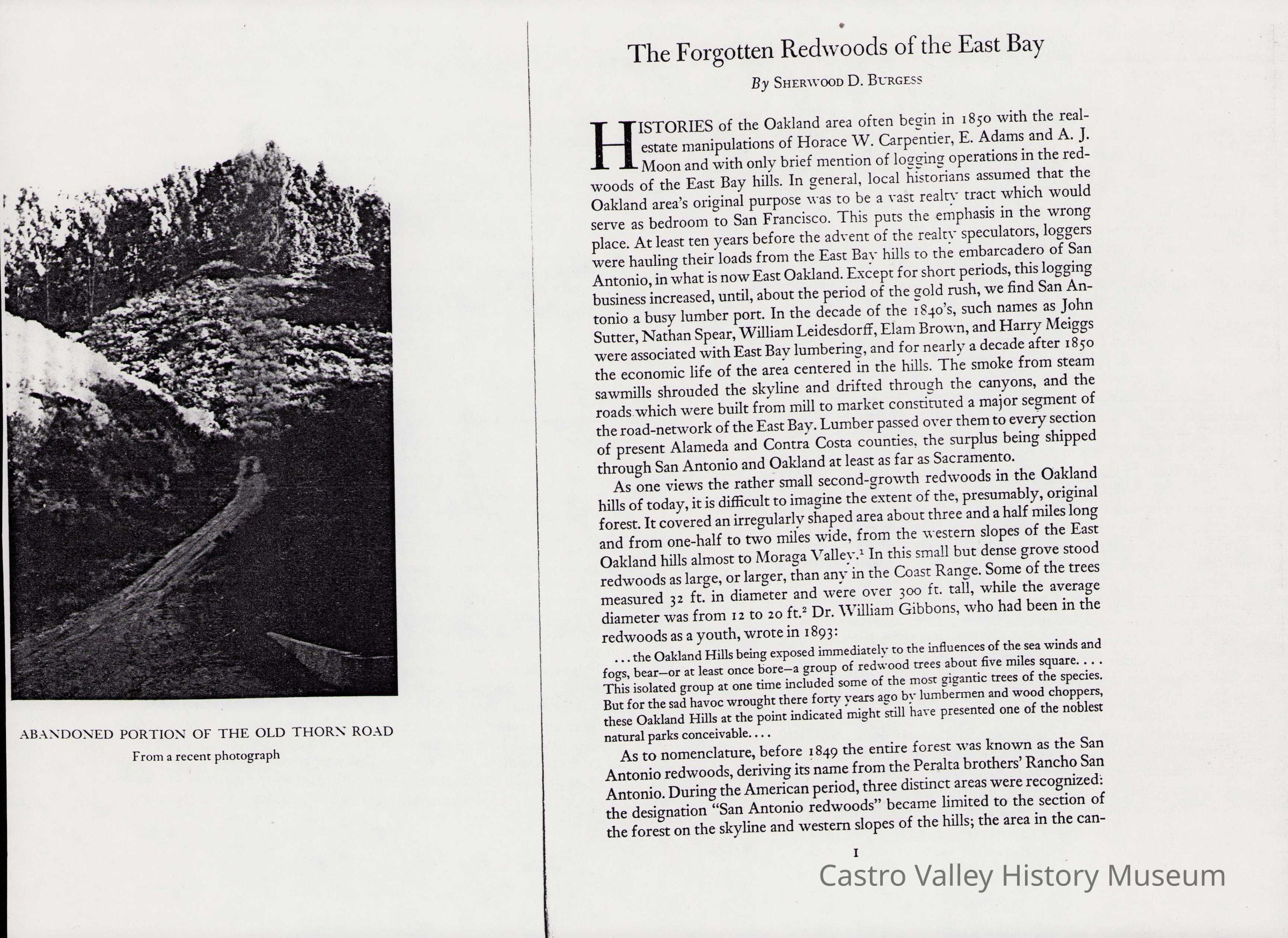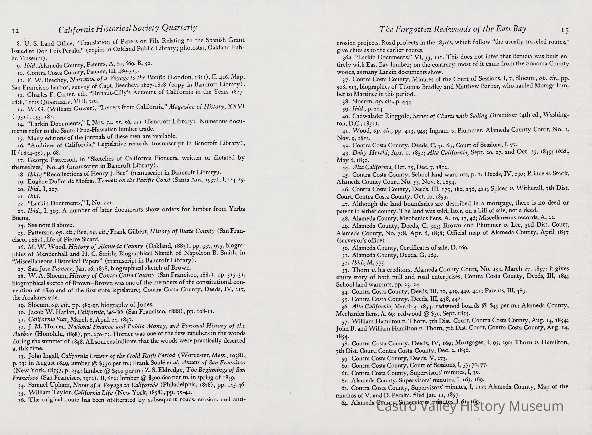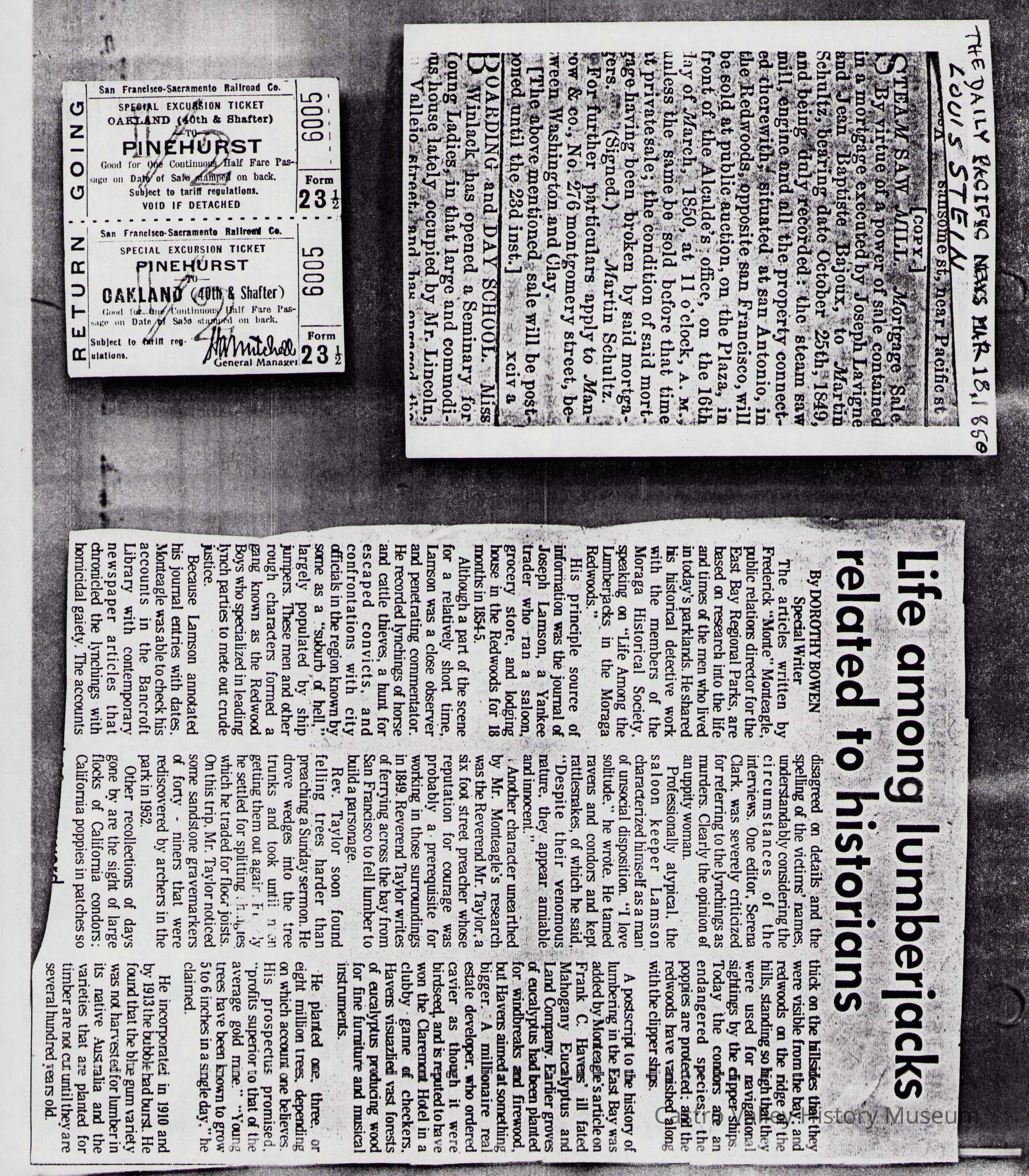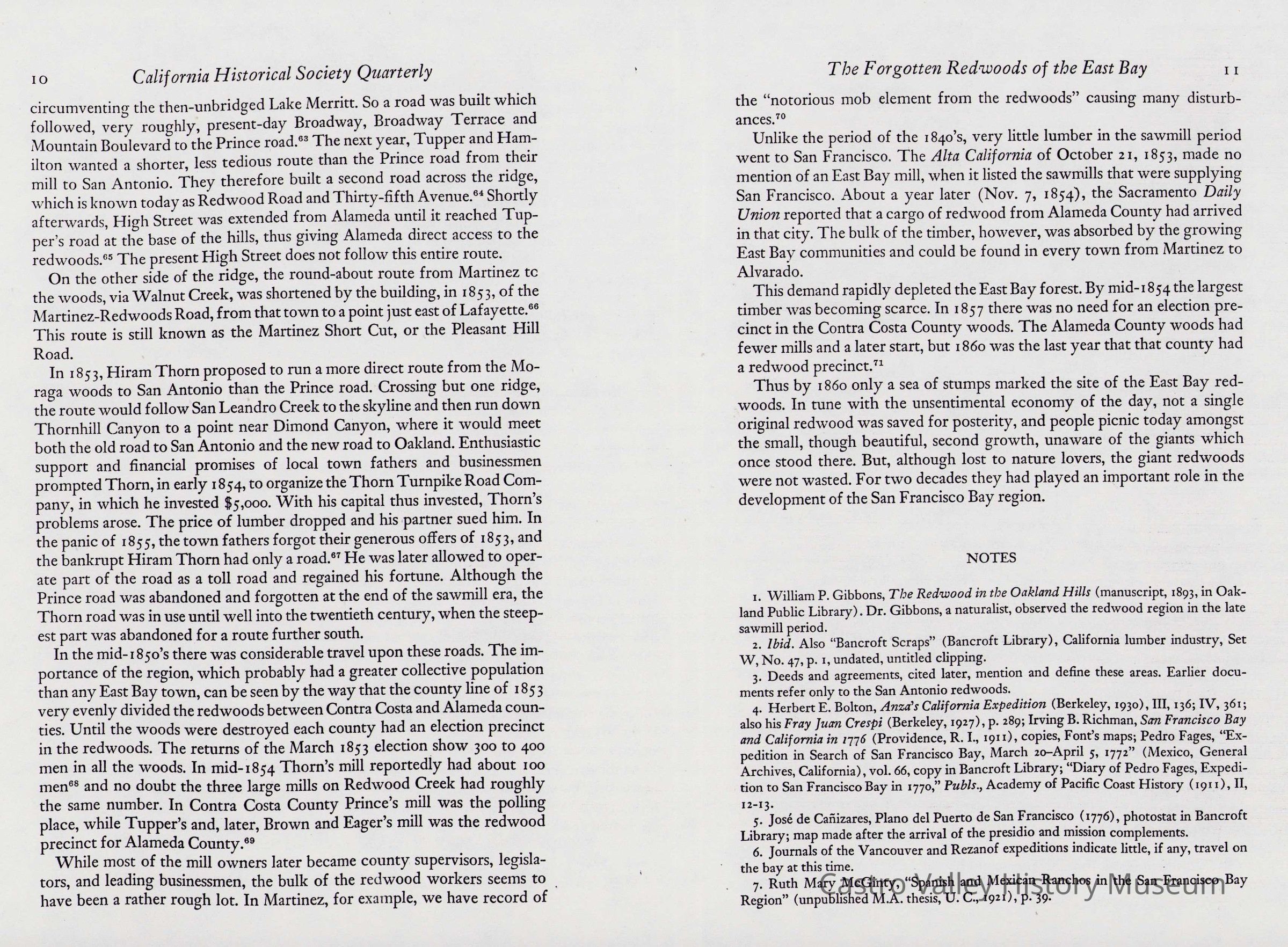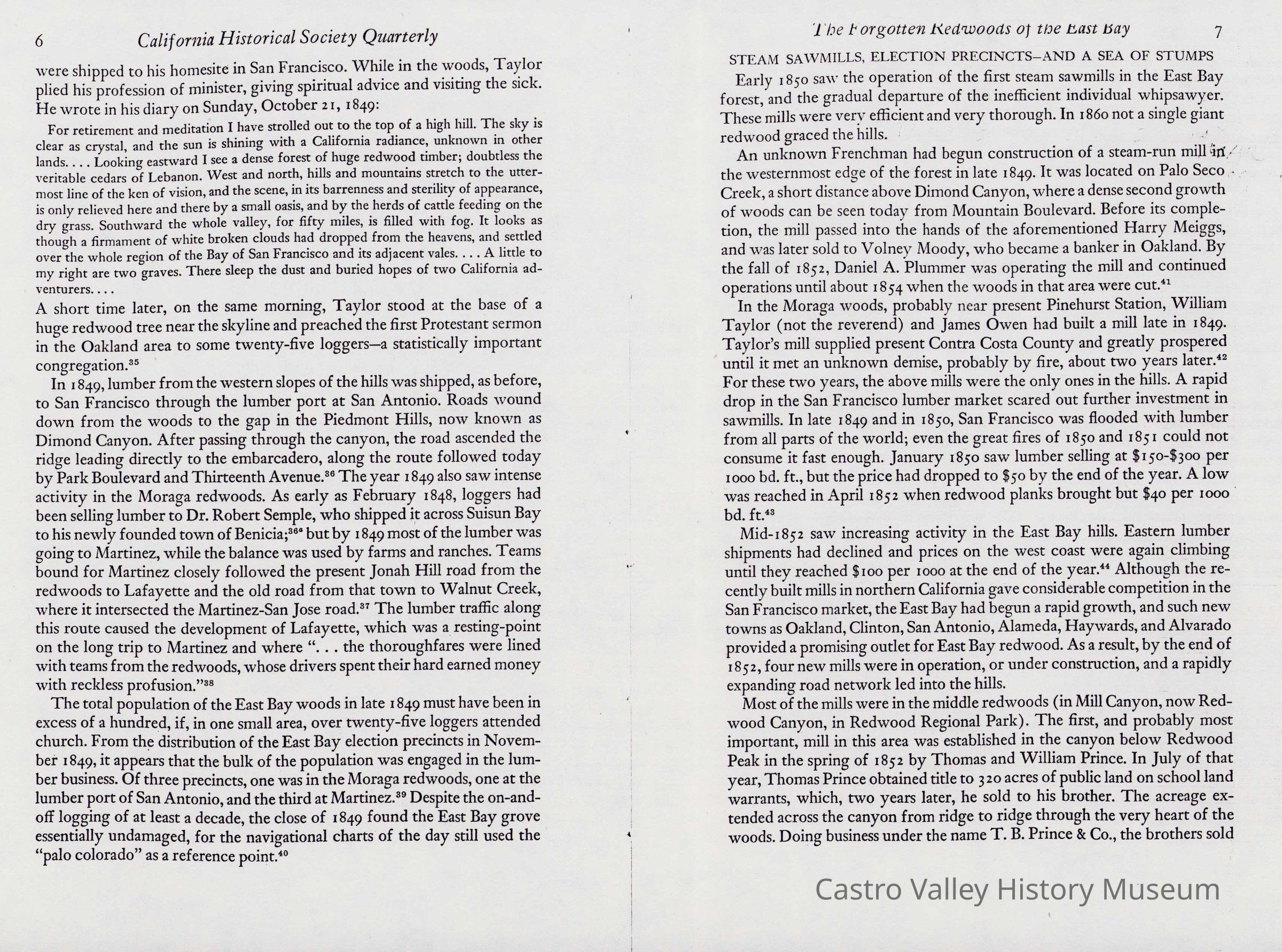 Newspaper articles, other documents and photos on the history of Castro Valley Lumber. Includes an article from the California Historical Society Quarterly from March 1951 and an advertisement from the Castro Valley Business Bulletin. Also includes a Castro Valley Forum article from circa 2005 about owners John Tallman and Bill Peterson.Collection