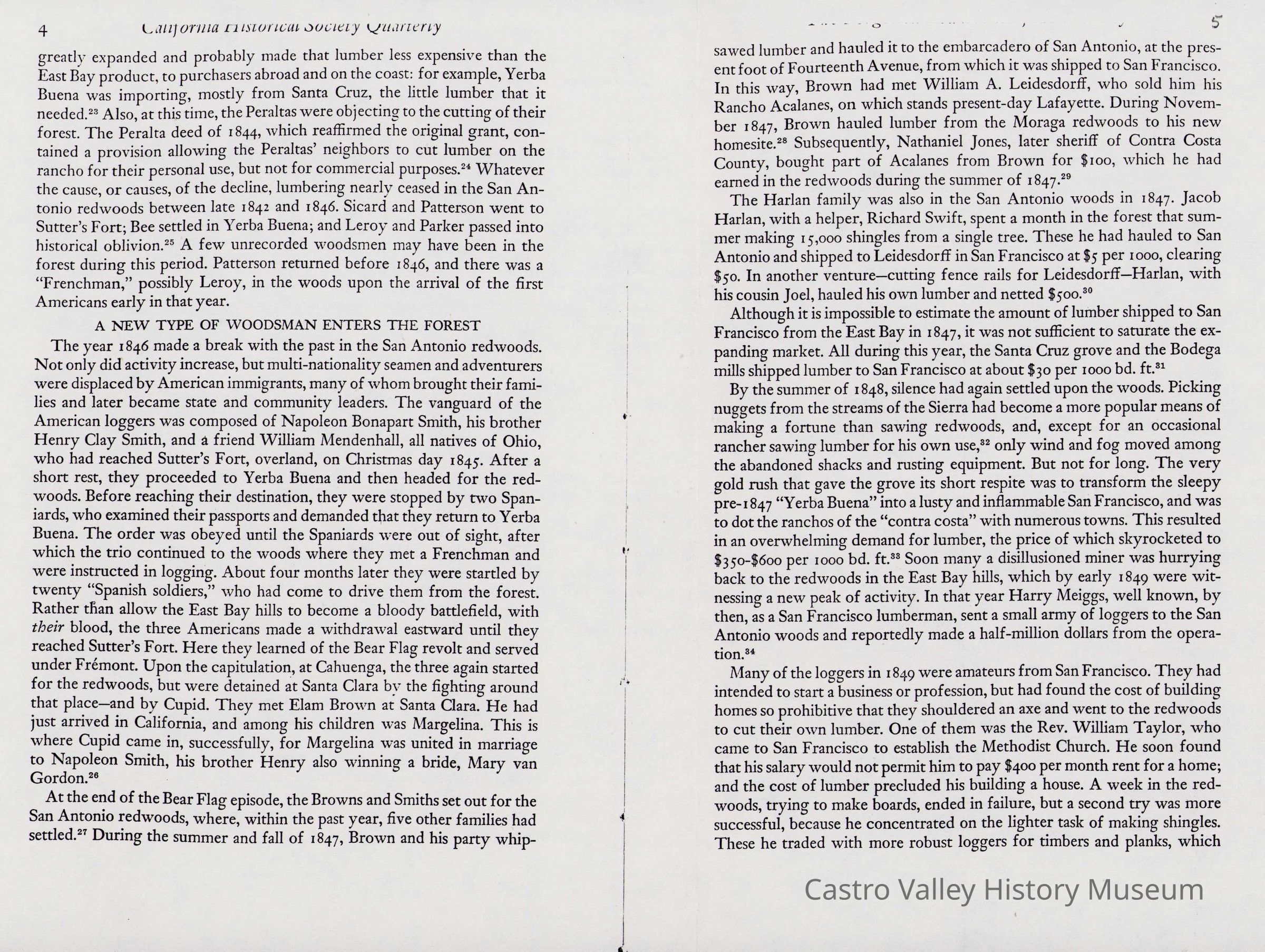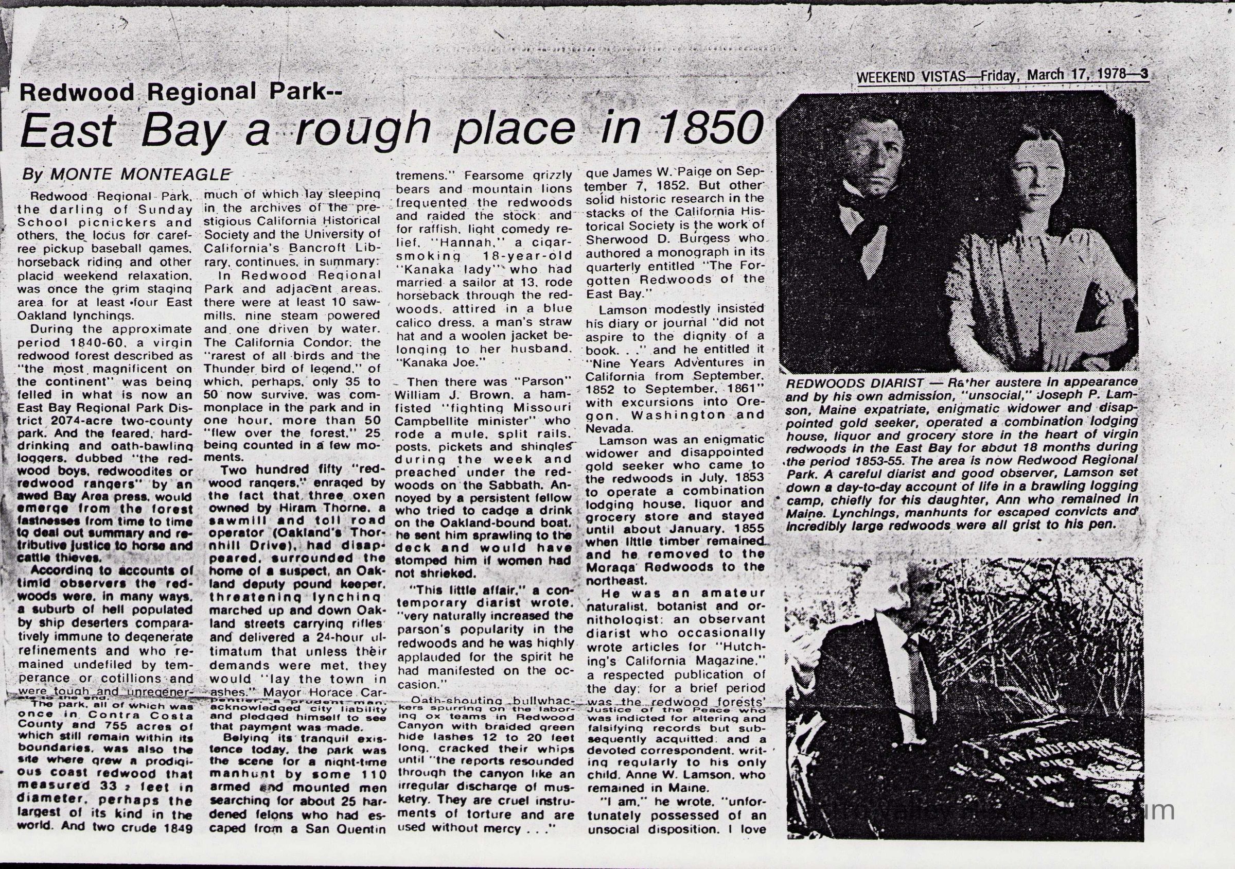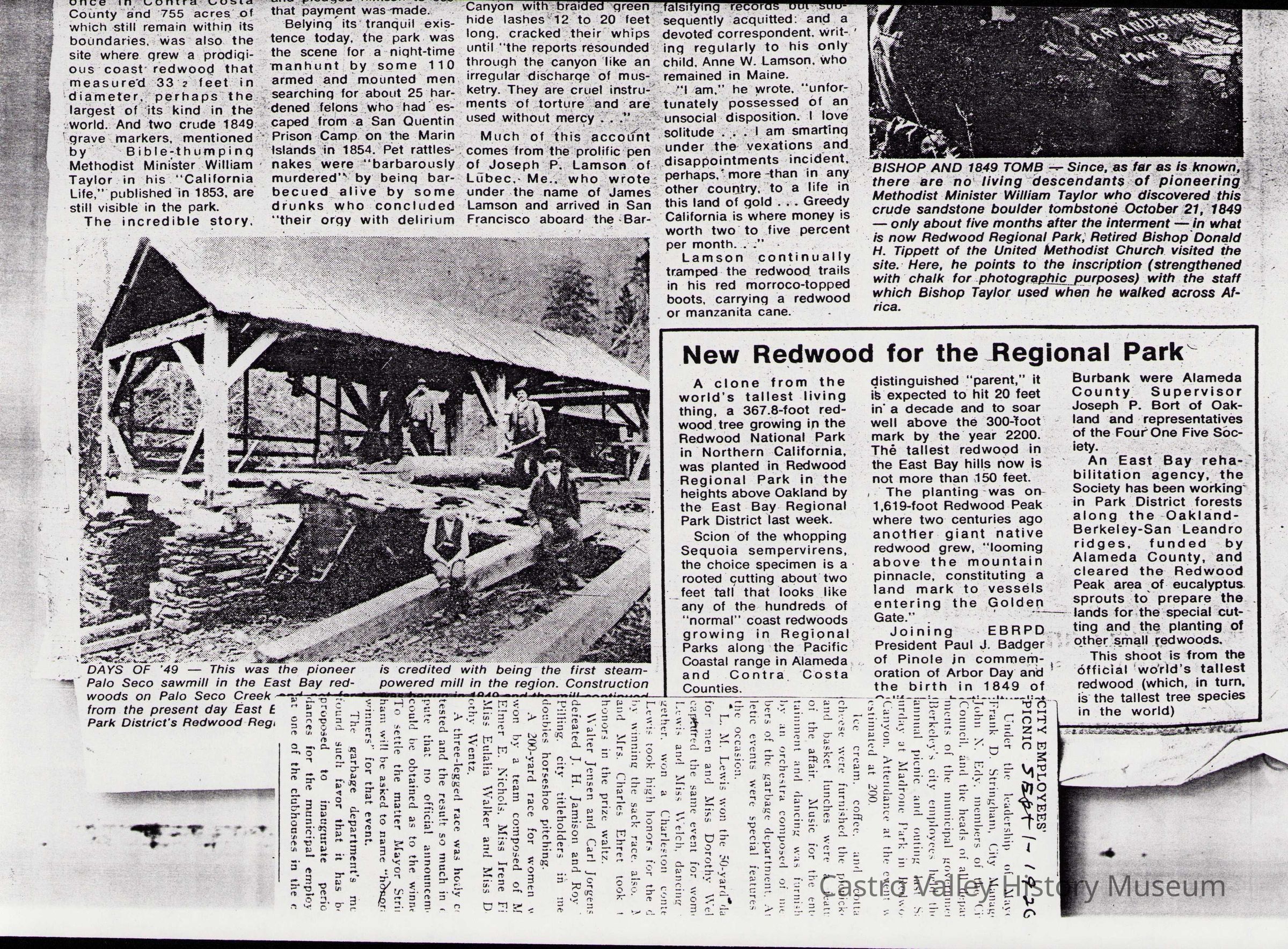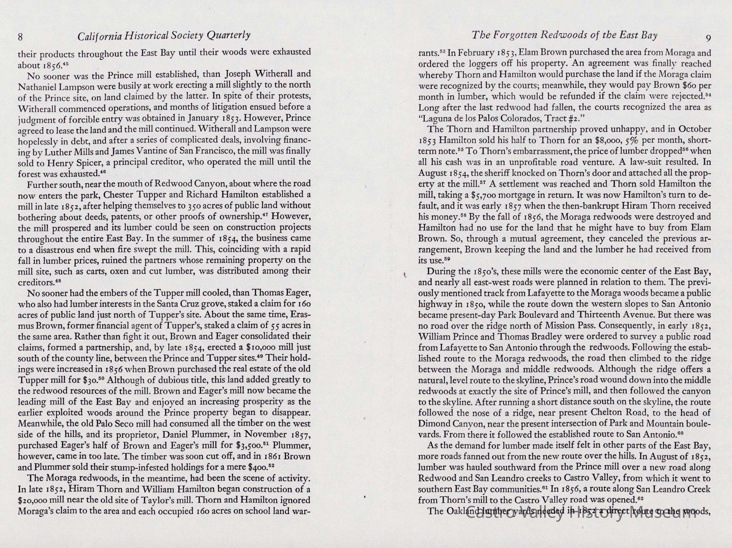 Newspaper articles, other documents and photos on the history of Castro Valley Lumber. Includes an article from the California Historical Society Quarterly from March 1951 and an advertisement from the Castro Valley Business Bulletin. Also includes a Castro Valley Forum article from circa 2005 about owners John Tallman and Bill Peterson.Collection