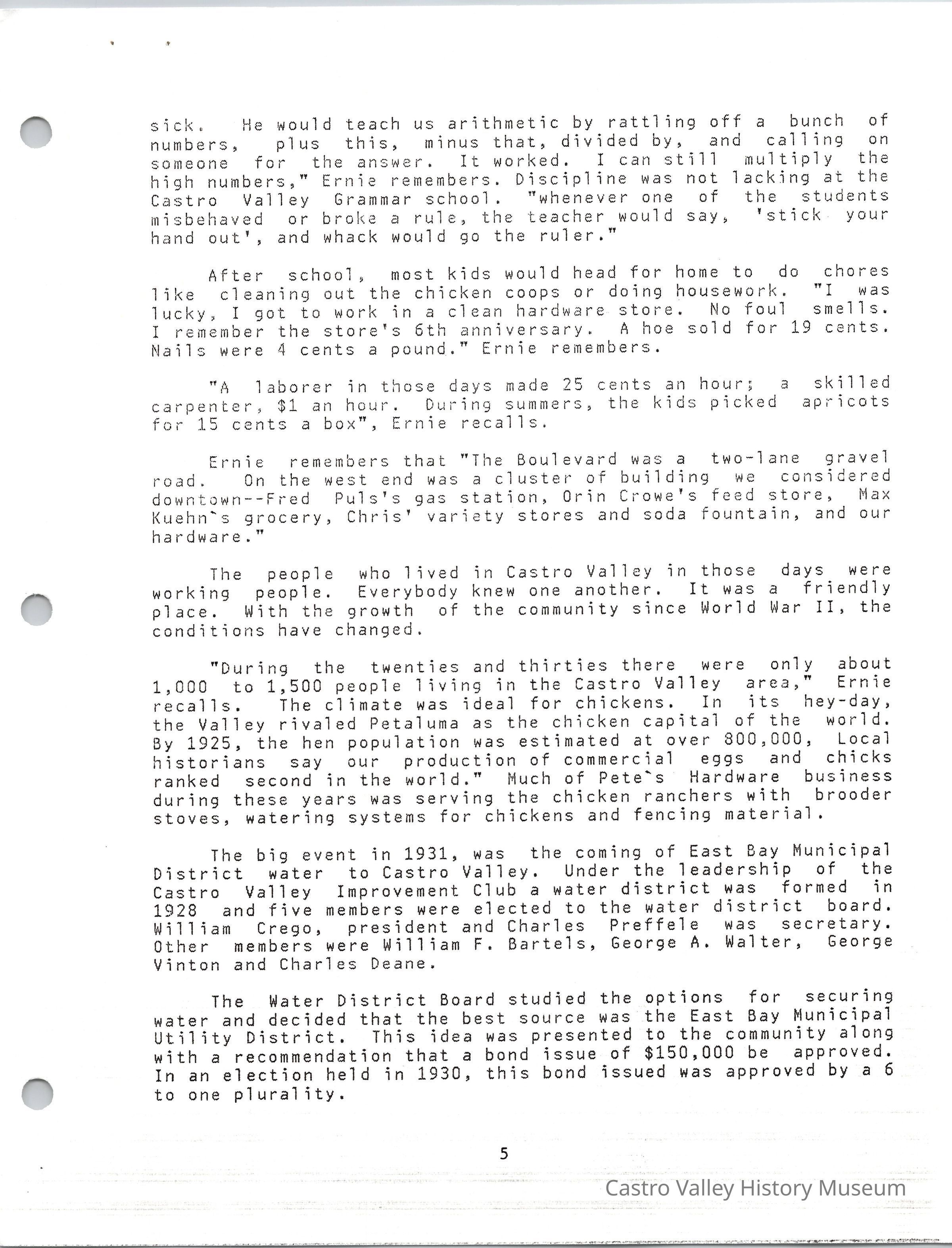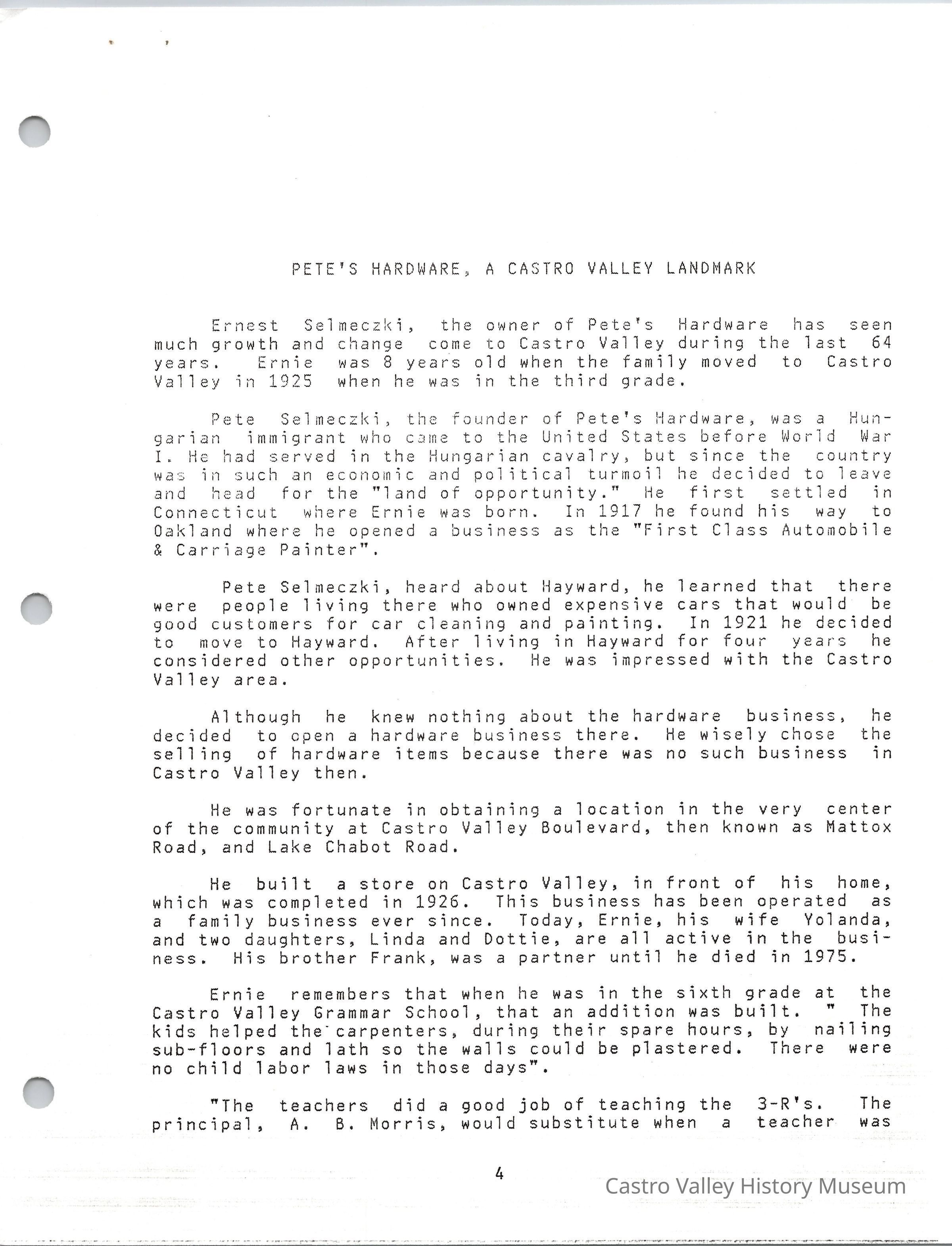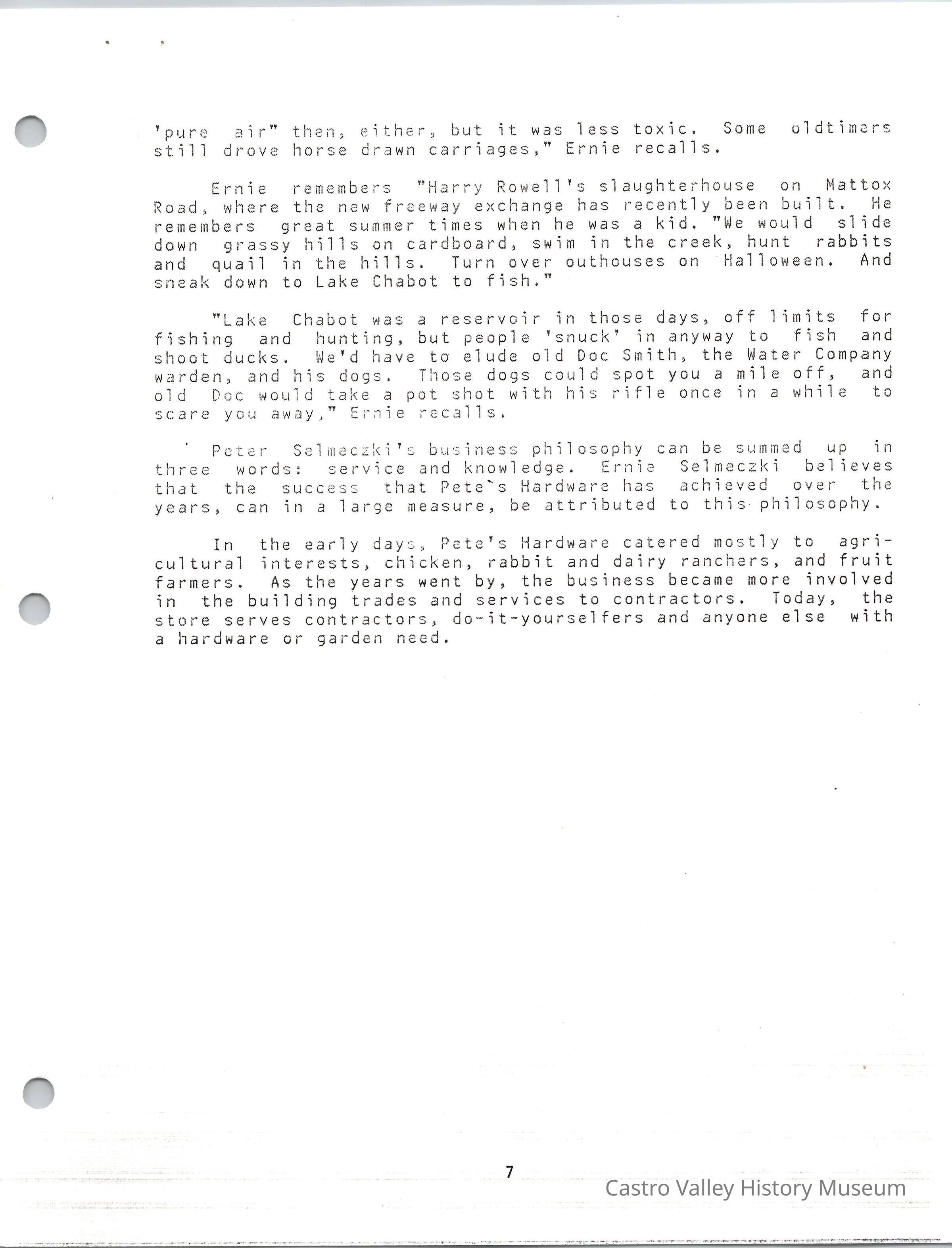 Volume 1 number 6 of Castro Valley Magazine, edited by Marvin E. Smith. Articles on several individuals - Ernest Selmeczki, Tom Bullock, George Alcorn, George Albert, and on post-war Castro Valley by John Sandoval.Collection