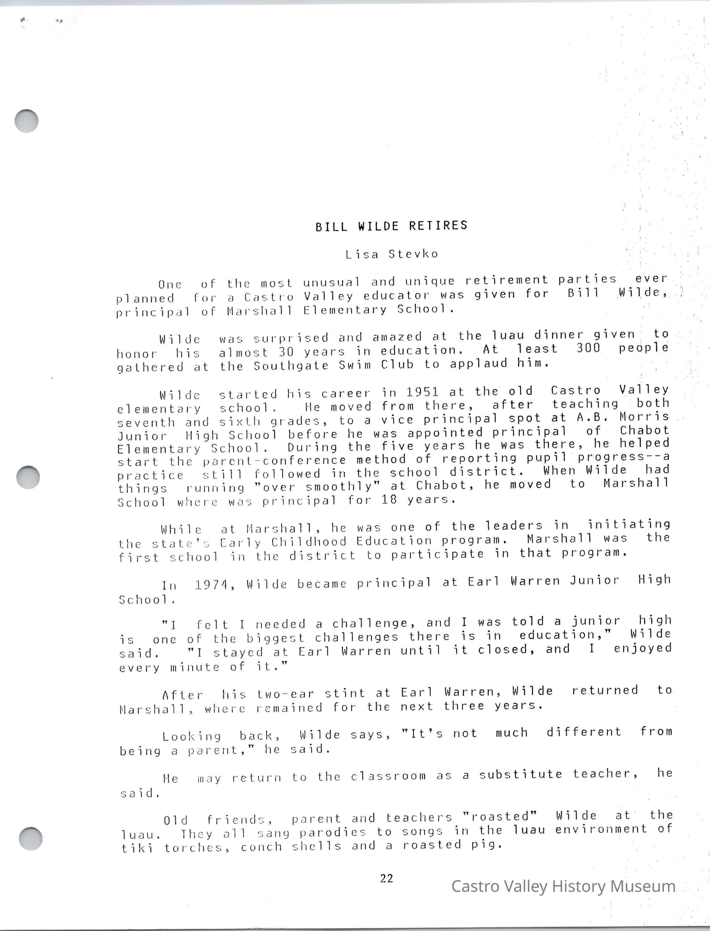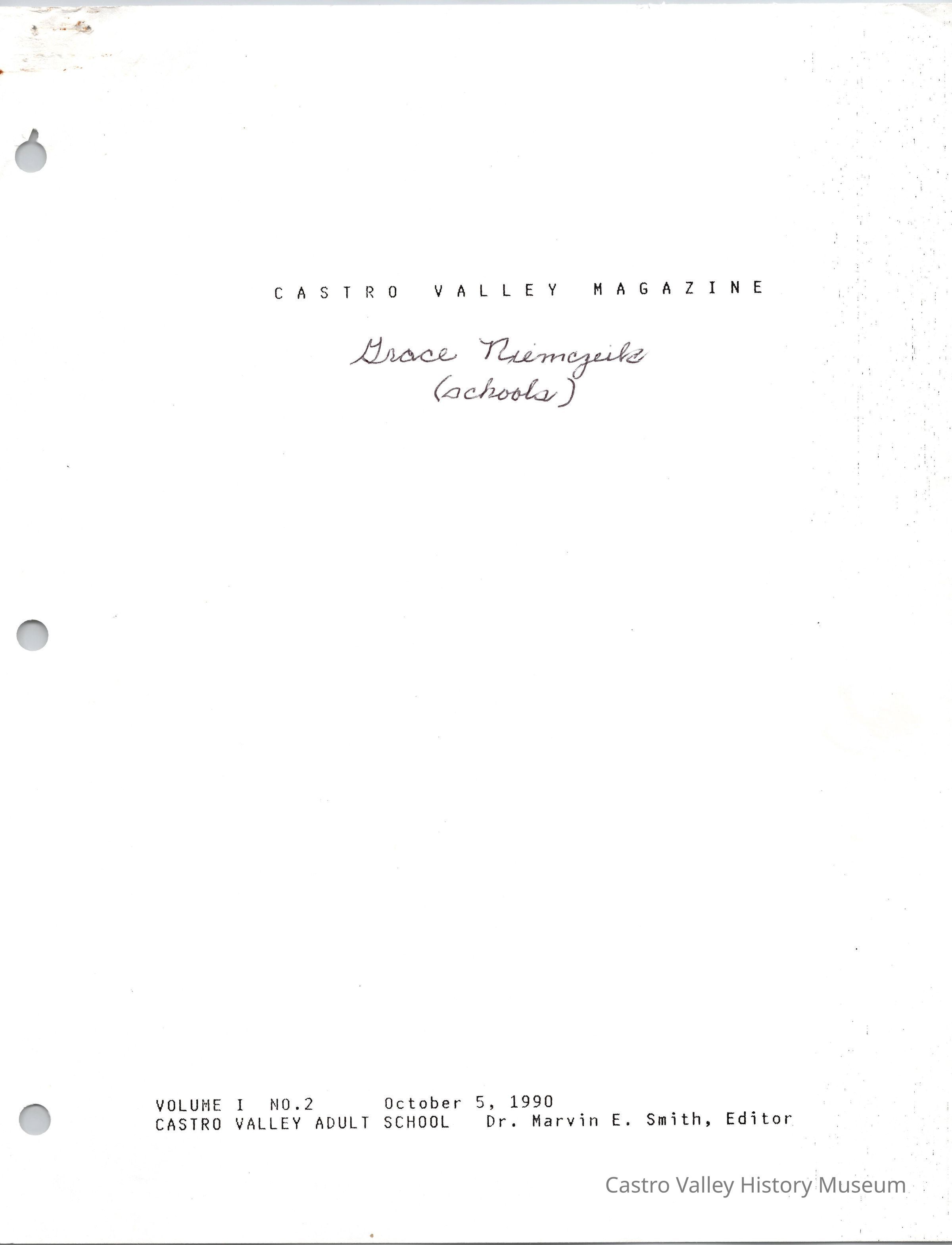 Volume 1 number 2 of Castro Valley Magazine, edited by Dr. Marvin E. Smith. Articles on schools, Castro Valley and Hayward history by Grace Niemcziek, Oakland Tribune Hayward Bureau, Raul Hernandez, Connie Smith, Rich Waters, Becky Garcia, Karen Standish, Linda Mello, Doris Csech, Mary Brown, Cheryl Laster, Pat Solis, Jorge Lopez, Steve Pelosi, Don Jordan, Eddie Williamson, Vicki Blake, Gay Hancock, Gene Pestana, Lisa Stevko, Robin Welch.Collection