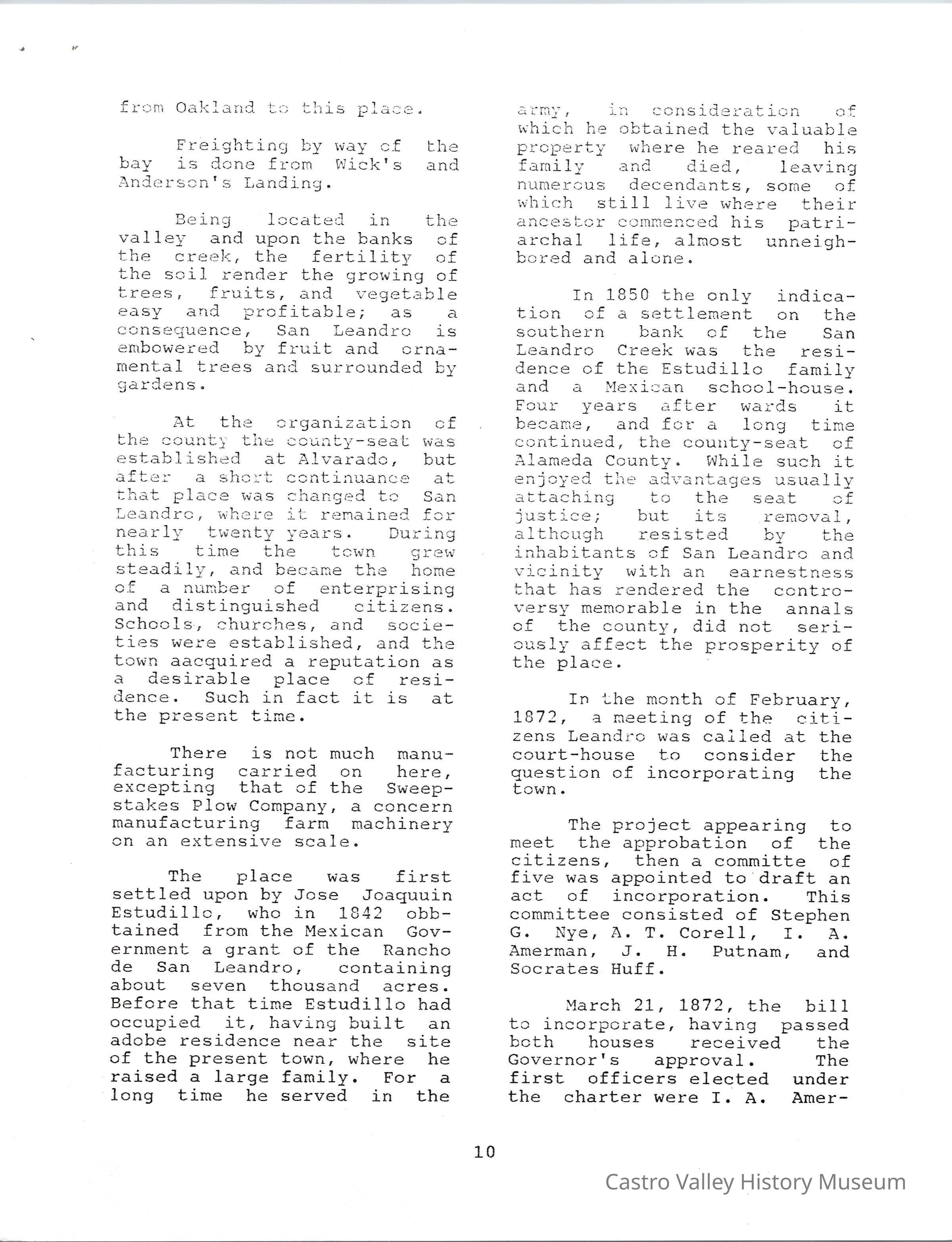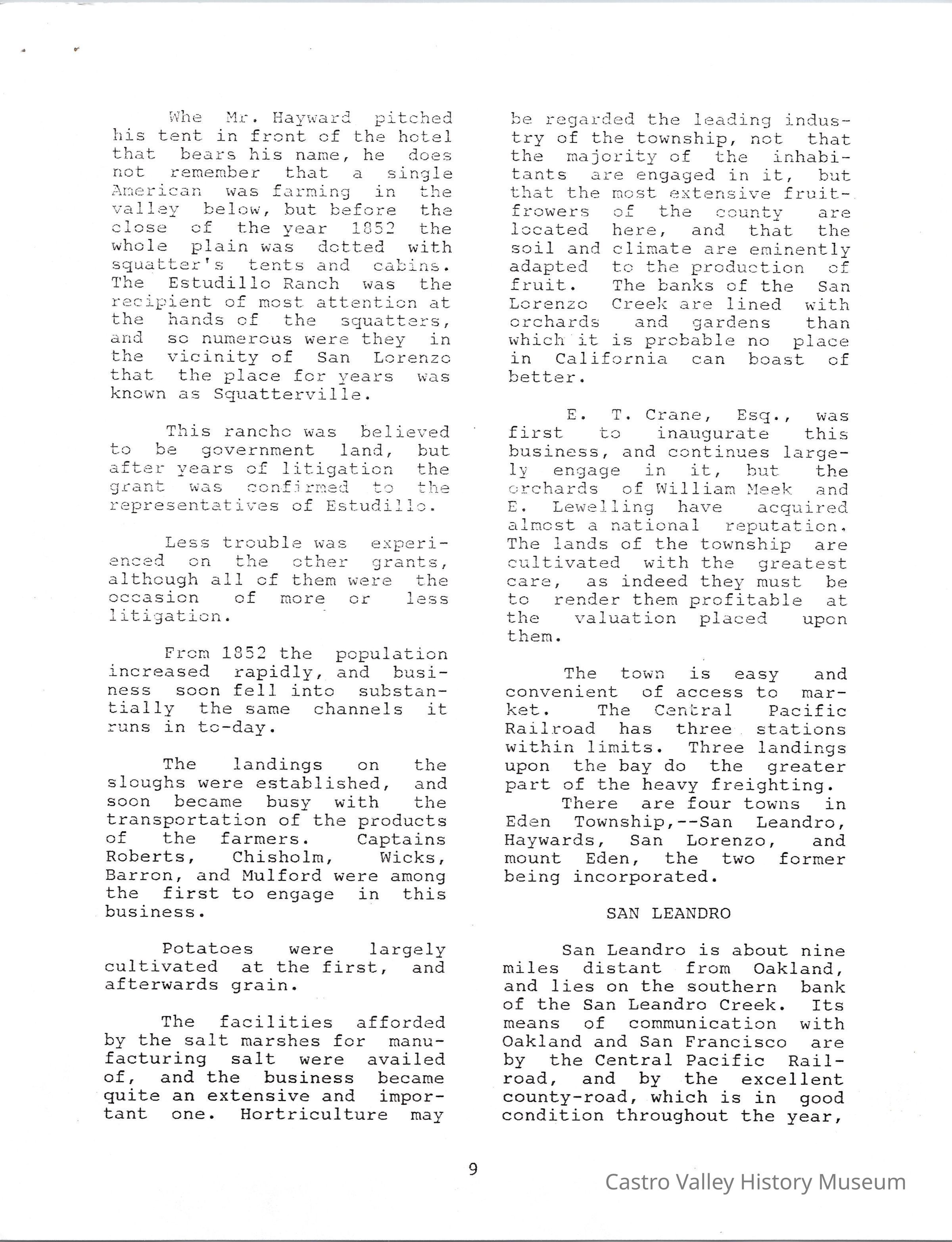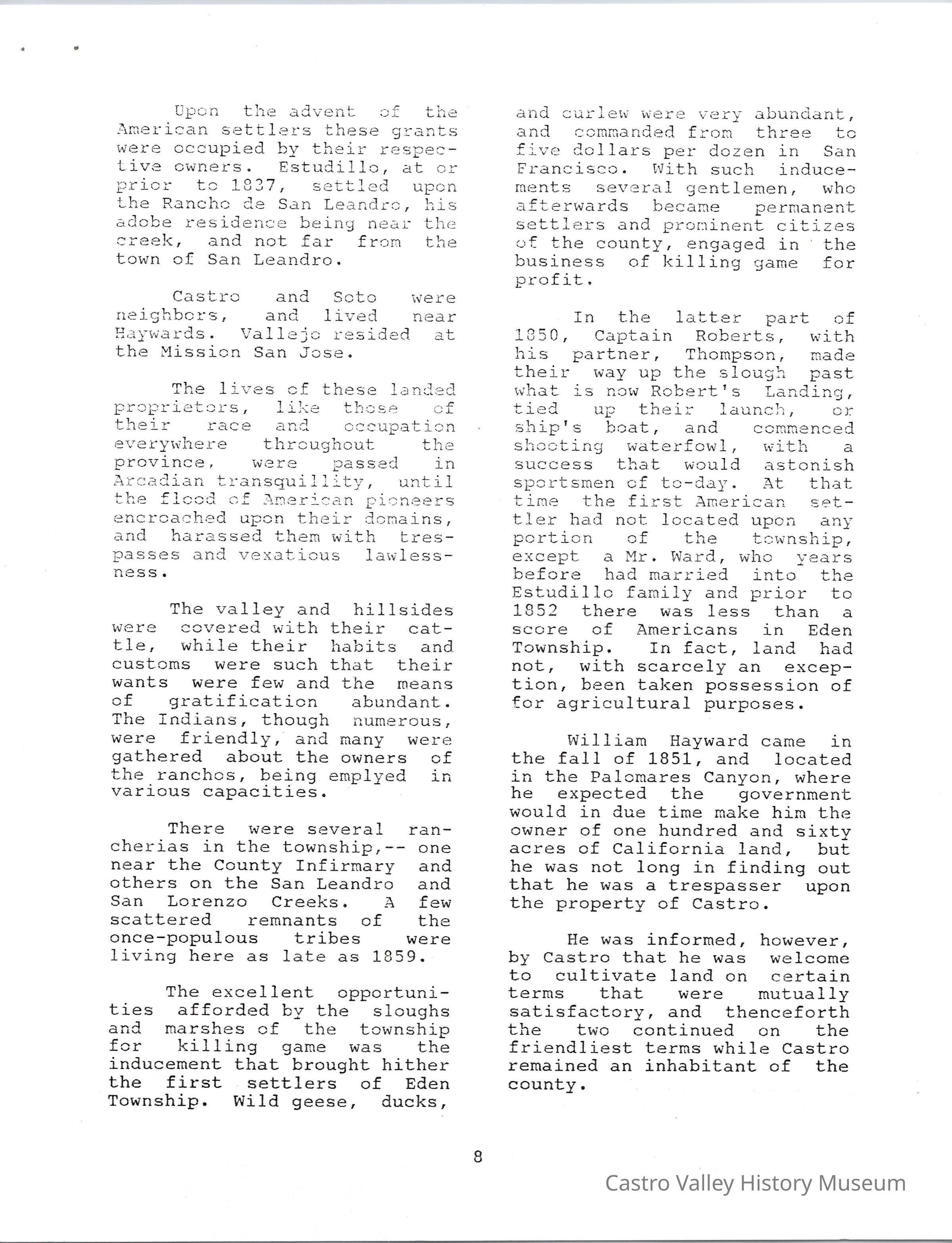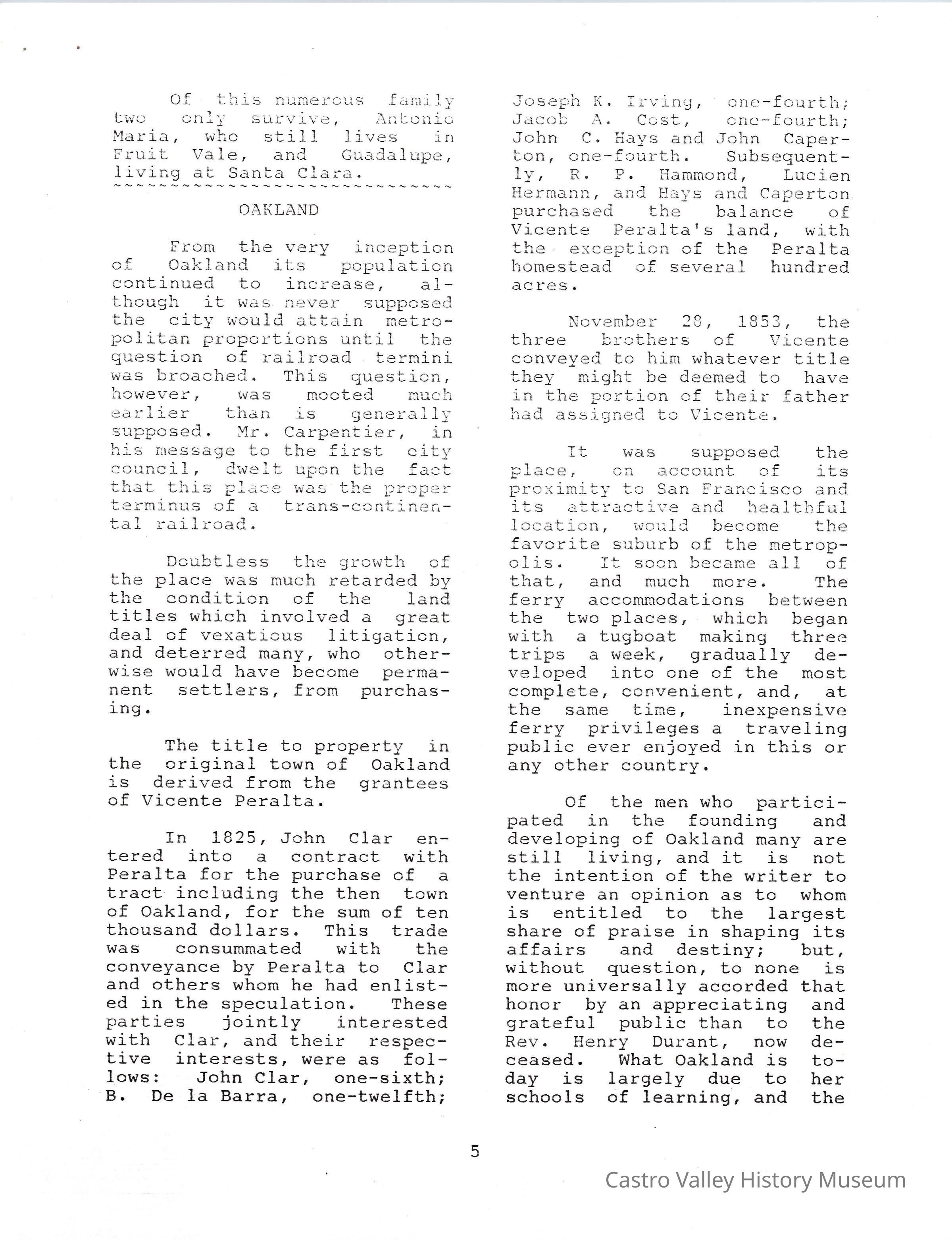 Volume 2 No. 15 of Castro Valley Magazine edited by Dr. Marvin E. Smith. Excerpts from Thompson & West Atlas of Alameda County, 1878. Subjects include Luis Maria Peralta Land Grant, The Beginning of Oakland, Eden Township, The Estudillo Land Grant, San Leandro, and Haywards.Collection