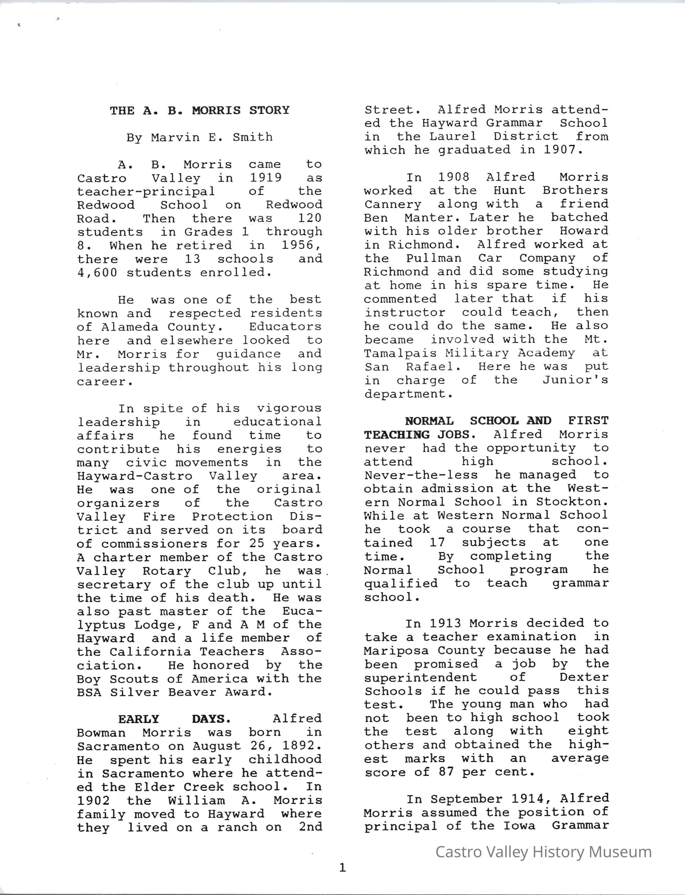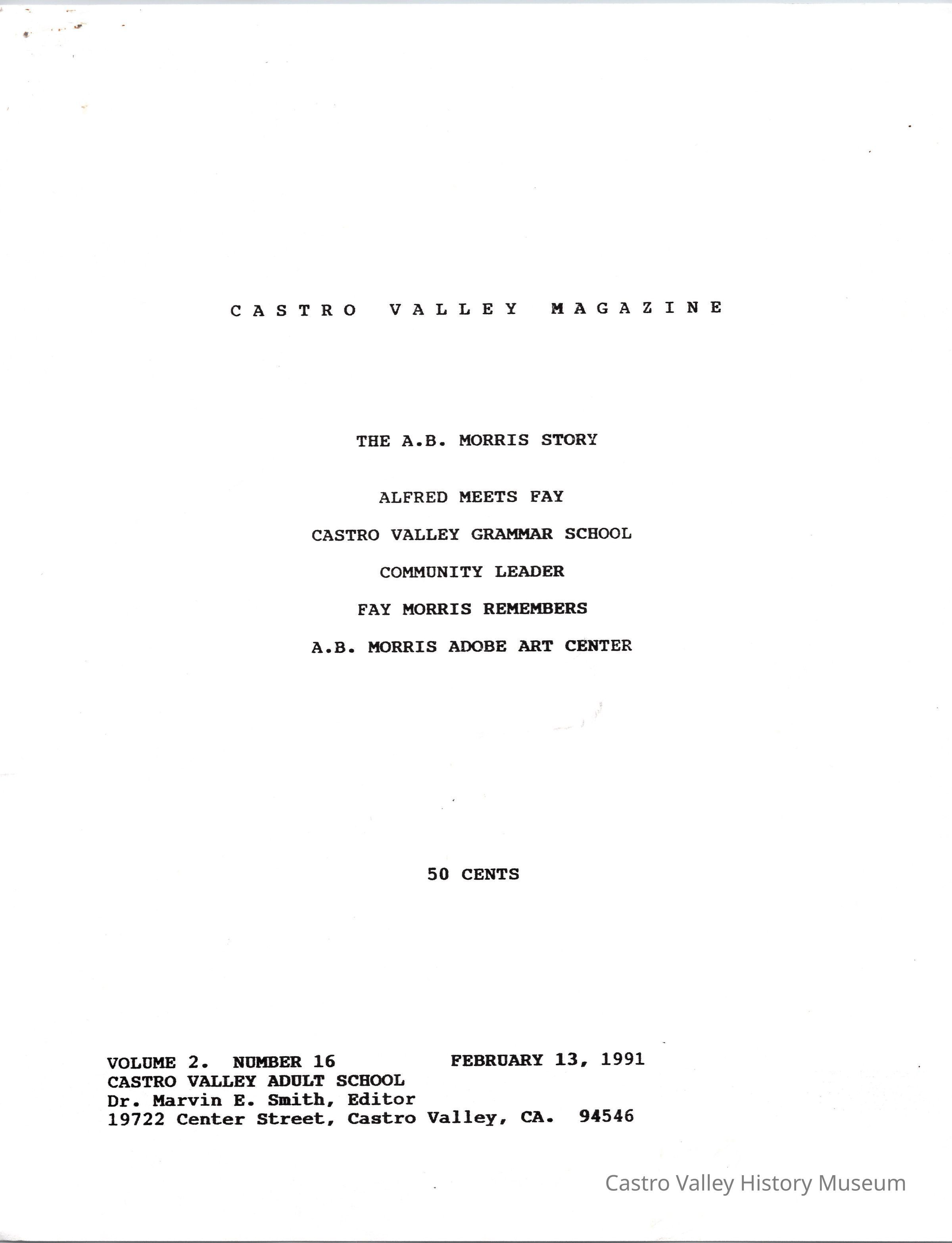 Volume 2 No. 16 of Castro Valley Magazine, edited by Dr. Marvin E. Smith. Includes the A. B. Morris Story by Marvin E. Smith.Collection