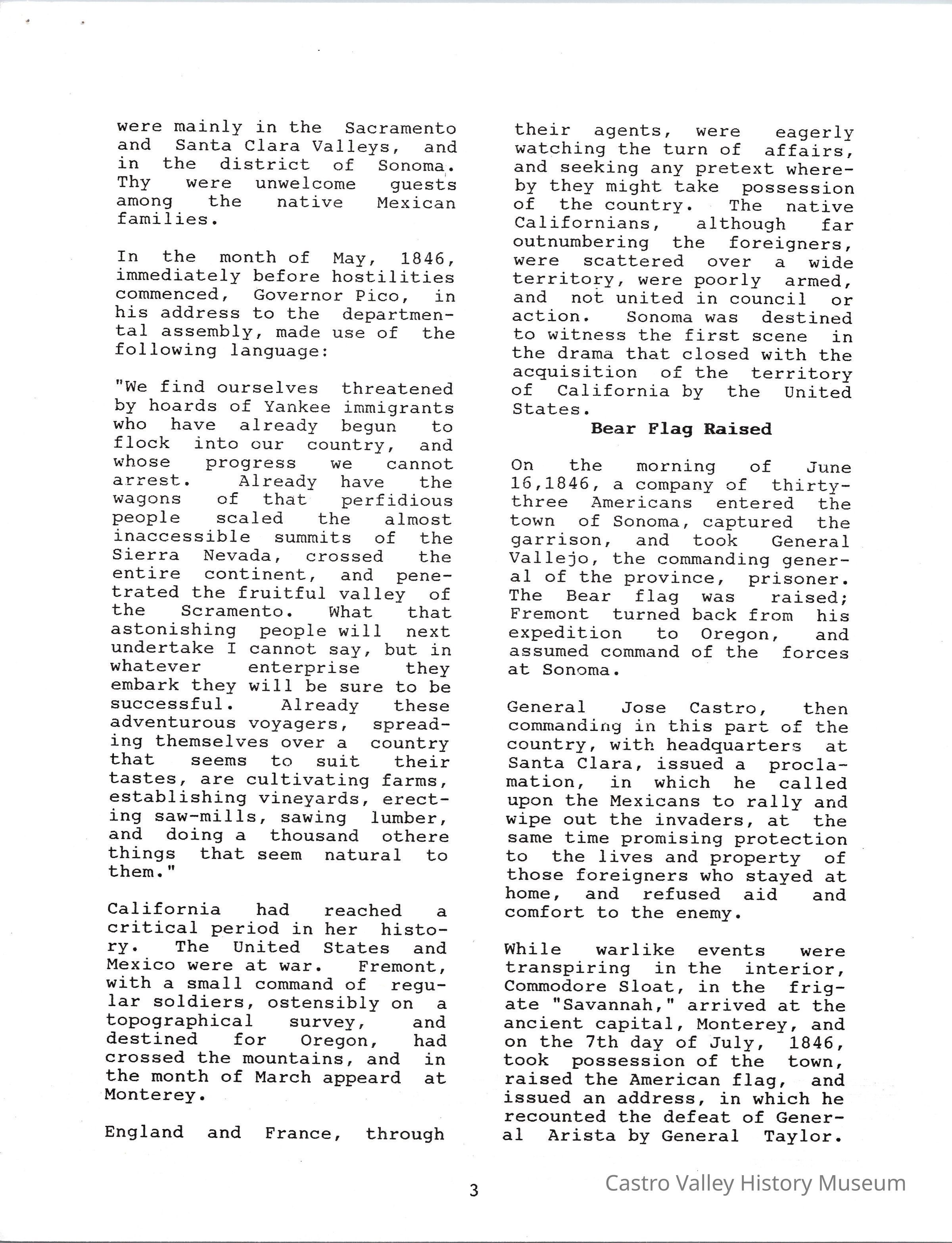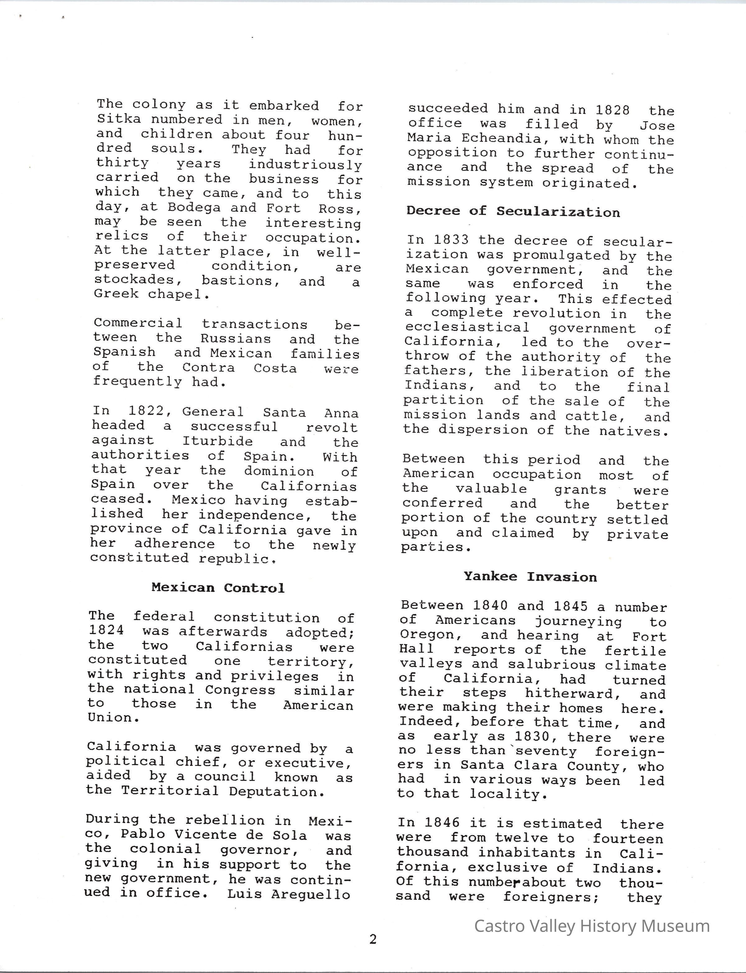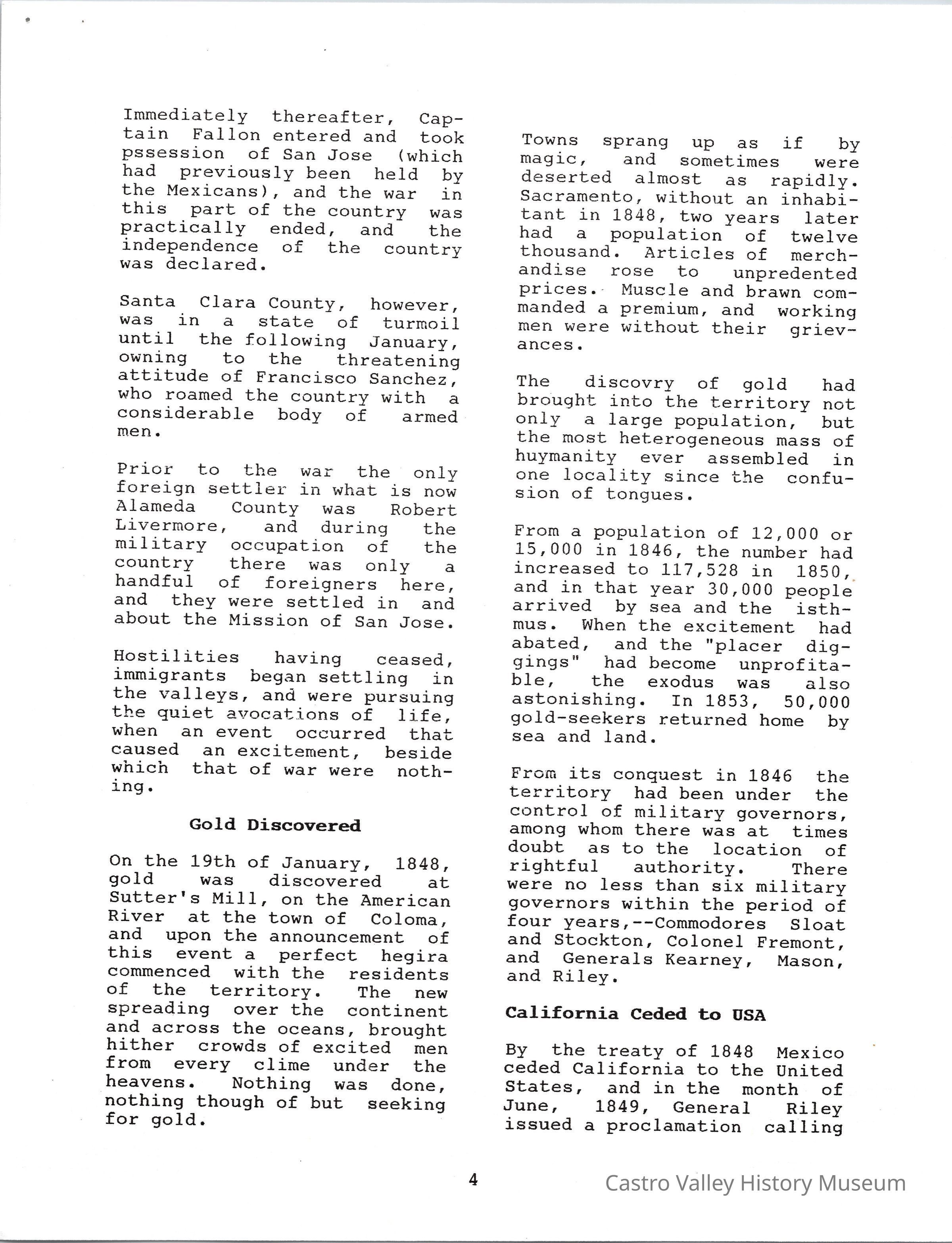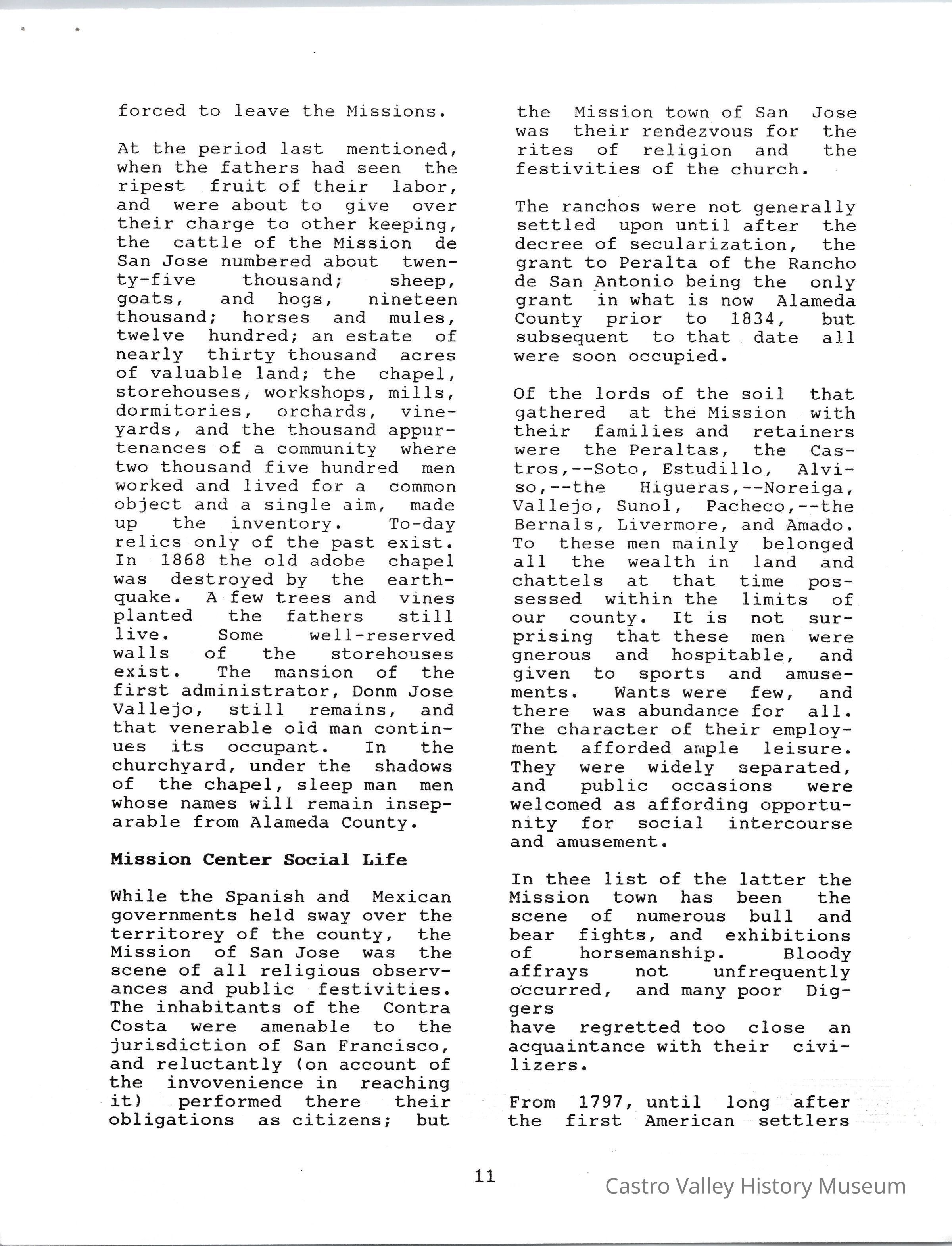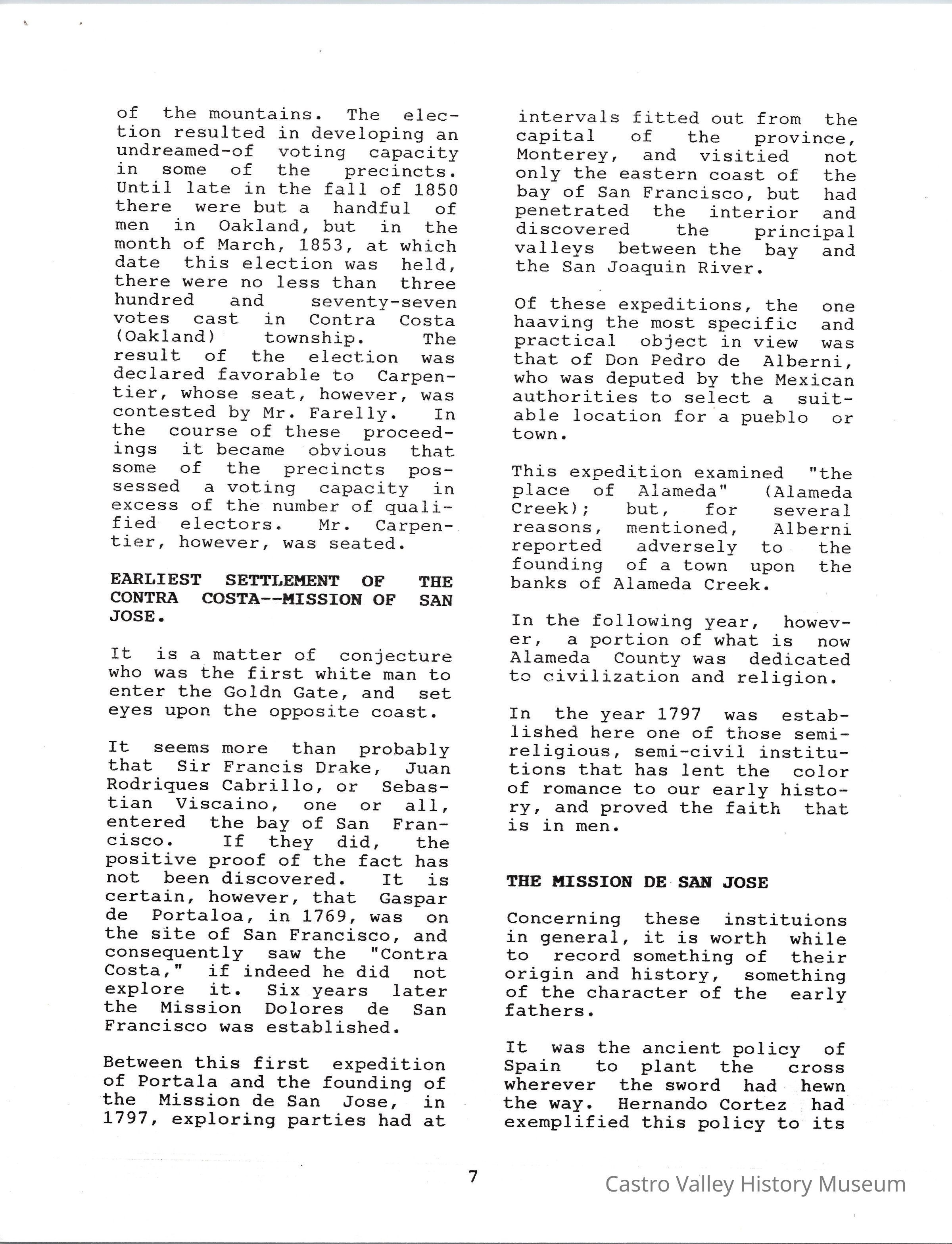 Volume 2 No. 17 of Castro Valley Magazine edited by Dr. Marvin E, Smith. Includes excerpts from Historical Atlas of Alameda County California, Thompson & West 1878. Segments include history of Alameda County, Exploration of California, Spanish and Mexican Rule, Yankee Invasion, Gold Discovery, Story of Mount Diablo, Mission San Jose, and Aborigines.Collection
