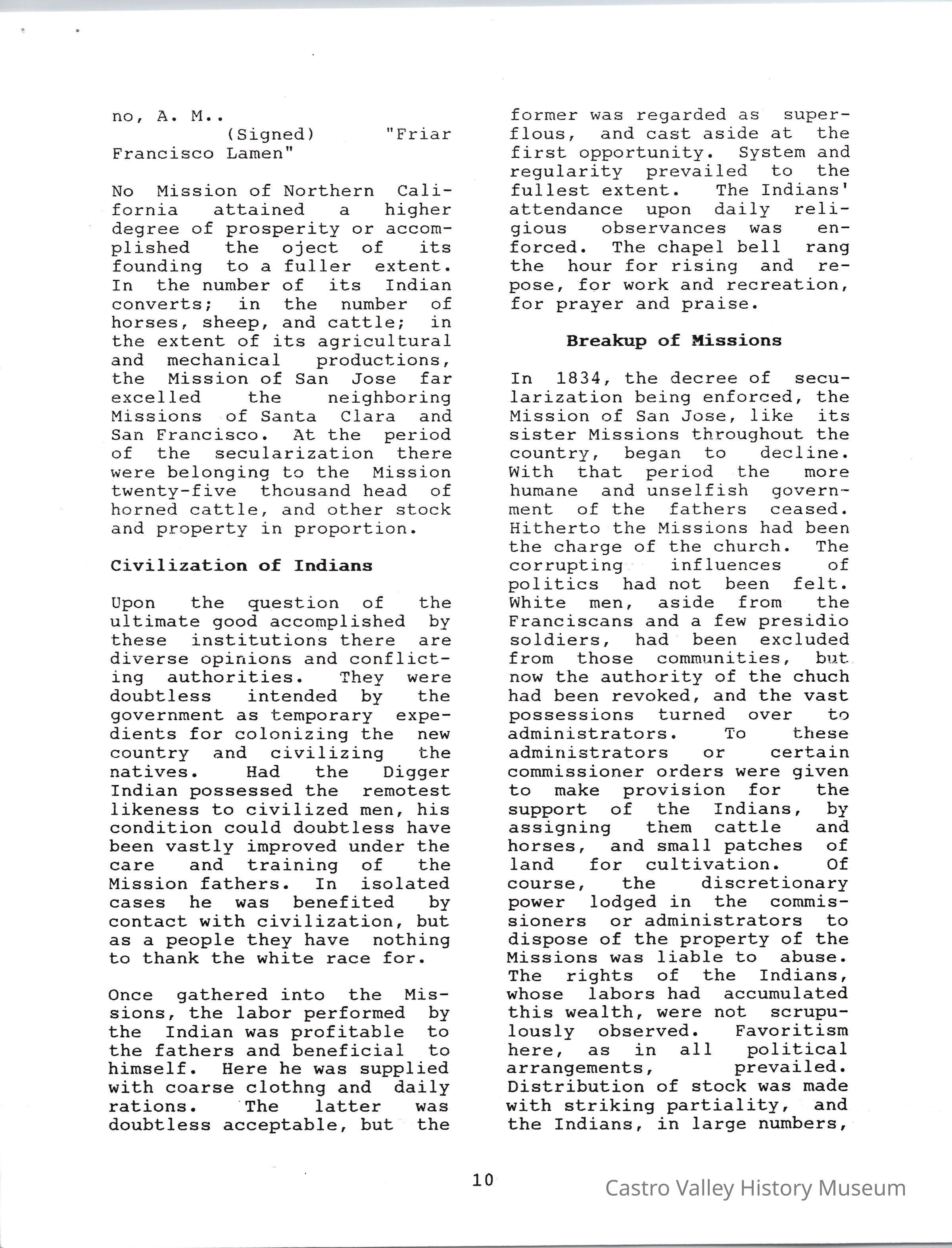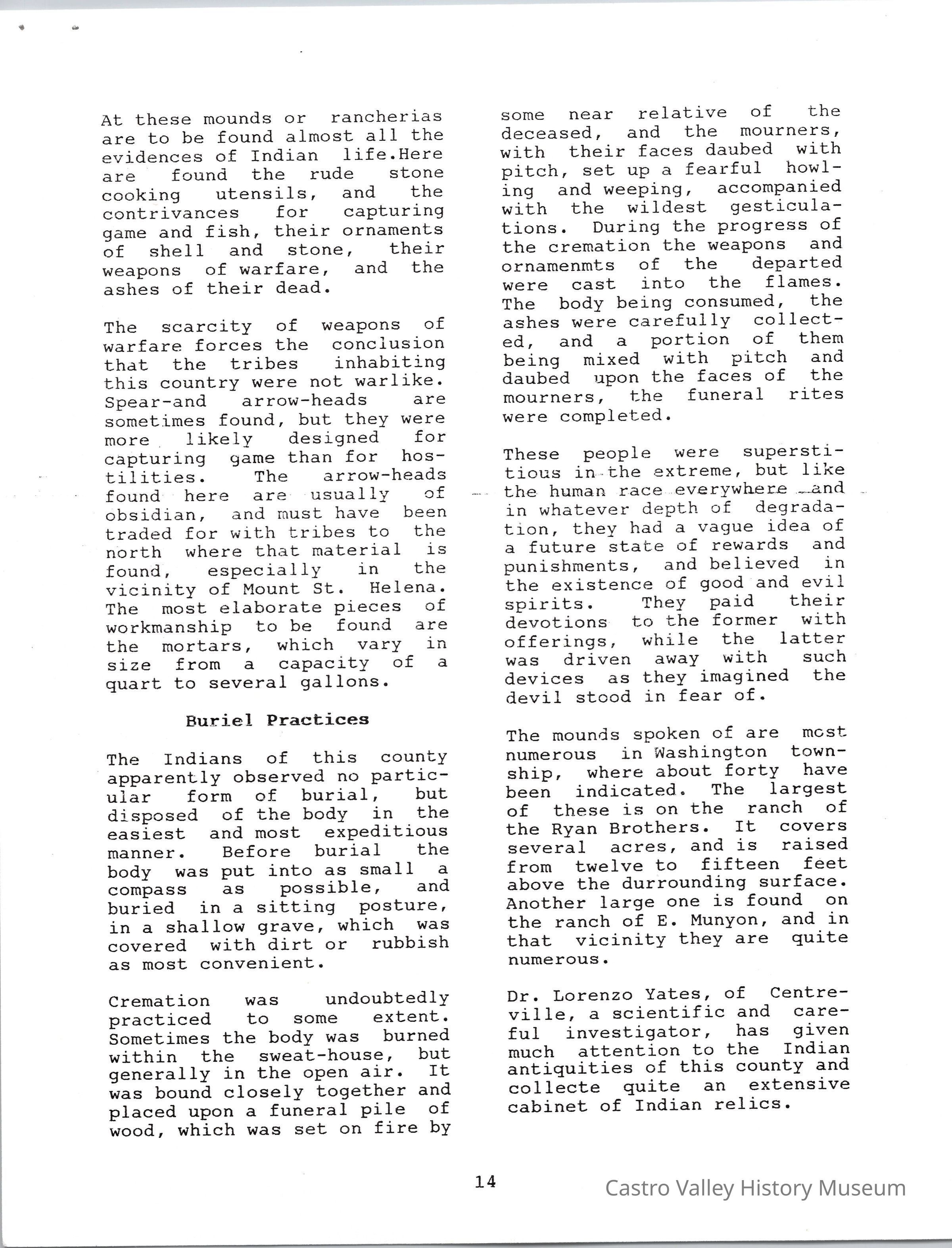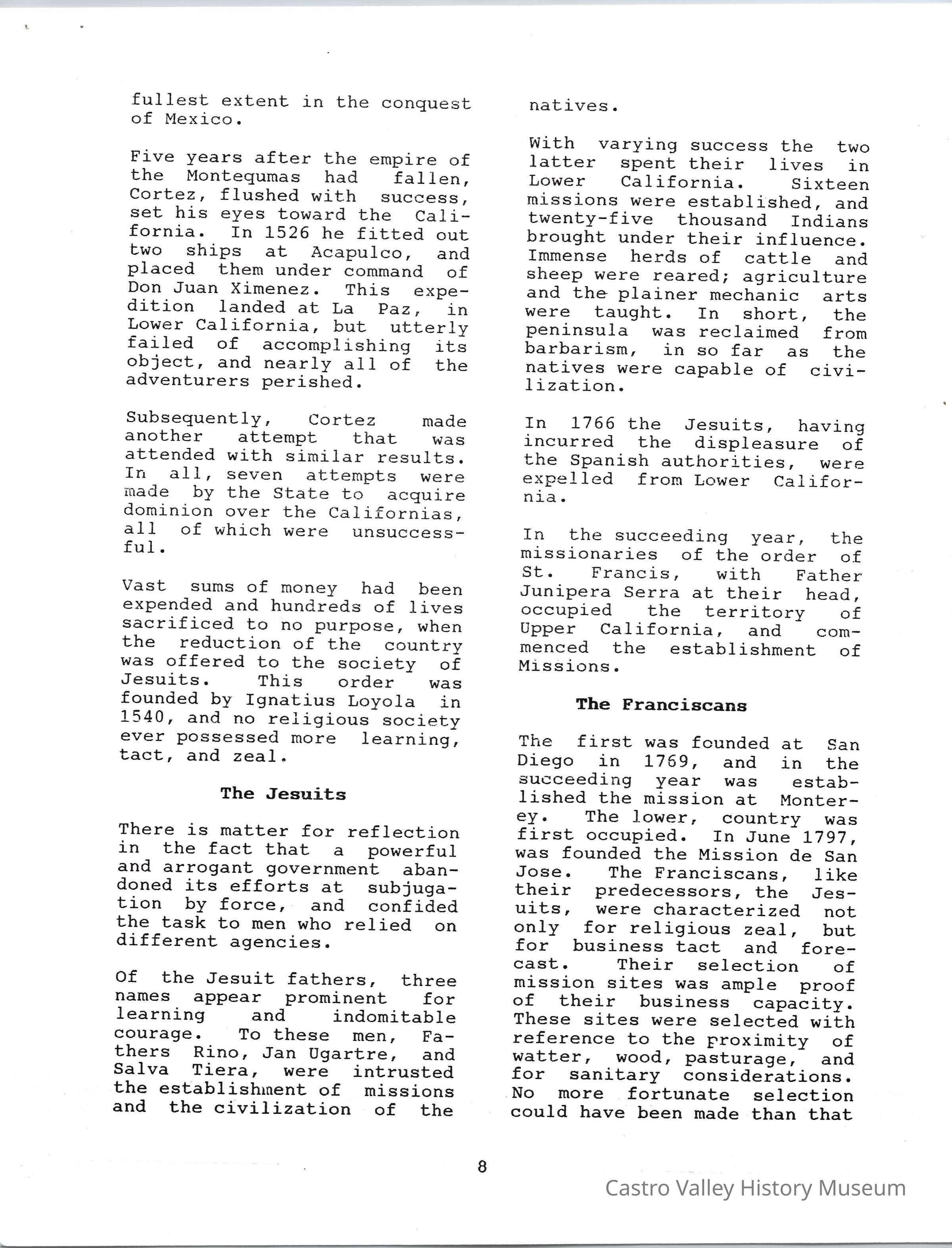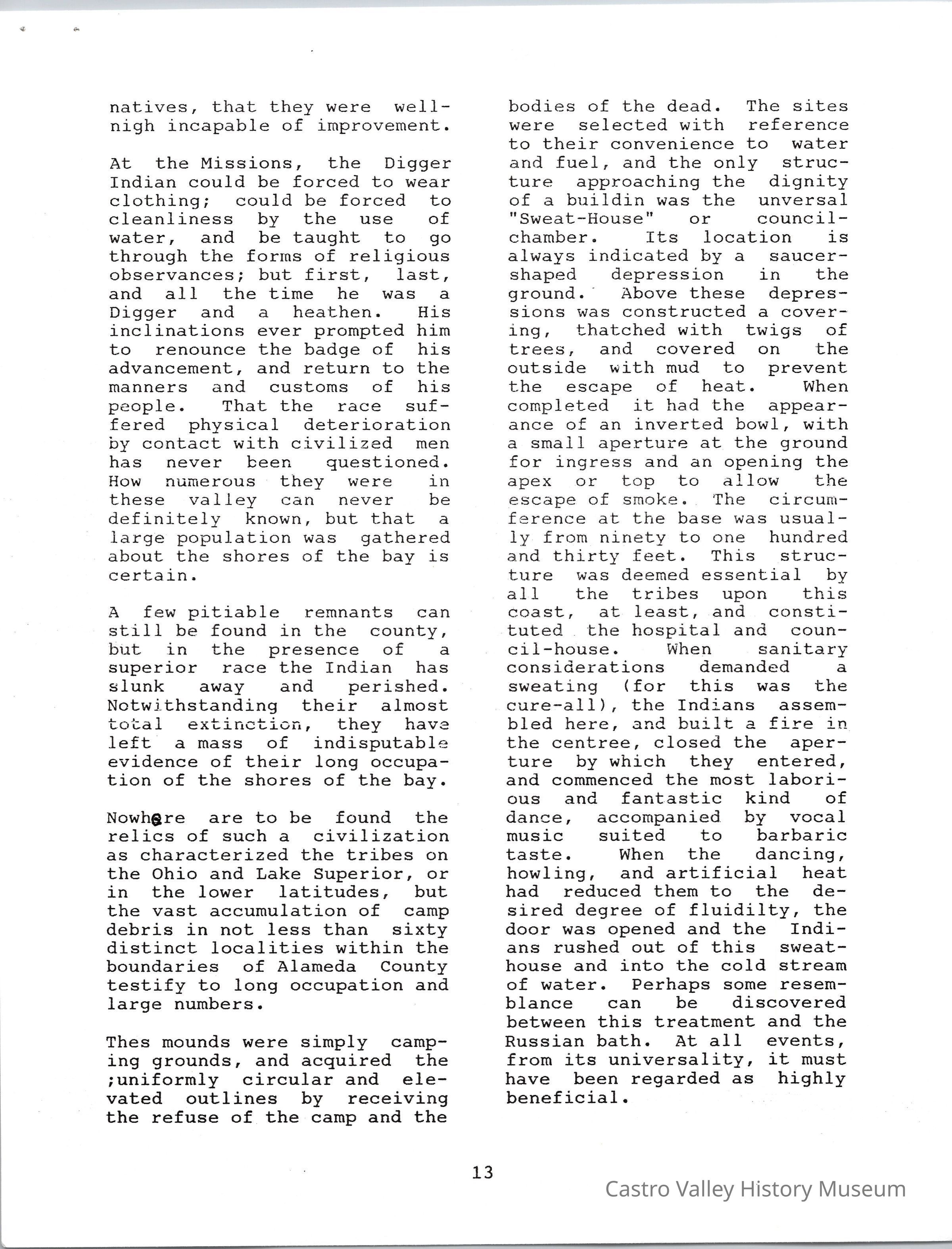 Volume 2 No. 17 of Castro Valley Magazine edited by Dr. Marvin E, Smith. Includes excerpts from Historical Atlas of Alameda County California, Thompson & West 1878. Segments include history of Alameda County, Exploration of California, Spanish and Mexican Rule, Yankee Invasion, Gold Discovery, Story of Mount Diablo, Mission San Jose, and Aborigines.Collection
