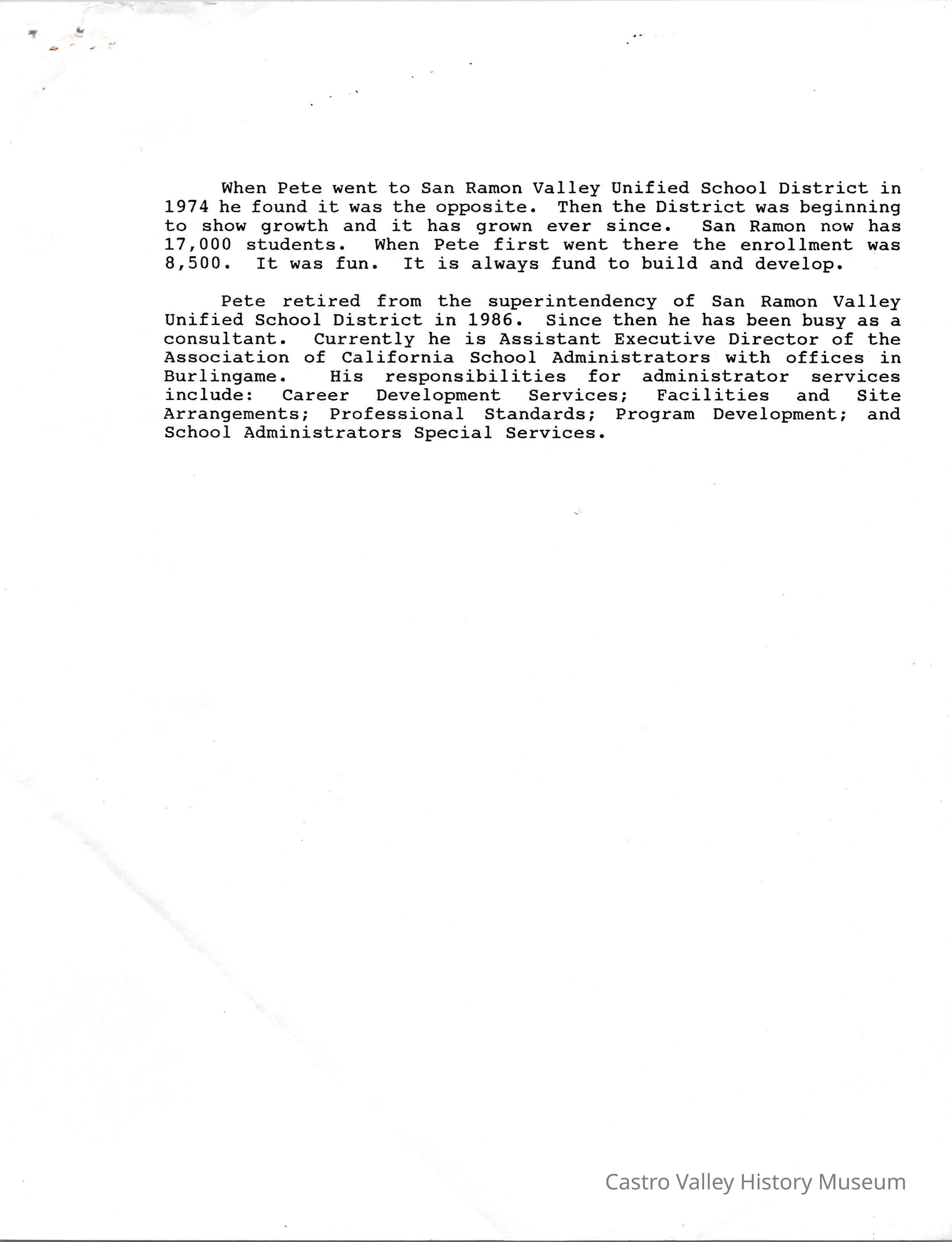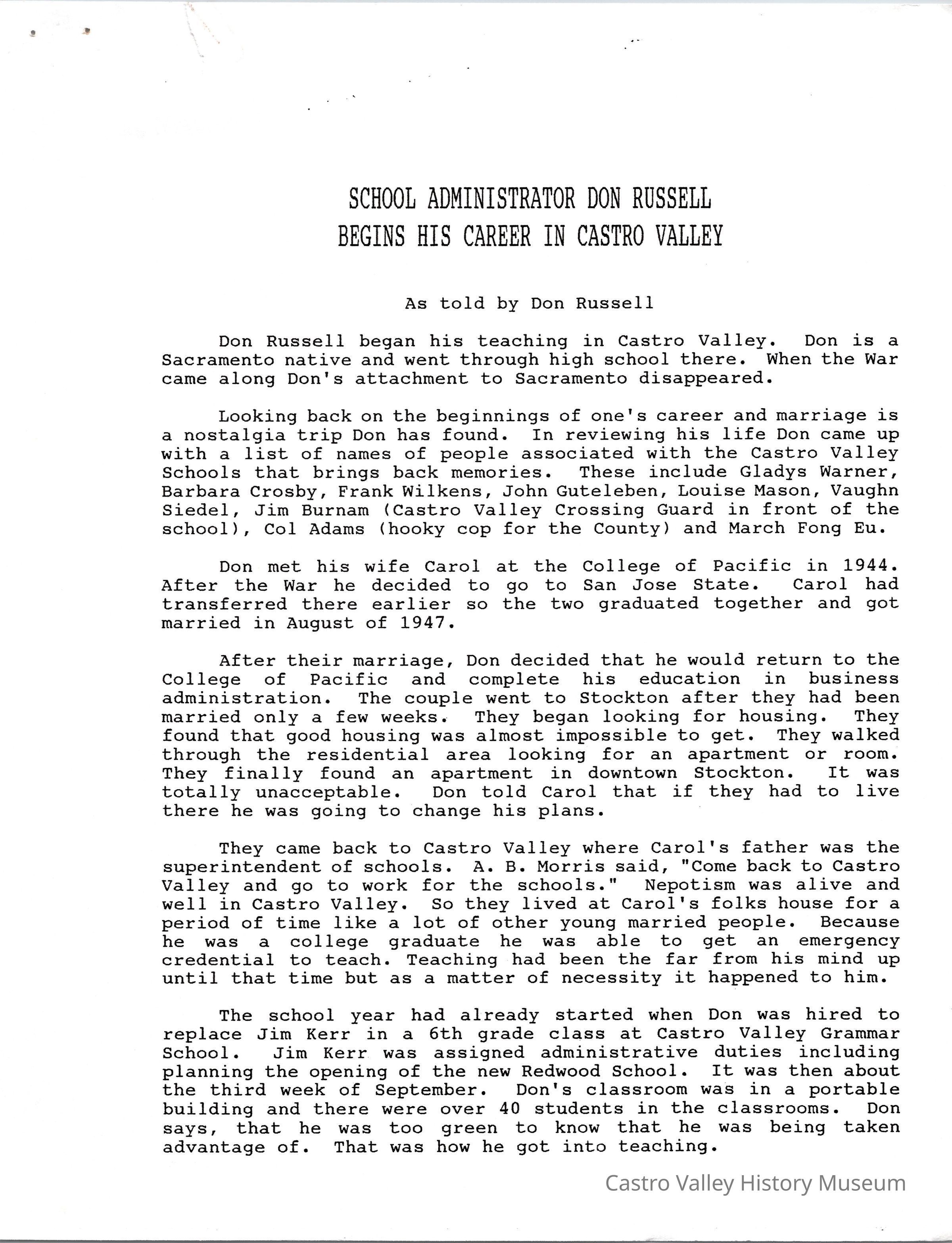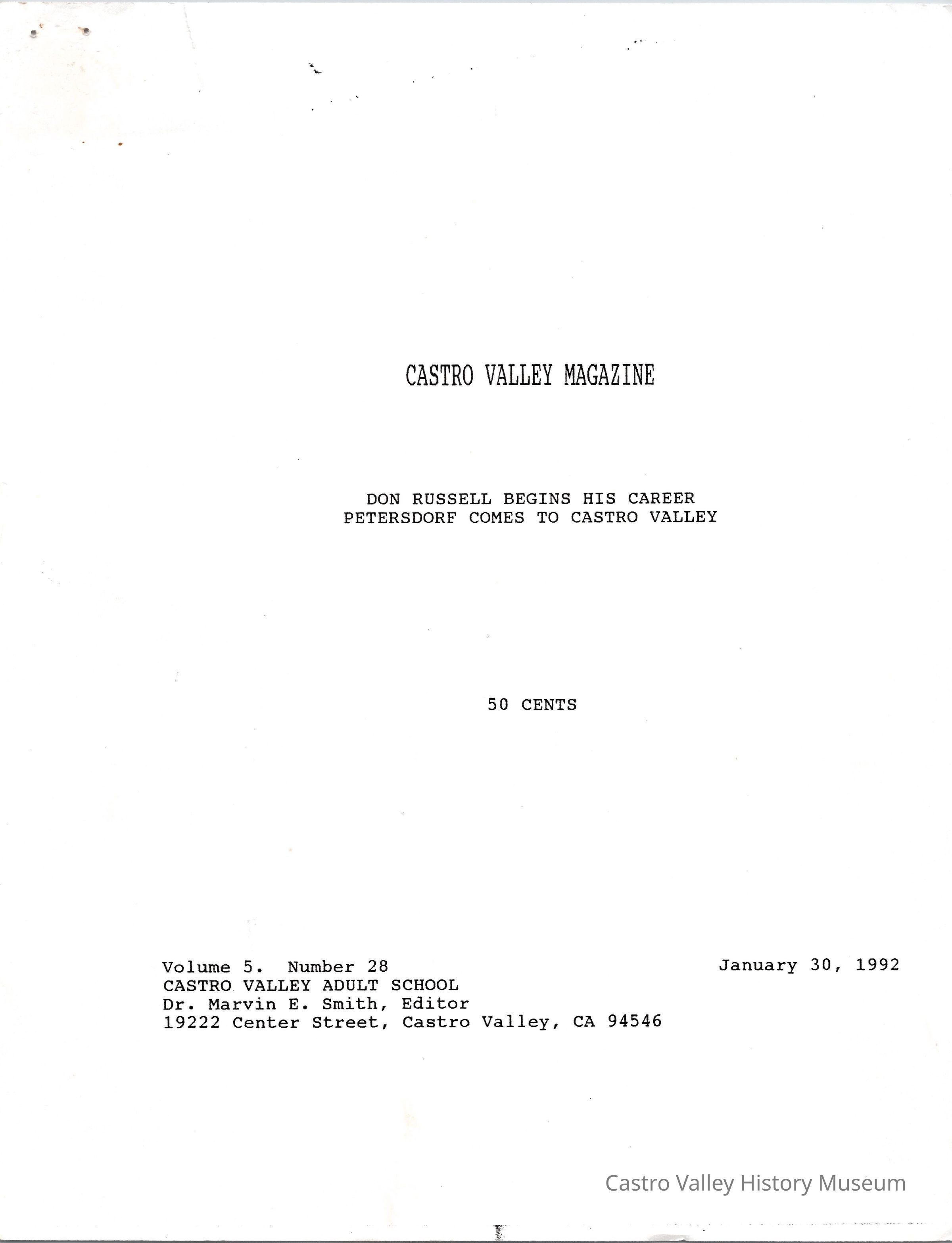 Volume 5 number 28 of Castro Valley Magazine edited by Dr. Marvin E. Smith. Don Russell and Allan Petersdorf talk about their teaching careers in Castro Valley.Collection